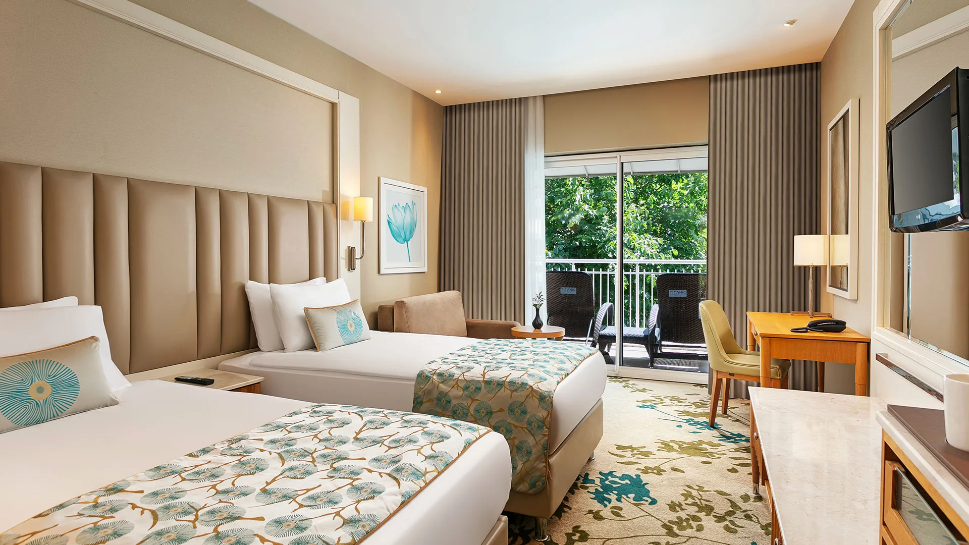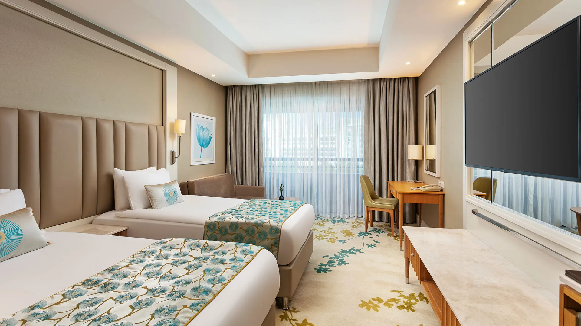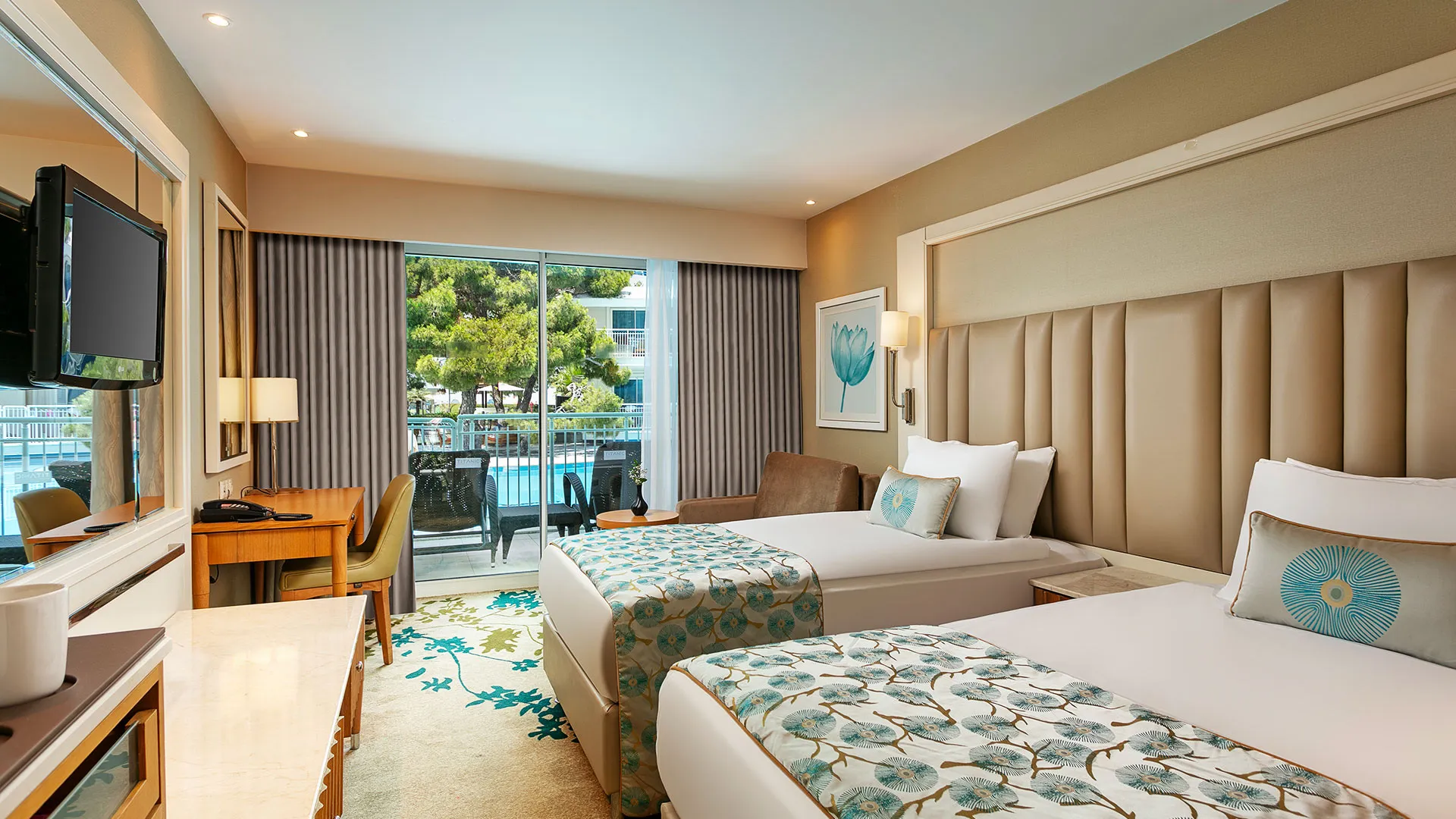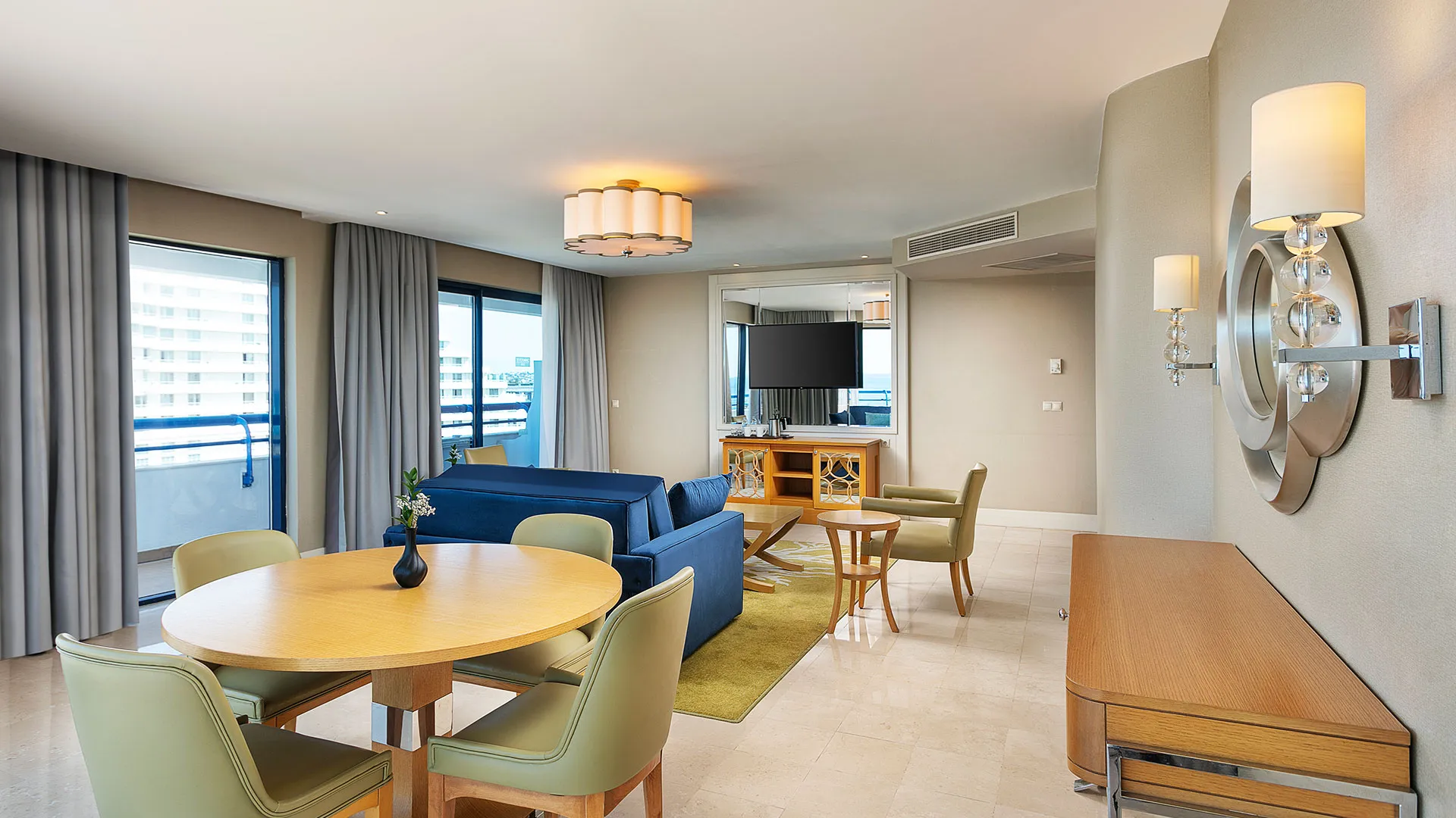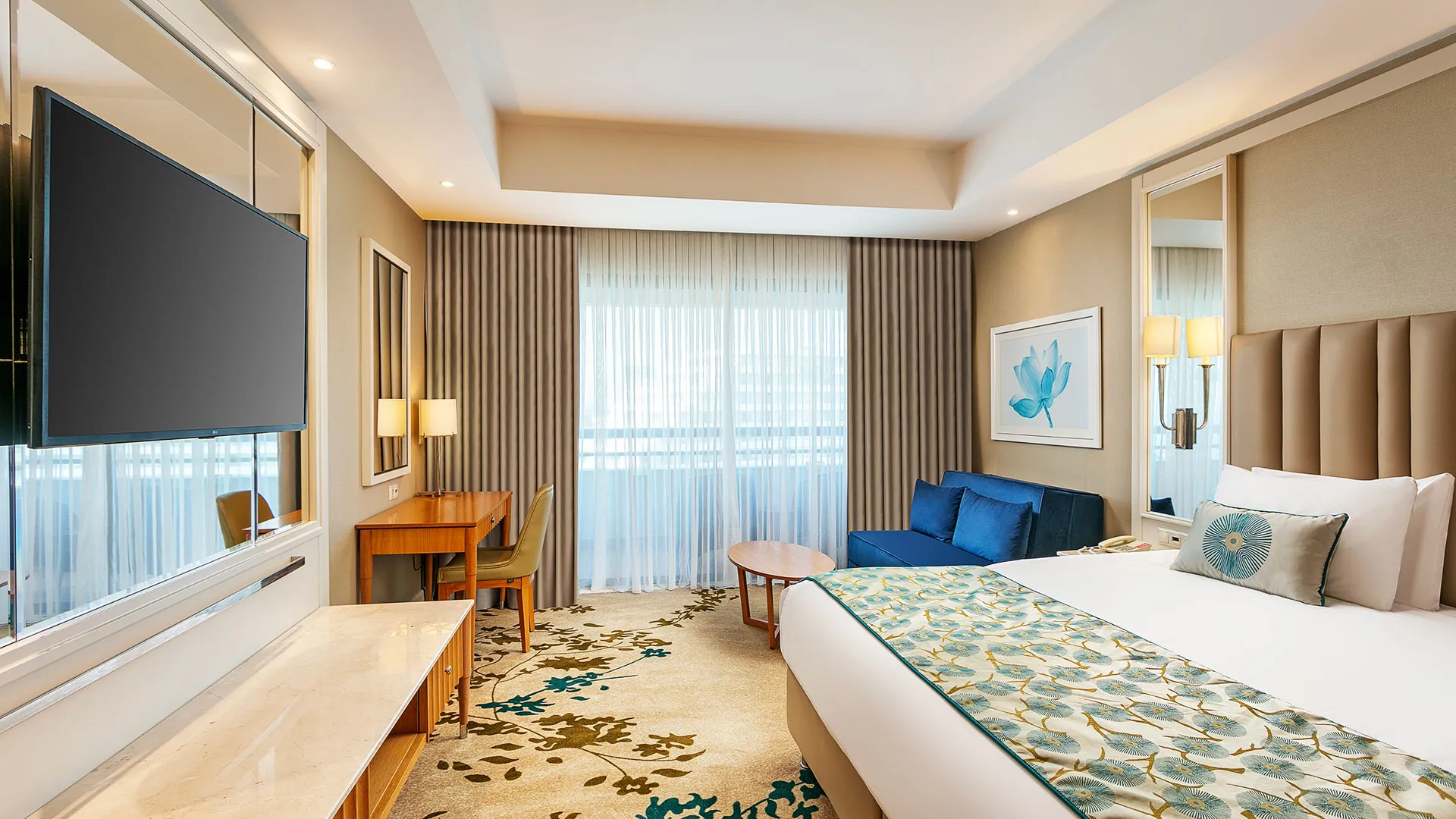 Стайте в хотела са оформени с внимание към детайла и предоставят изискана комбинация от комфорт и елегантност. Прозорците са разположени така, че да отварят гледка към морето, докато шезлонгите на приватните балкони са мястото за отдих и наслада на морските вълни.