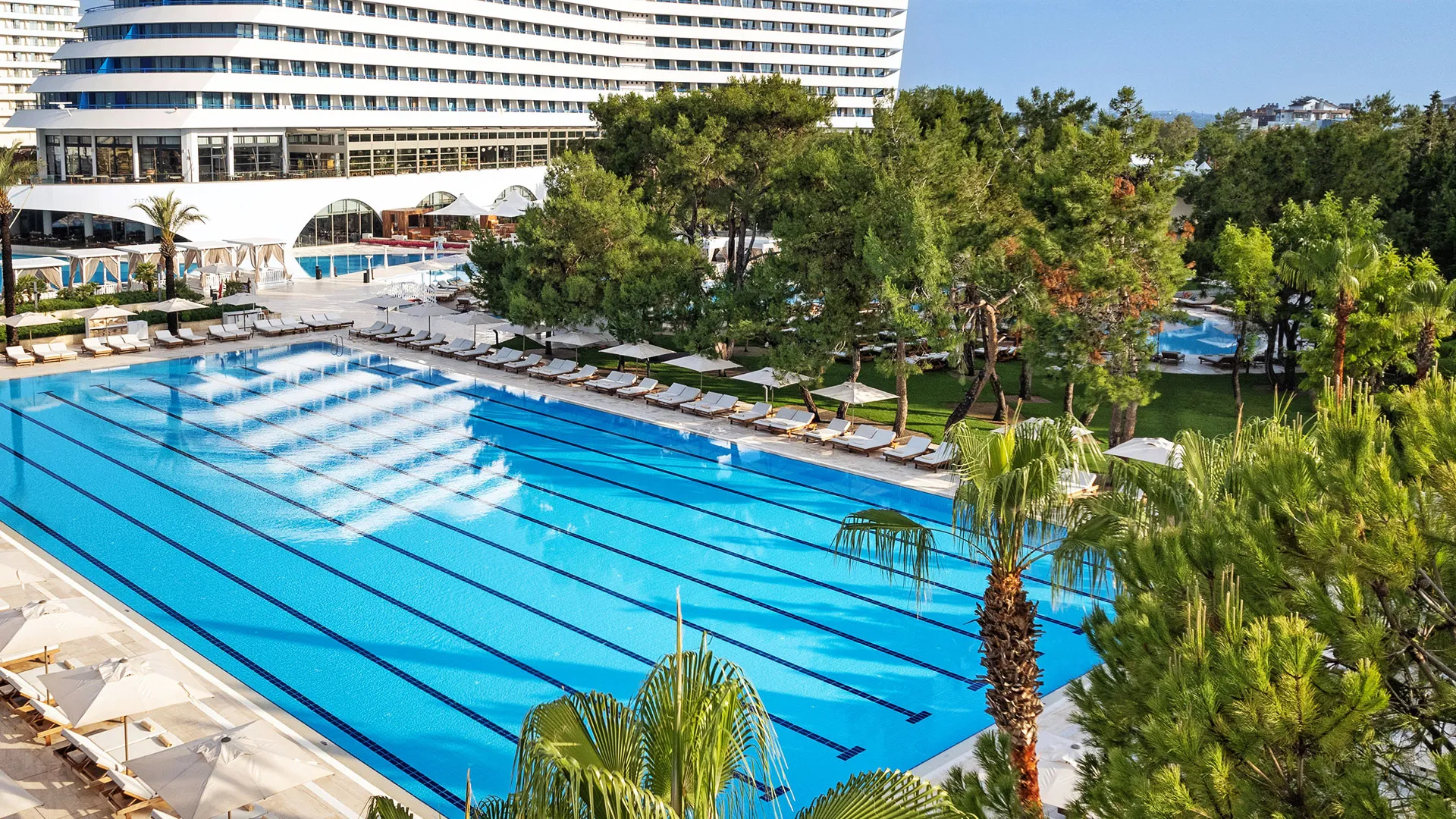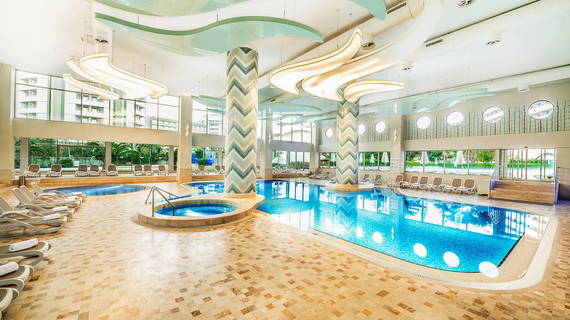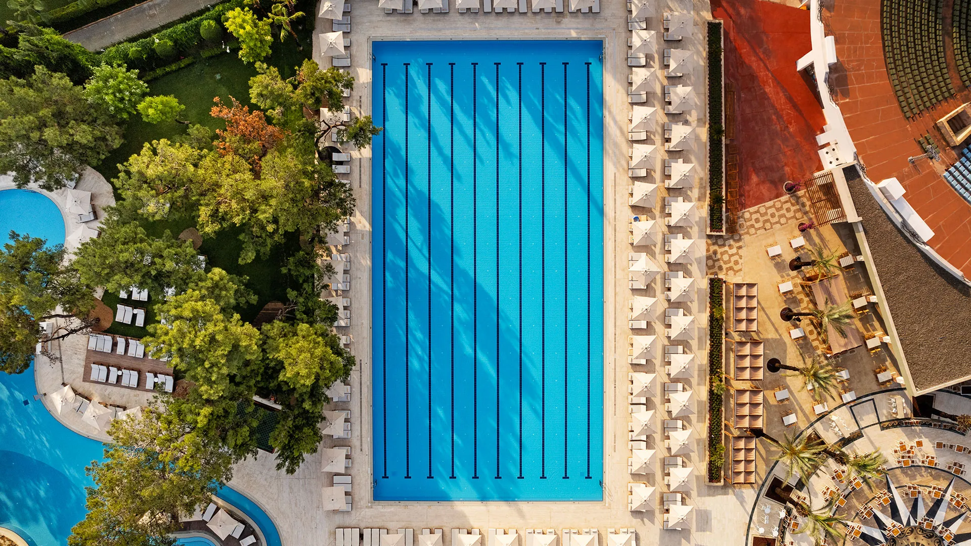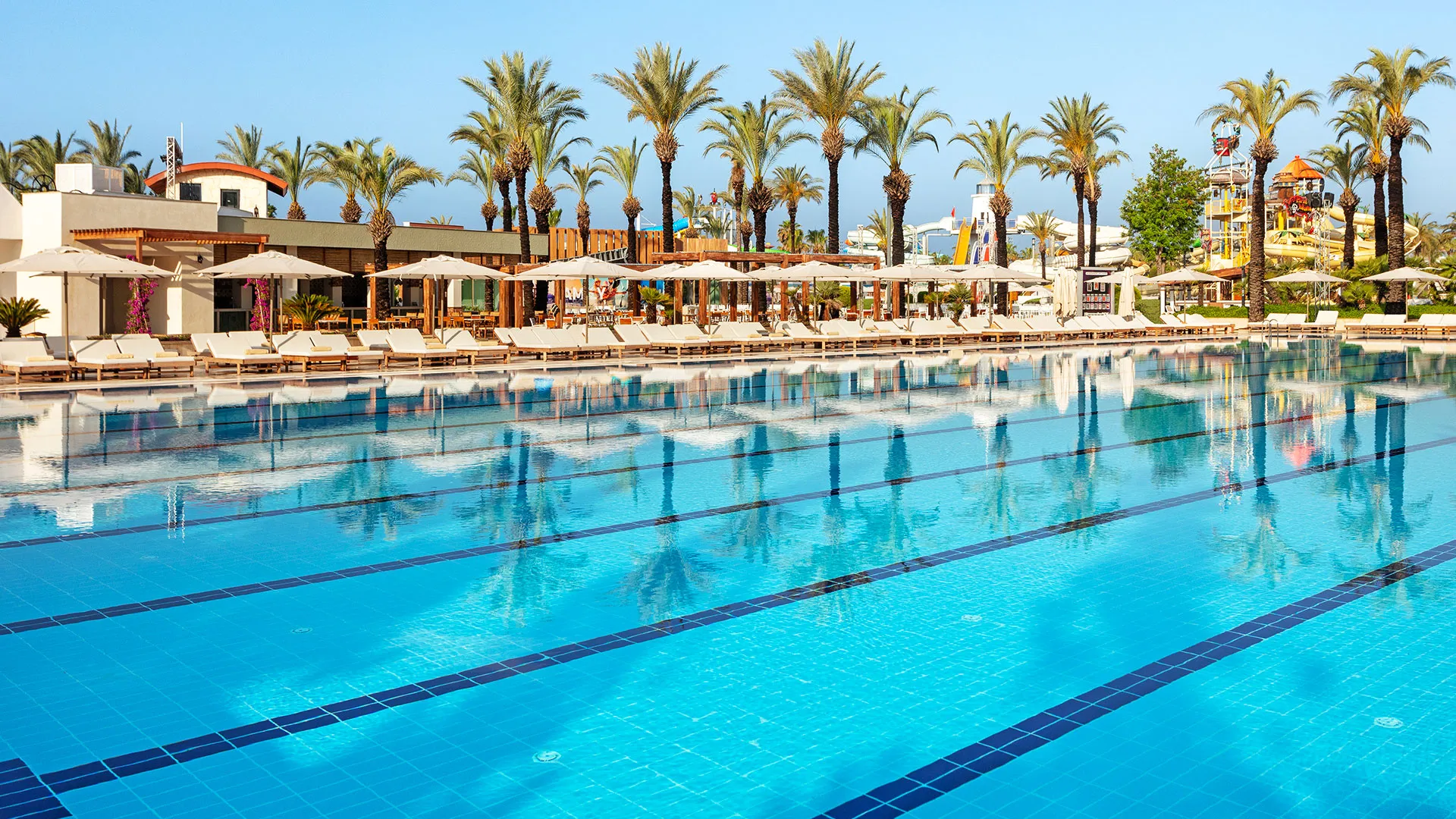 Хотелът се гордее с огромния си външен басейн, простиращ се на повече от 5000 квадратни метра, съчетан с вълнуващи водни пързалки. За спортните ентусиасти, тук има първокласни футболни и тенис кортове, както и баскетболно игрище, което гарантира разнообразни забавления.