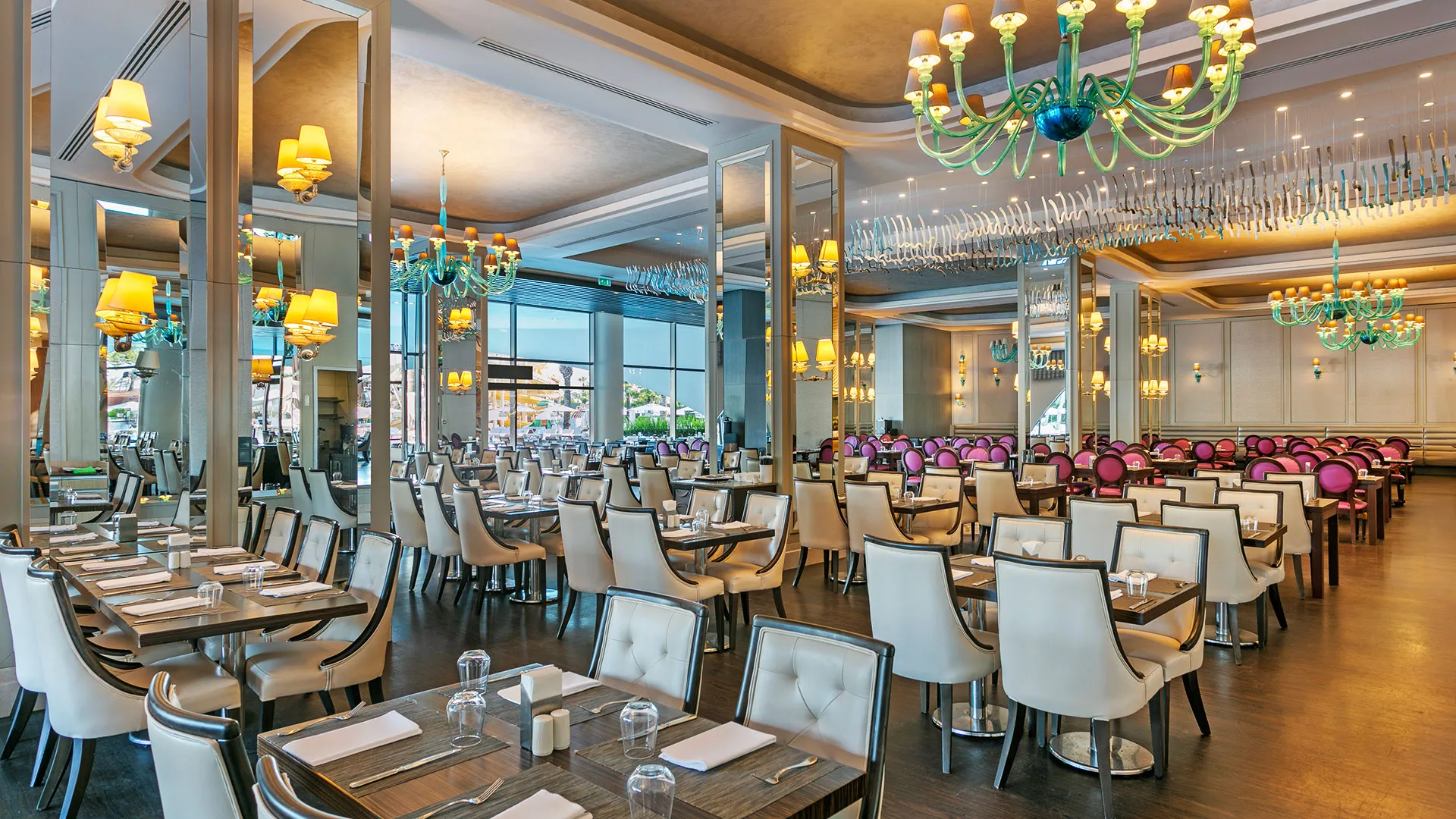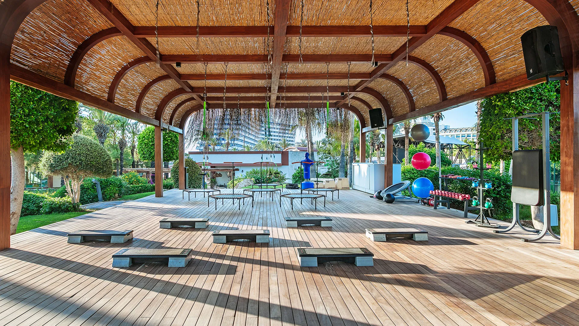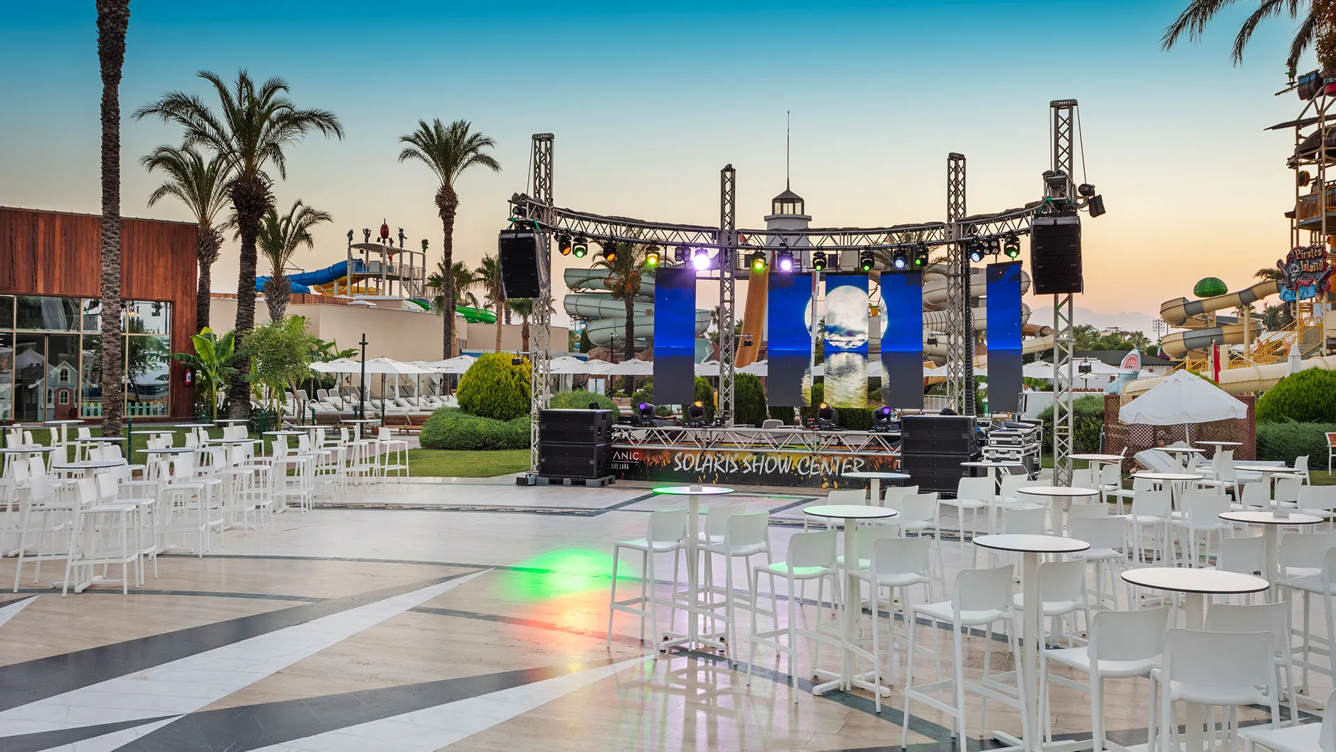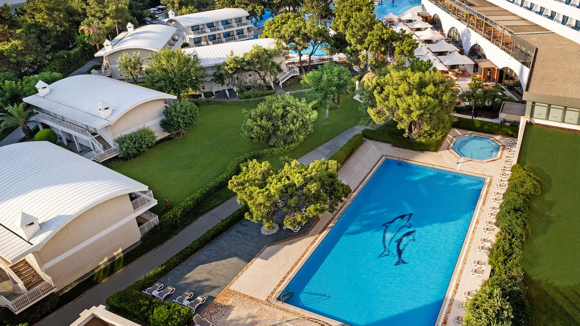 Хотелът се гордее с огромния си външен басейн, простиращ се на повече от 5000 квадратни метра, съчетан с вълнуващи водни пързалки. За спортните ентусиасти, тук има първокласни футболни и тенис кортове, както и баскетболно игрище, което гарантира разнообразни забавления.