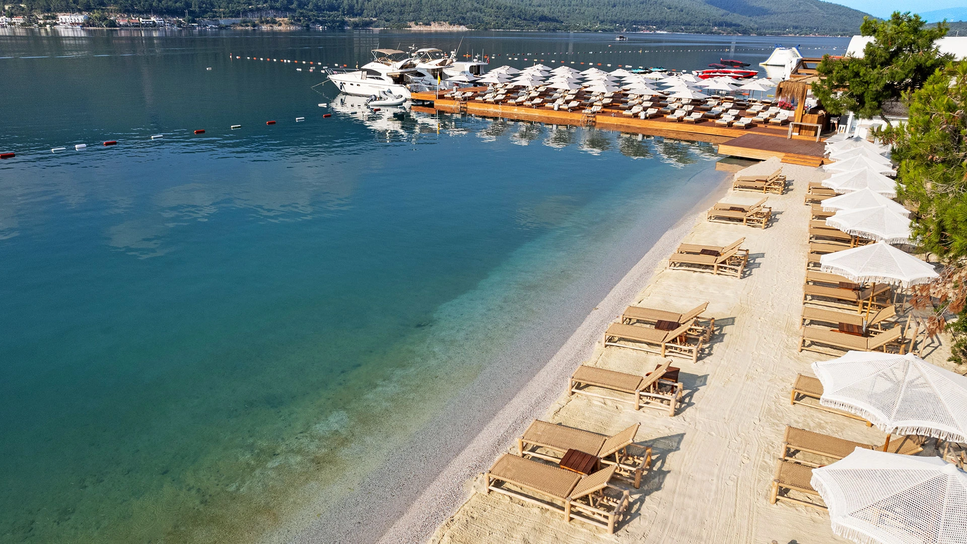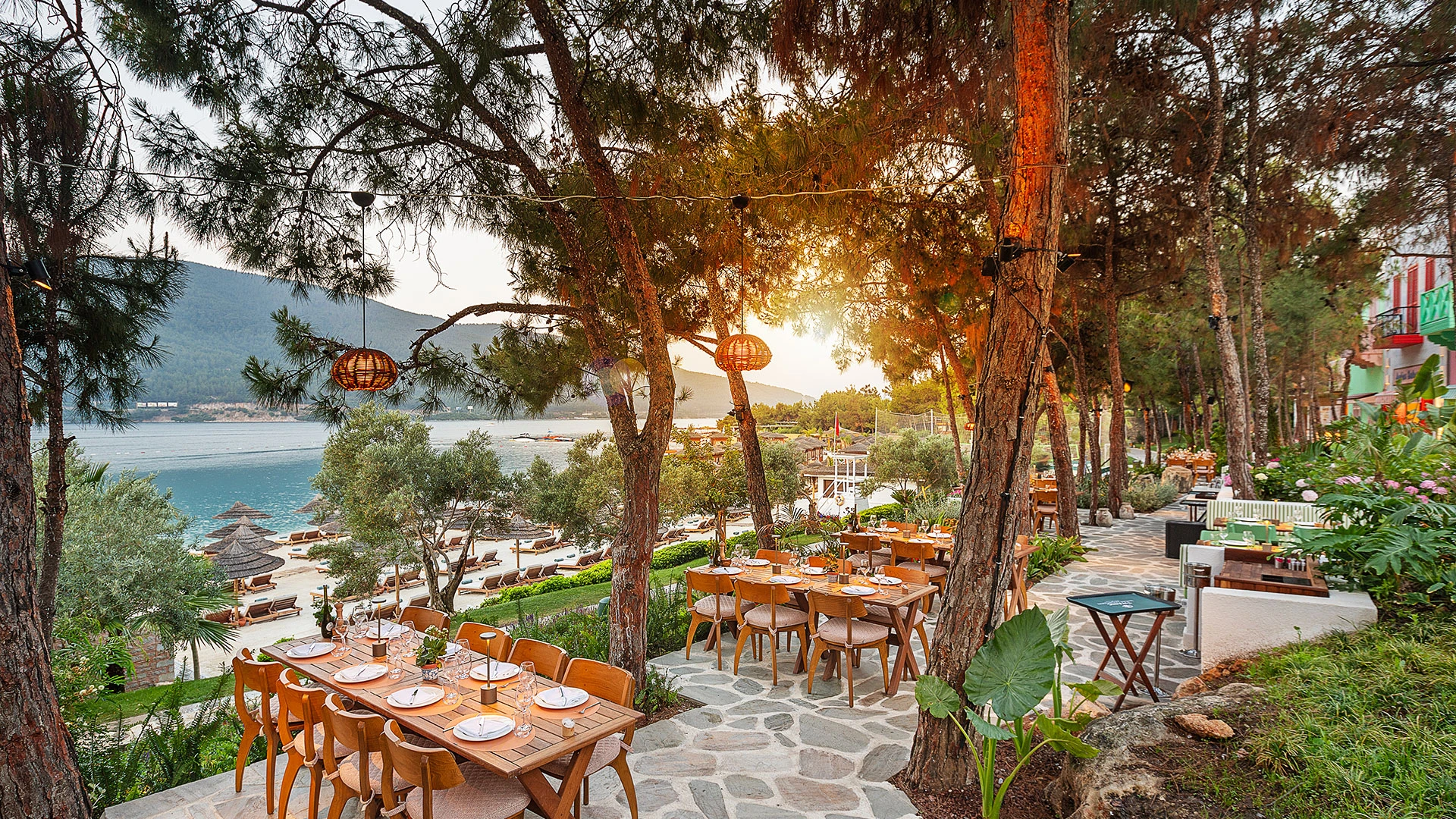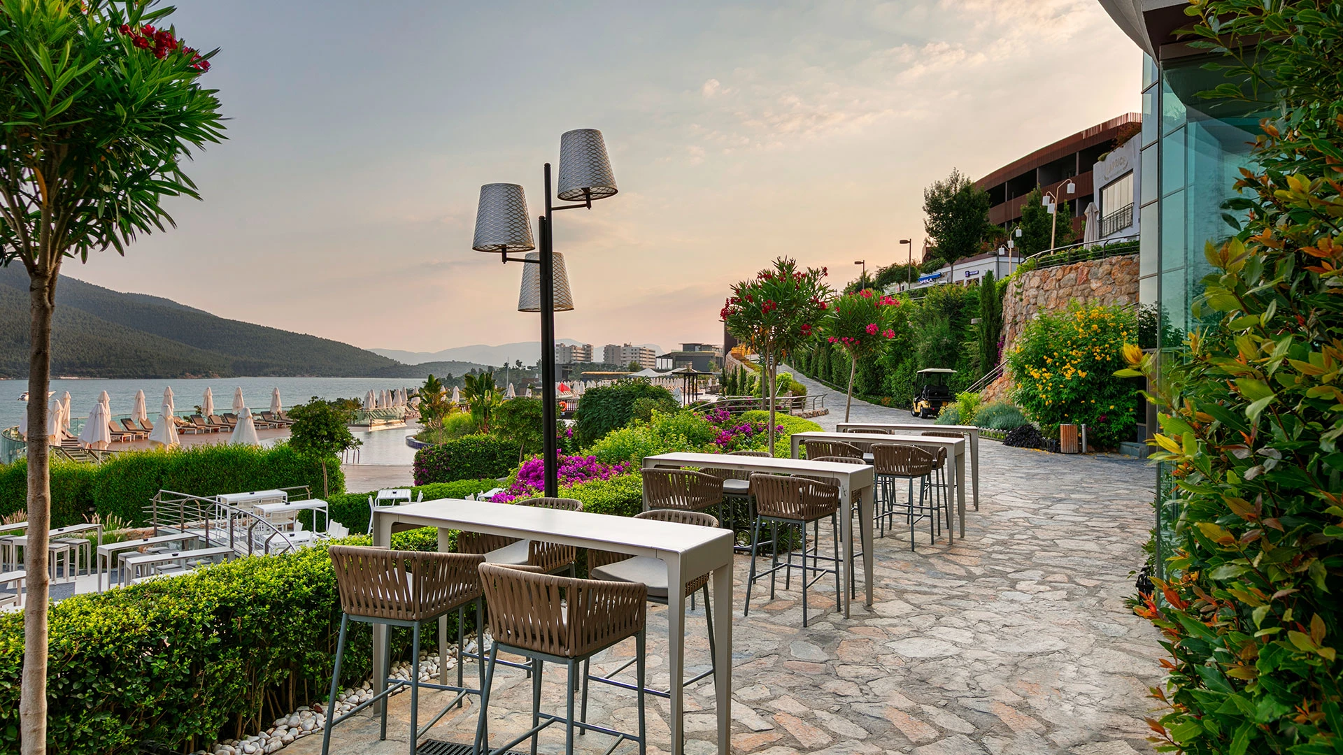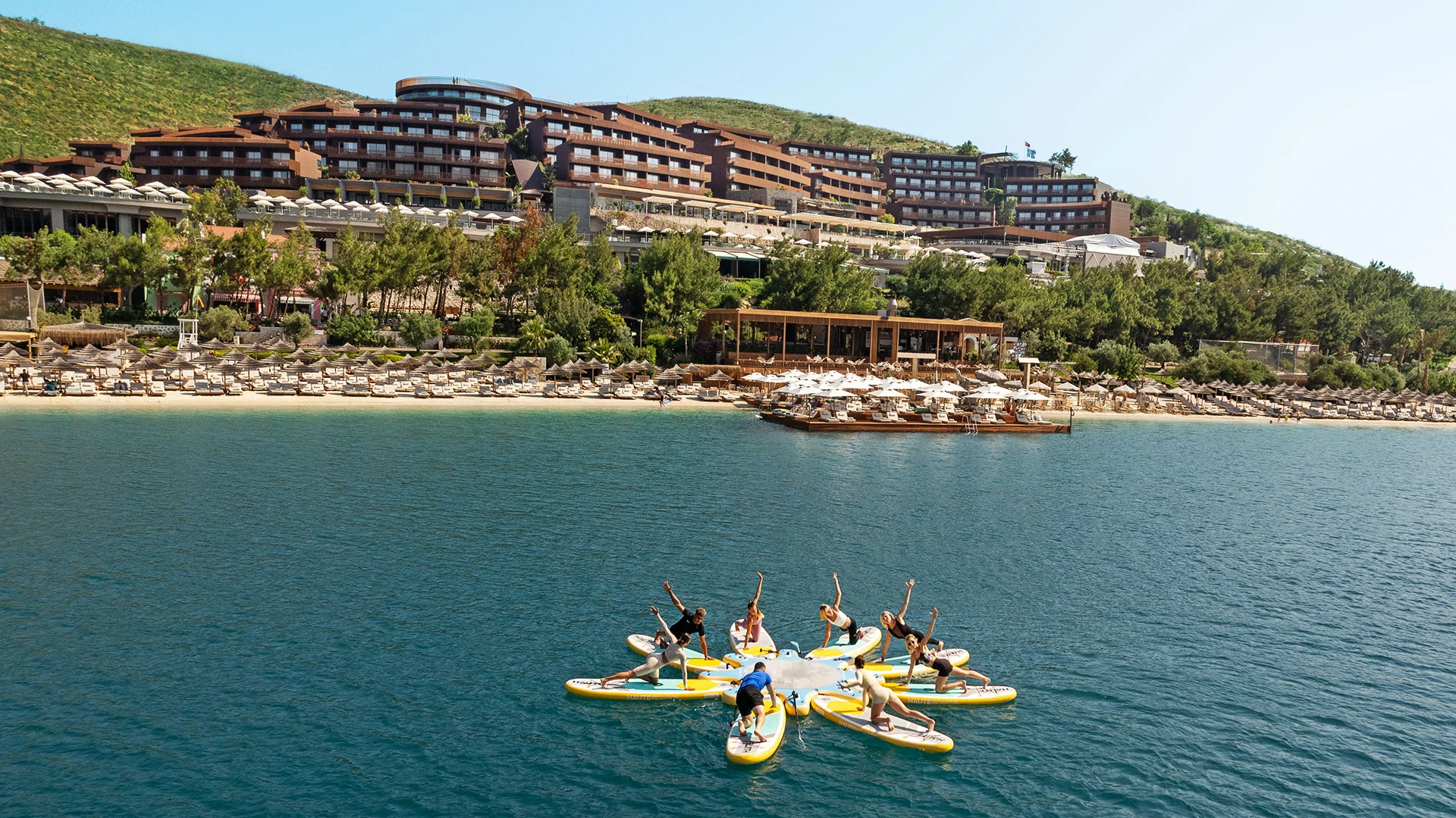 Комплексът разполага със собствен частен плаж, открит басейн и просторни зони за релакс, където гостите могат да се насладят на спокойствие и морски гледки. На разположение са ресторанти с изискана кухня и барове с разнообразие от напитки, създаващи перфектна атмосфера за отдих.