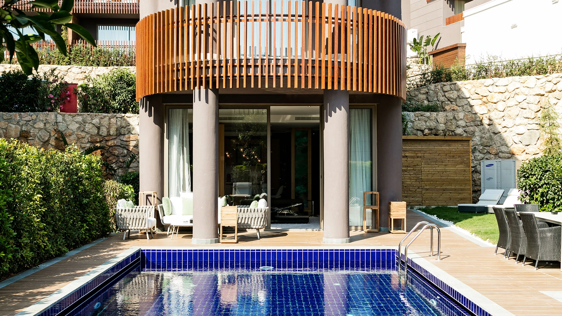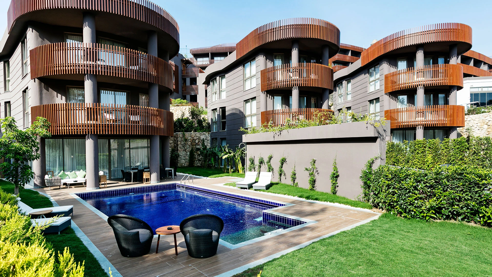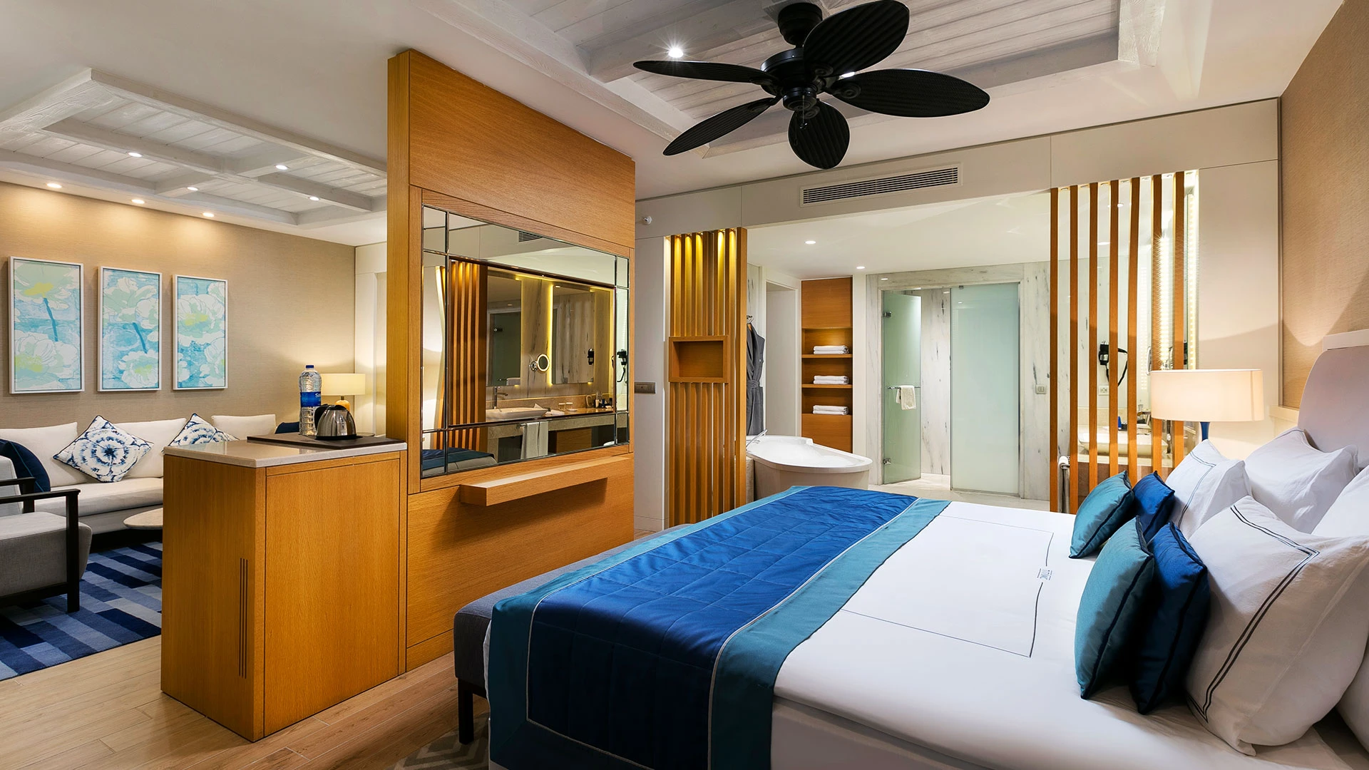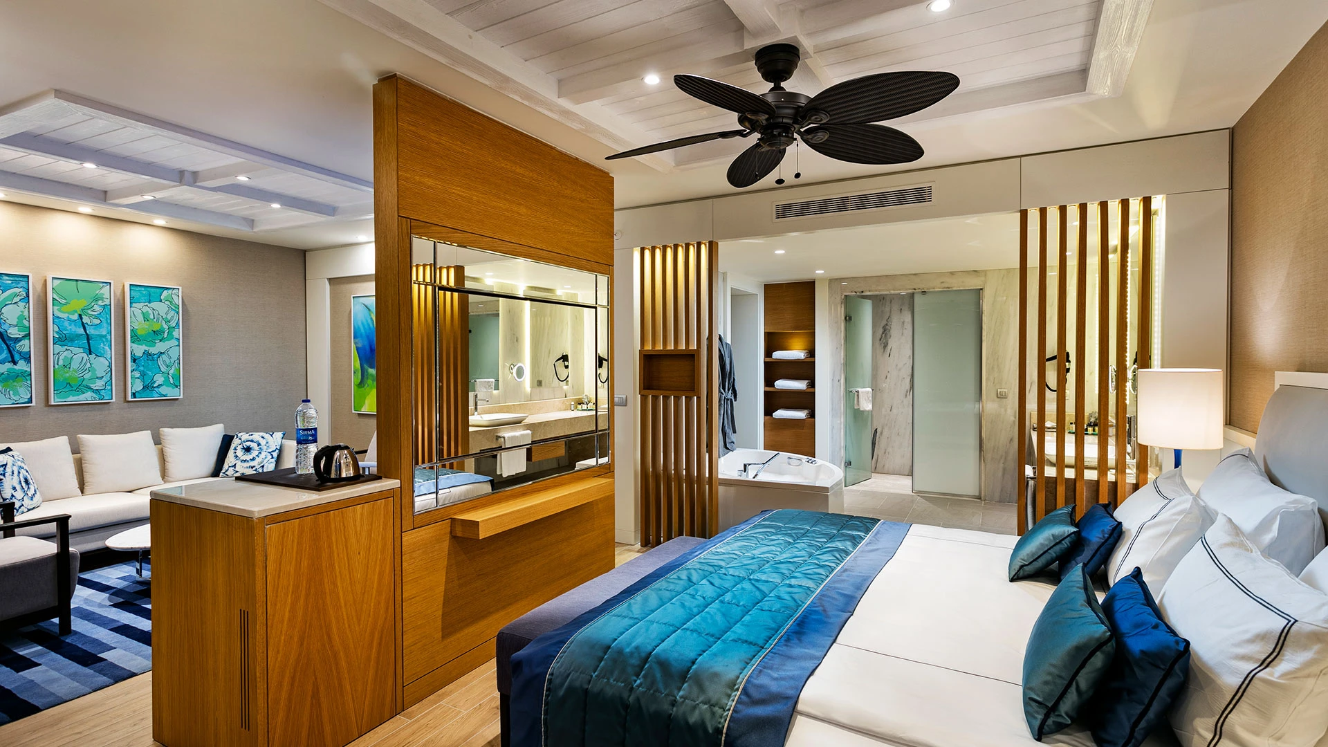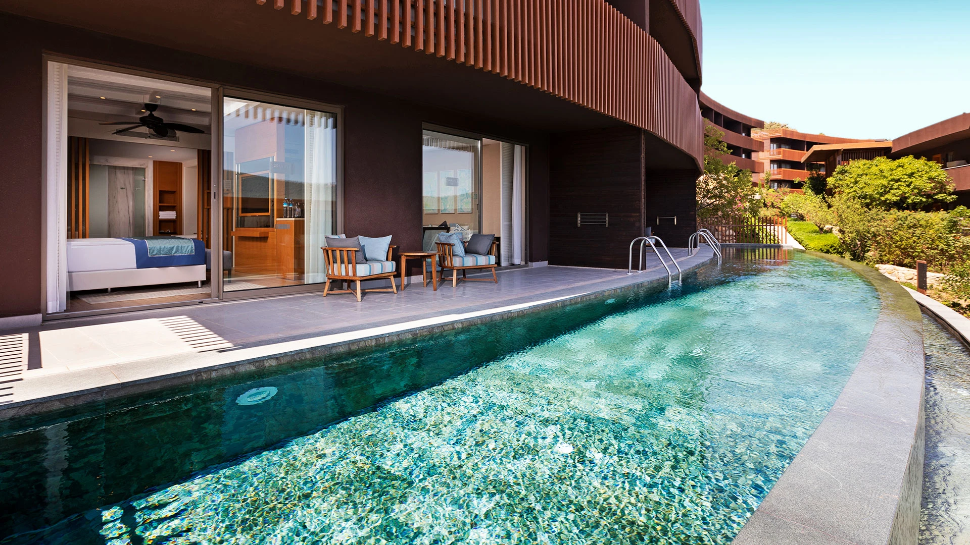 Комплексът разполага със собствен частен плаж, открит басейн и просторни зони за релакс, където гостите могат да се насладят на спокойствие и морски гледки. На разположение са ресторанти с изискана кухня и барове с разнообразие от напитки, създаващи перфектна атмосфера за отдих.