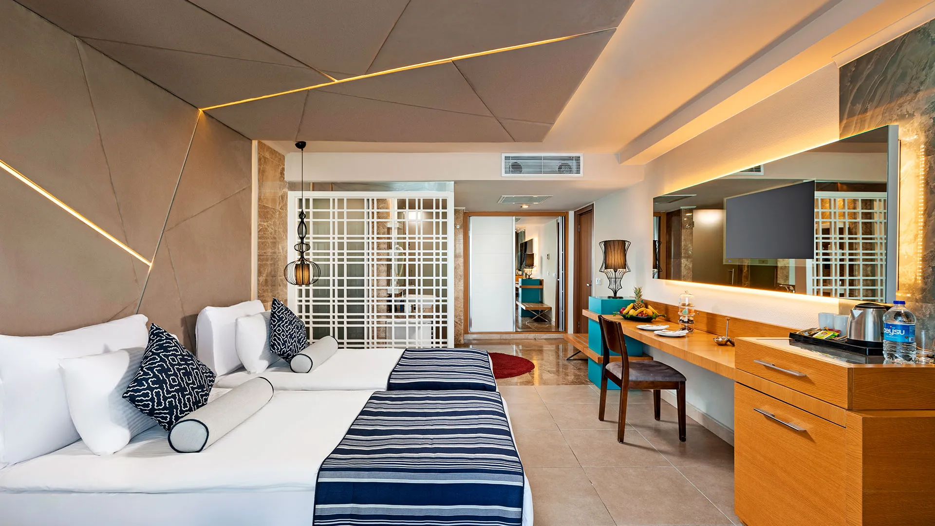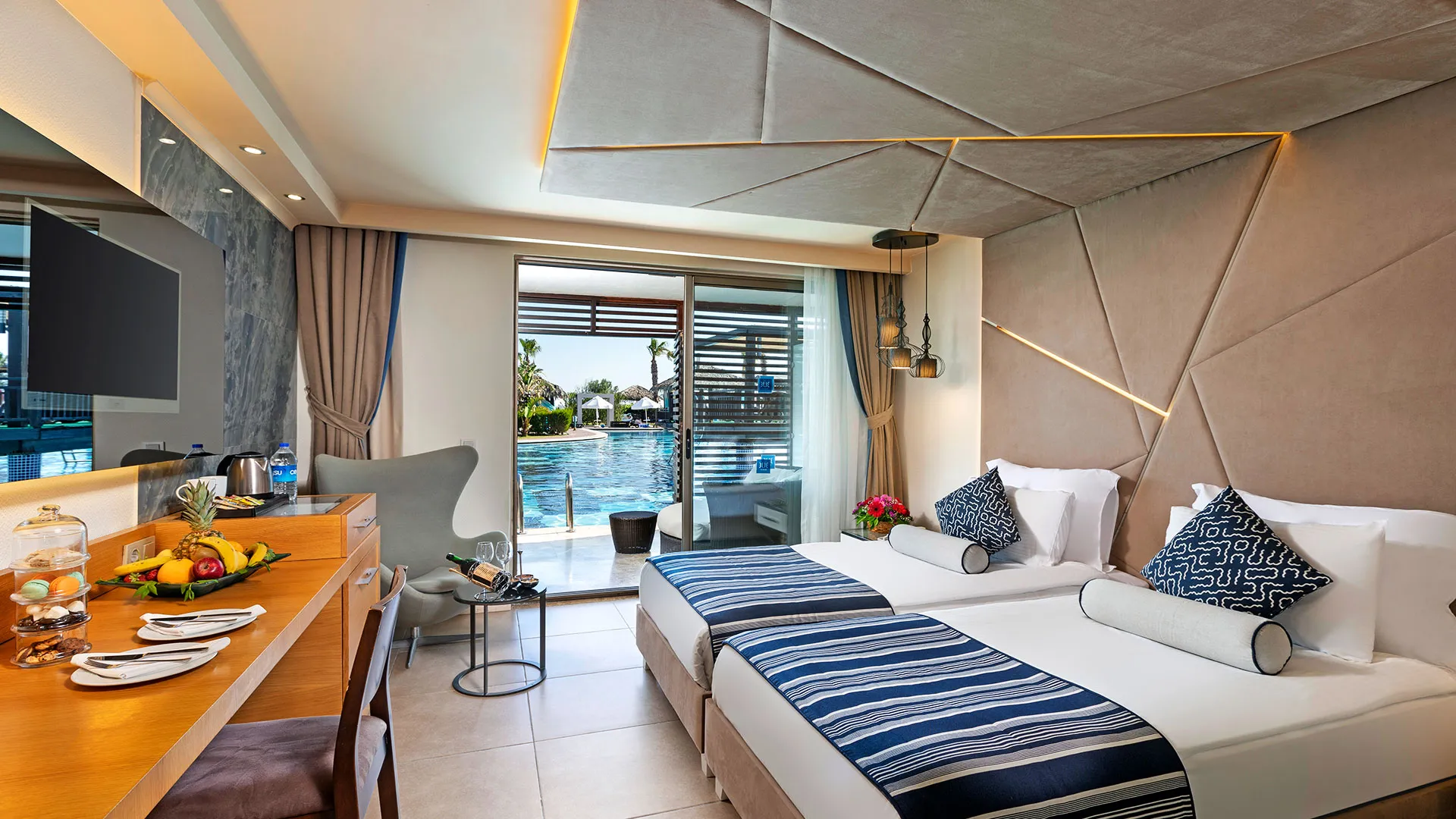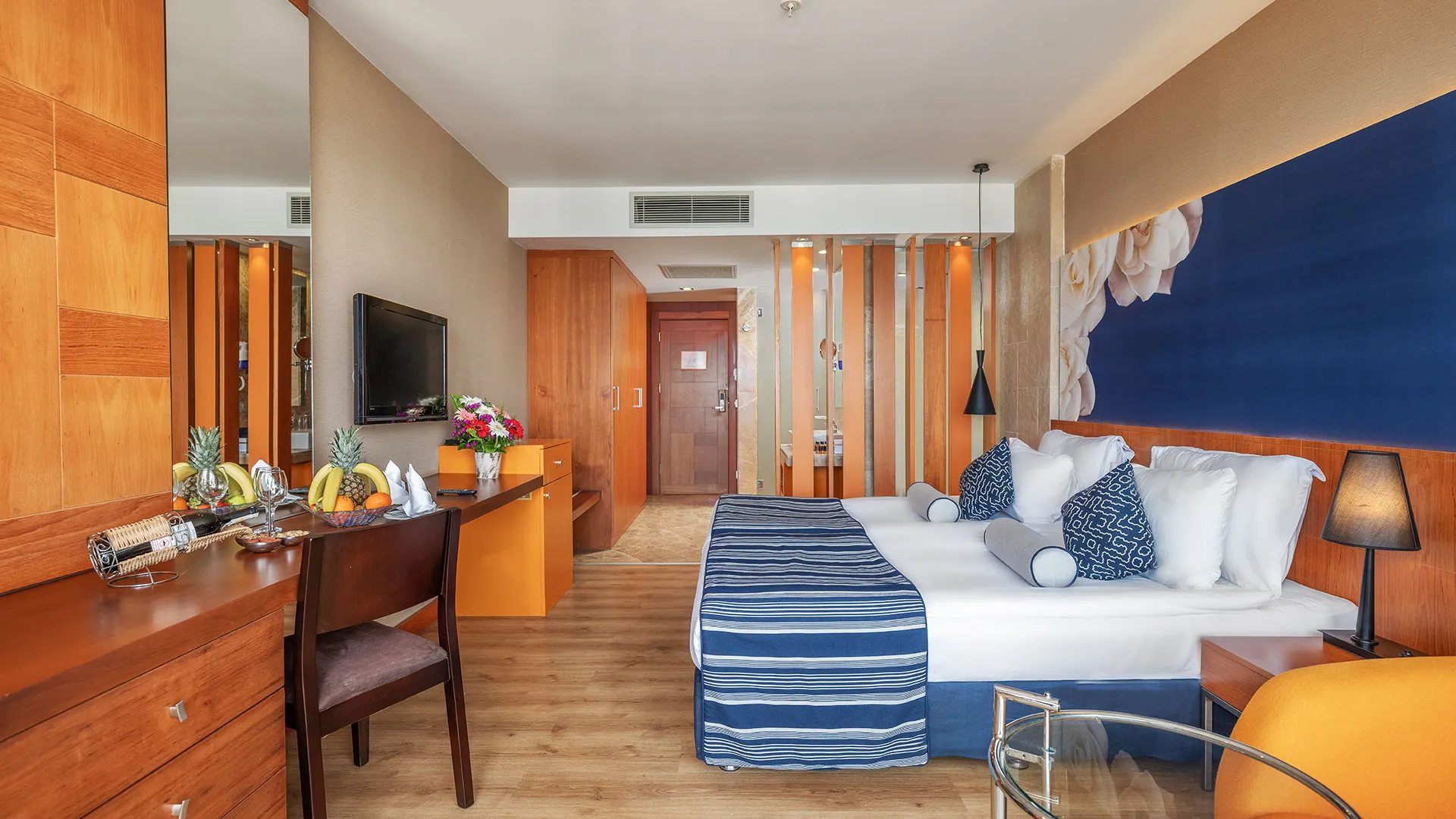 Стаите в Tui Blue Sherwood Belek са обзаведени с изискан дизайн и са оборудвани с всичко необходимо за комфортно пребиваване на гостите. Те предлагат просторни помещения, модерни удобства и прекрасна гледка към морето или градините.