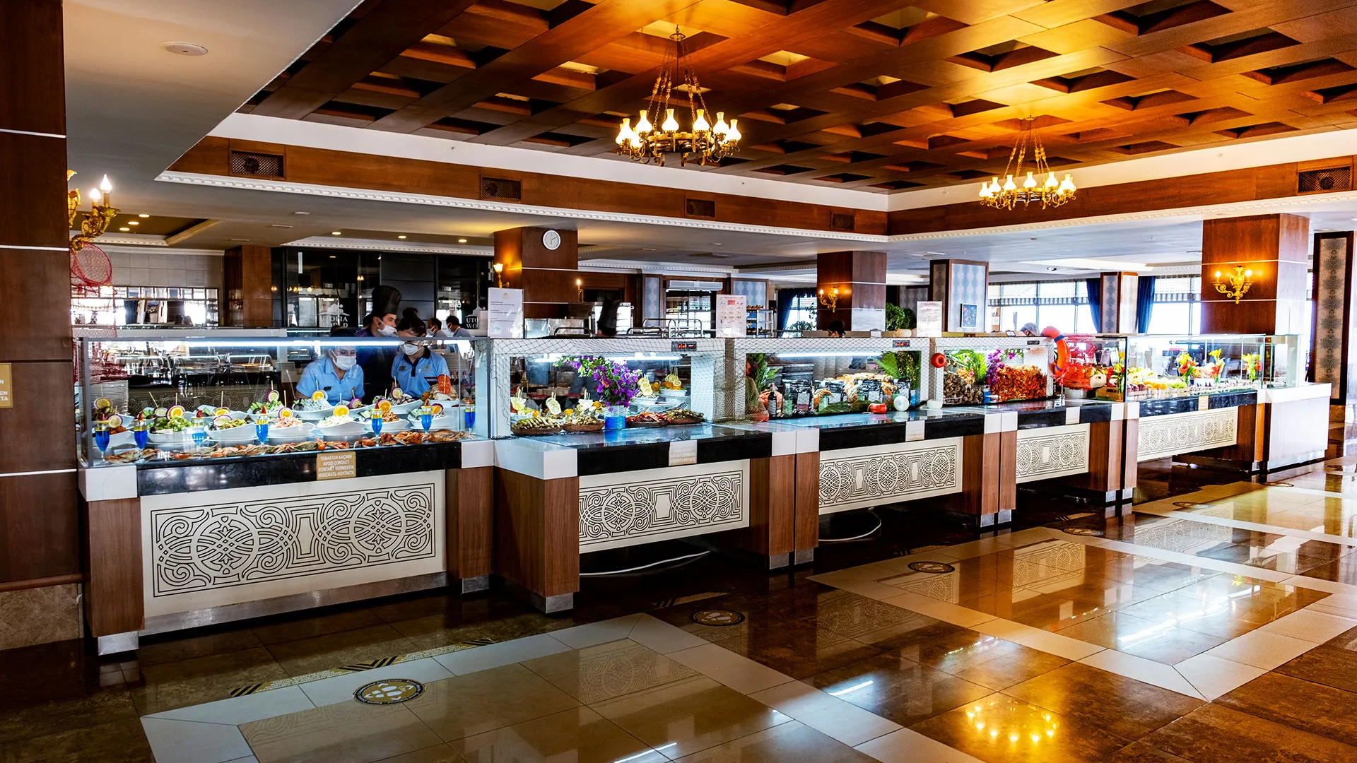 Хотелът разполага с основен ресторант и няколко à la carte заведения, например османска, италианска и местна кухня. Има и специални часове за сладолед и десерти, традиционна юрук шатра за палачинки. Баровете включват лоби бар, плажен бар и бар при басейна.