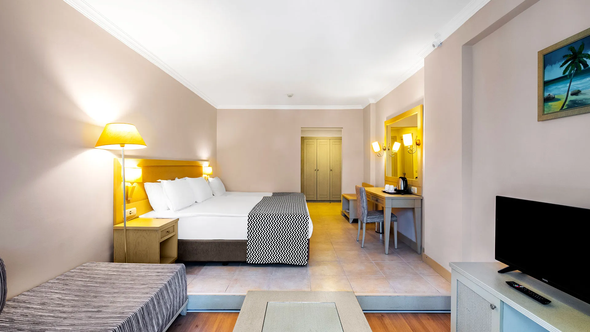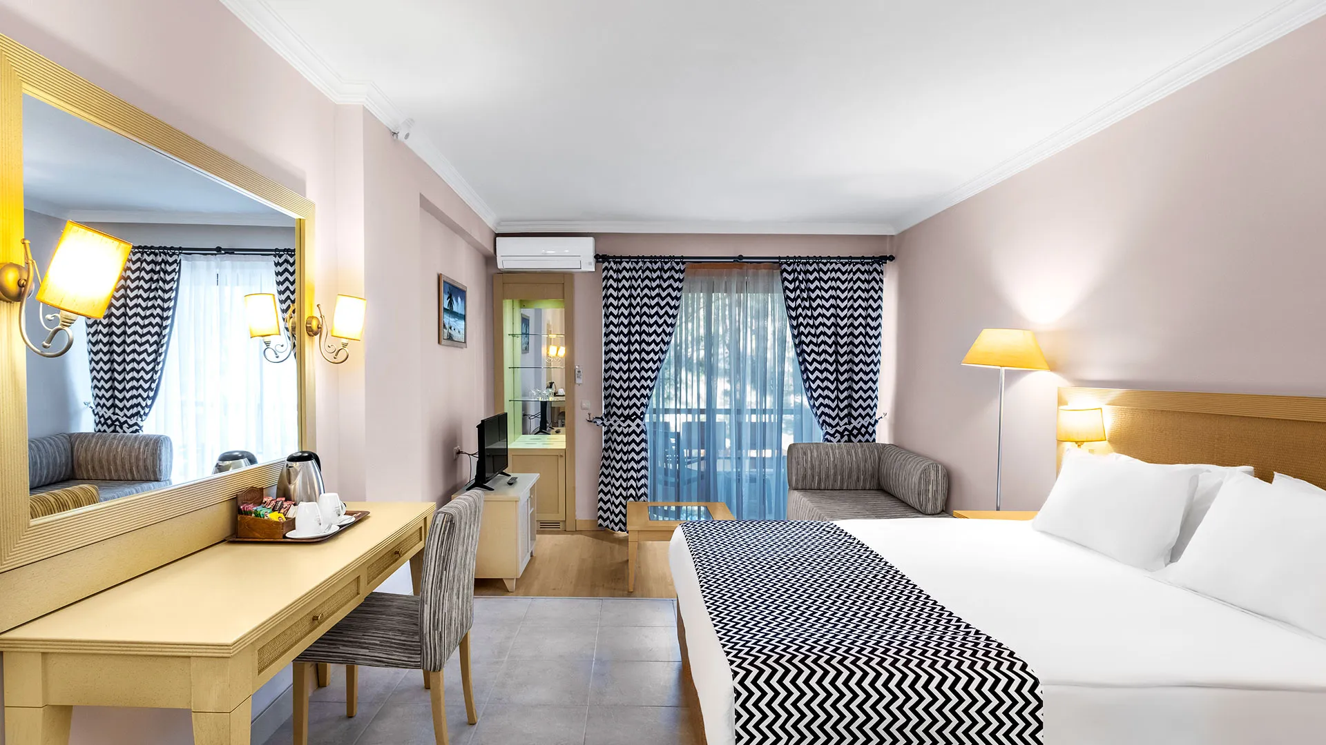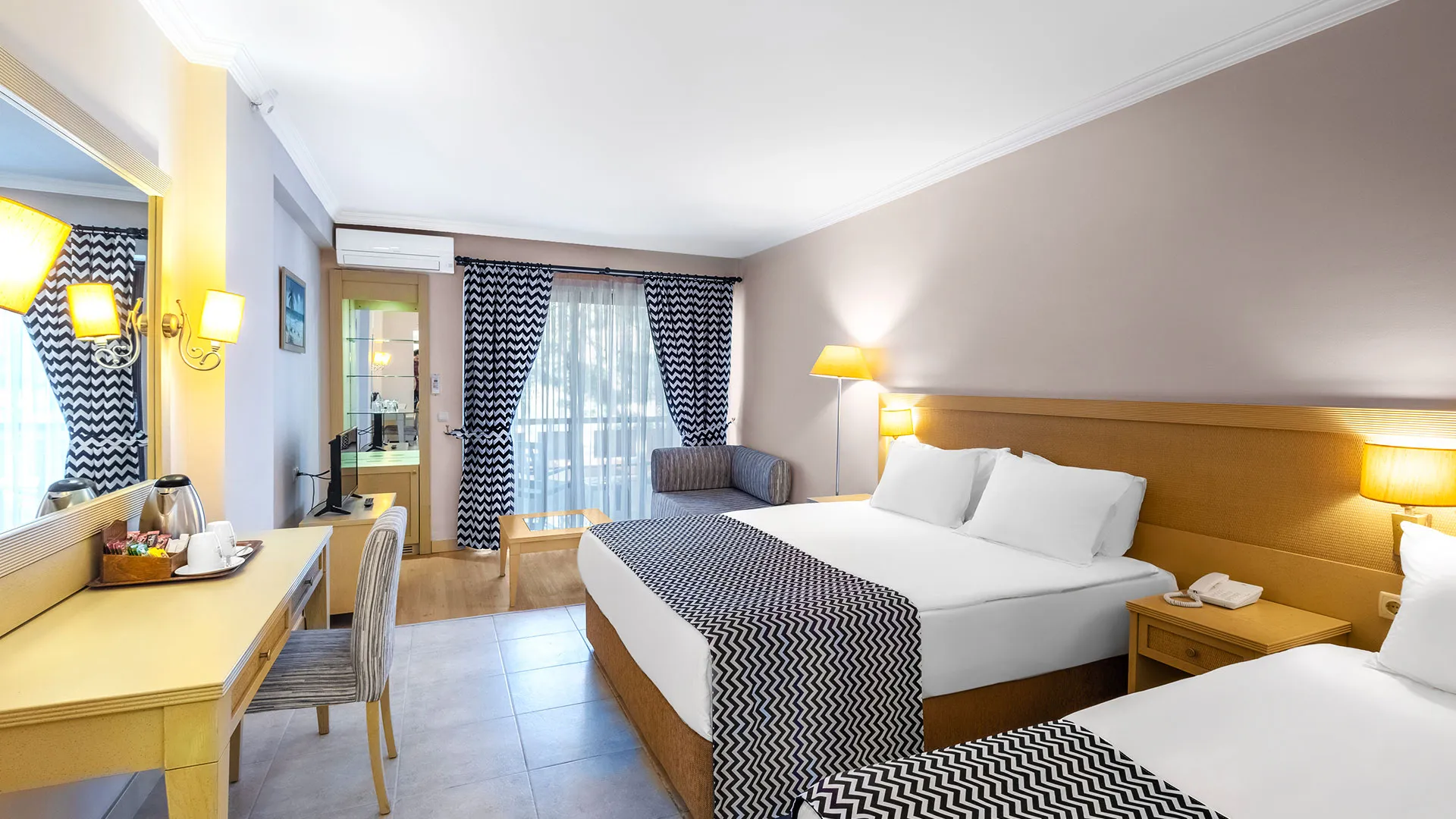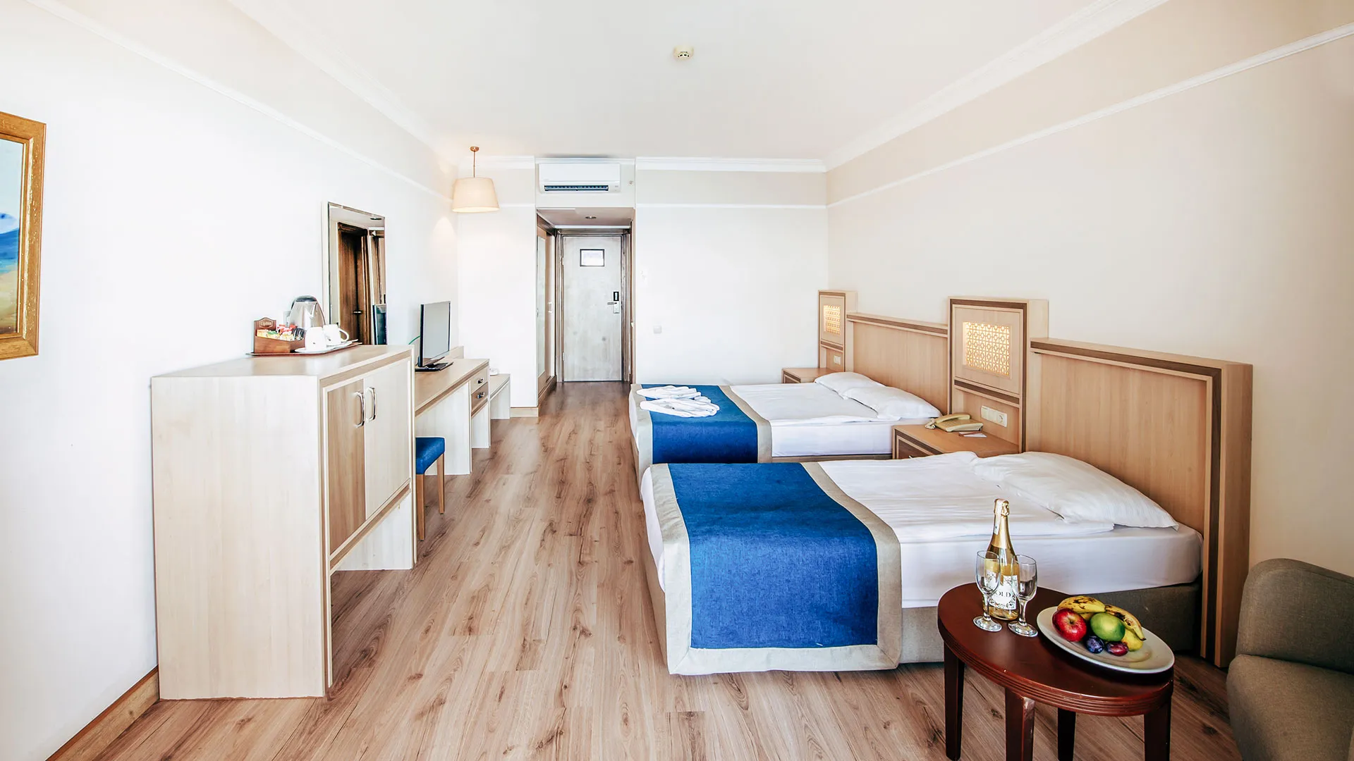 Стаите са просторни, модерно обзаведени, всички с балкон и гледка към морето или планината. Някои категории включват отделен салон и вана със СПА функции. Всяка стая разполага със сателитна телевизия, минибар, климатик и безплатен Wi‑Fi.