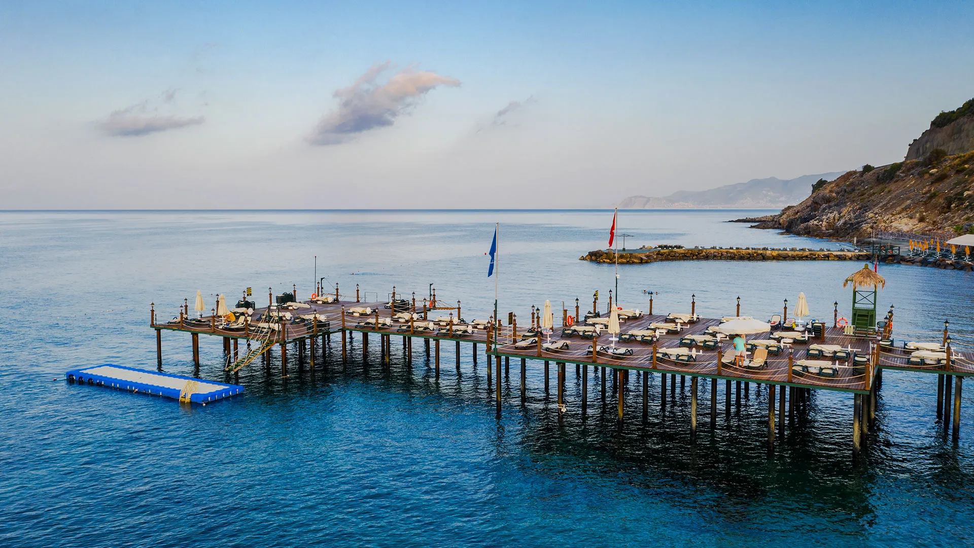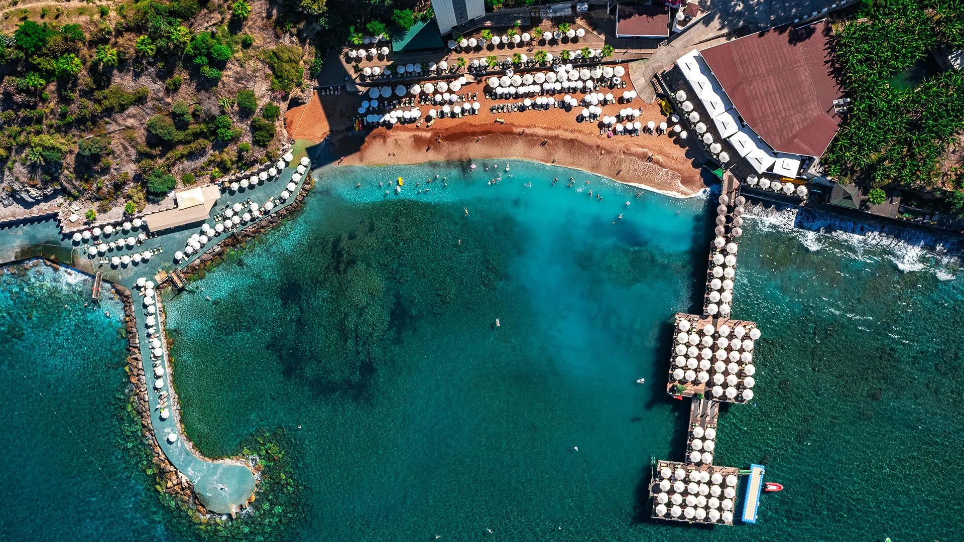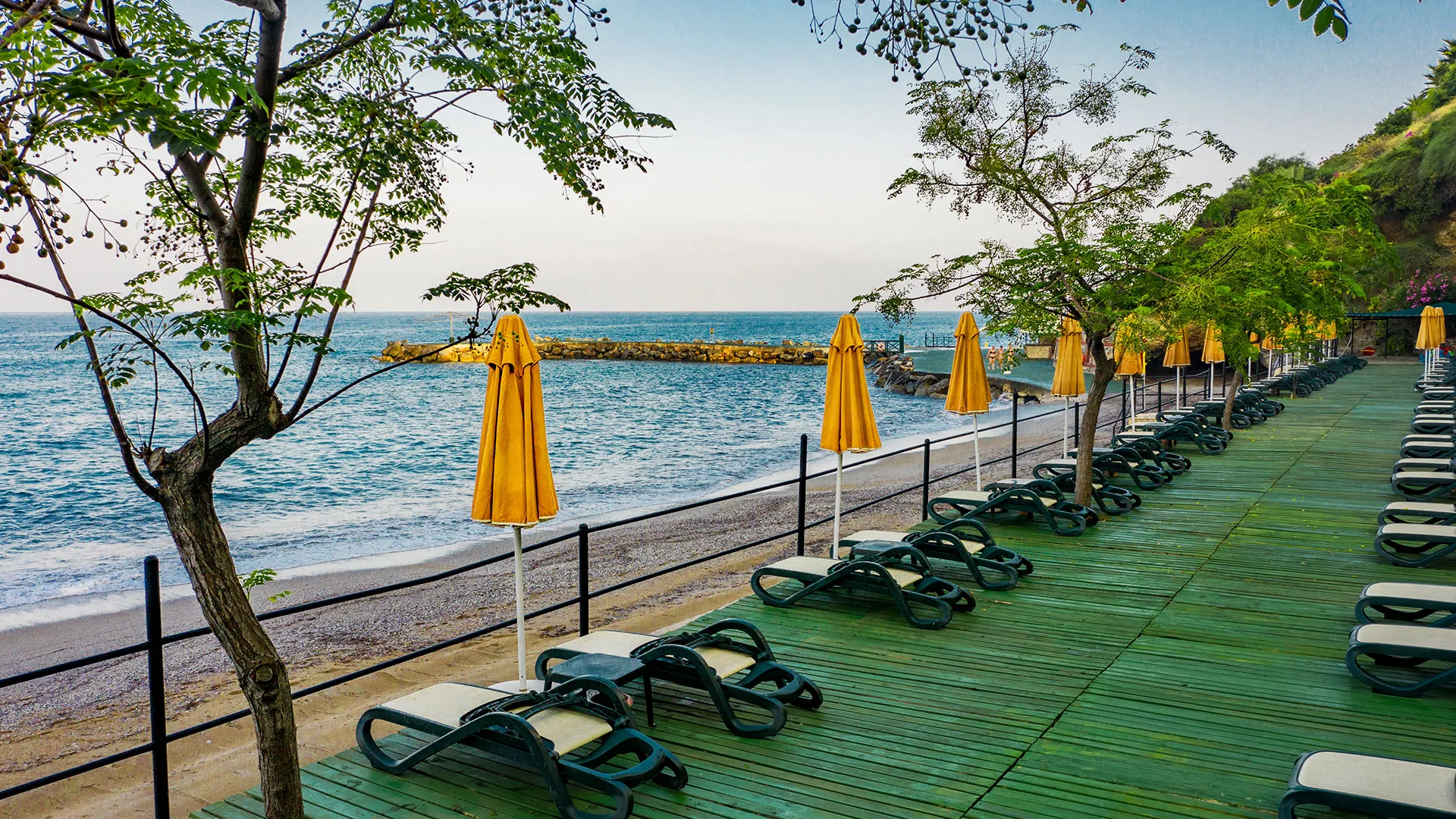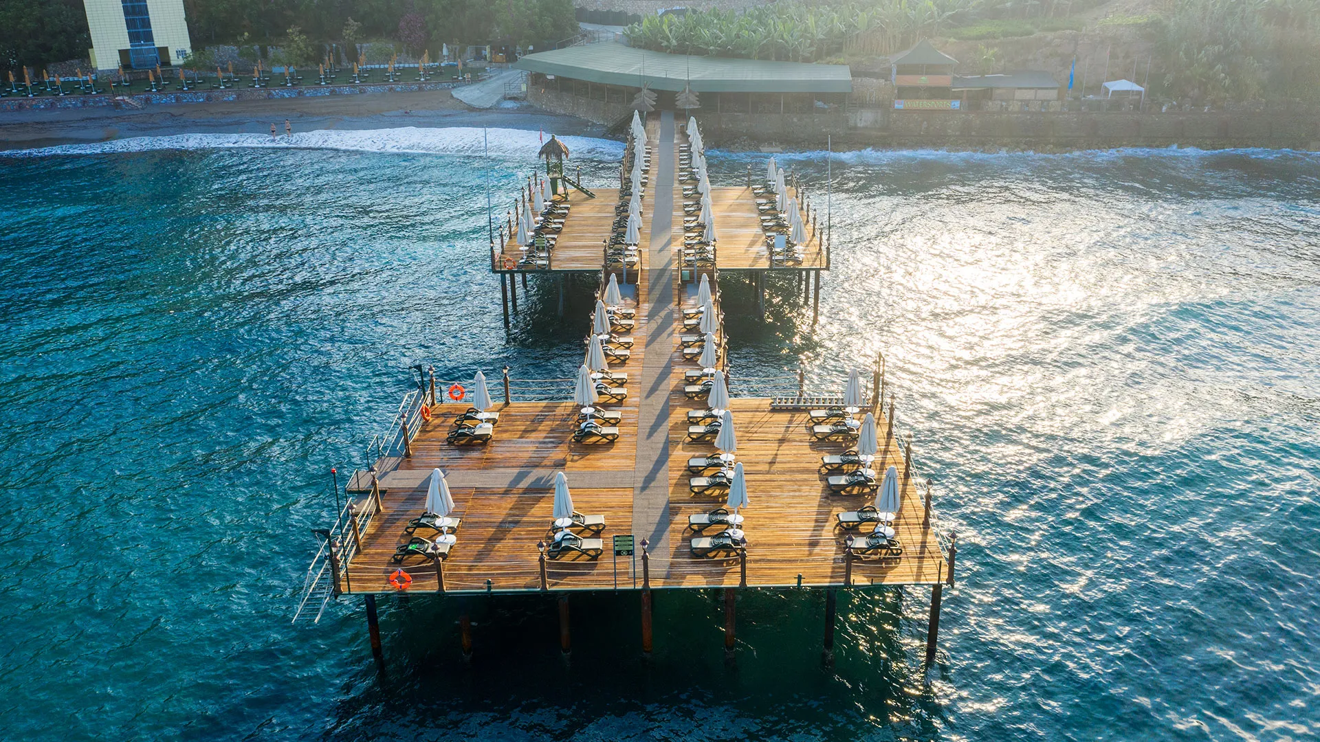 - Собствен плаж със шезлонги, чадъри и плажни кърпи