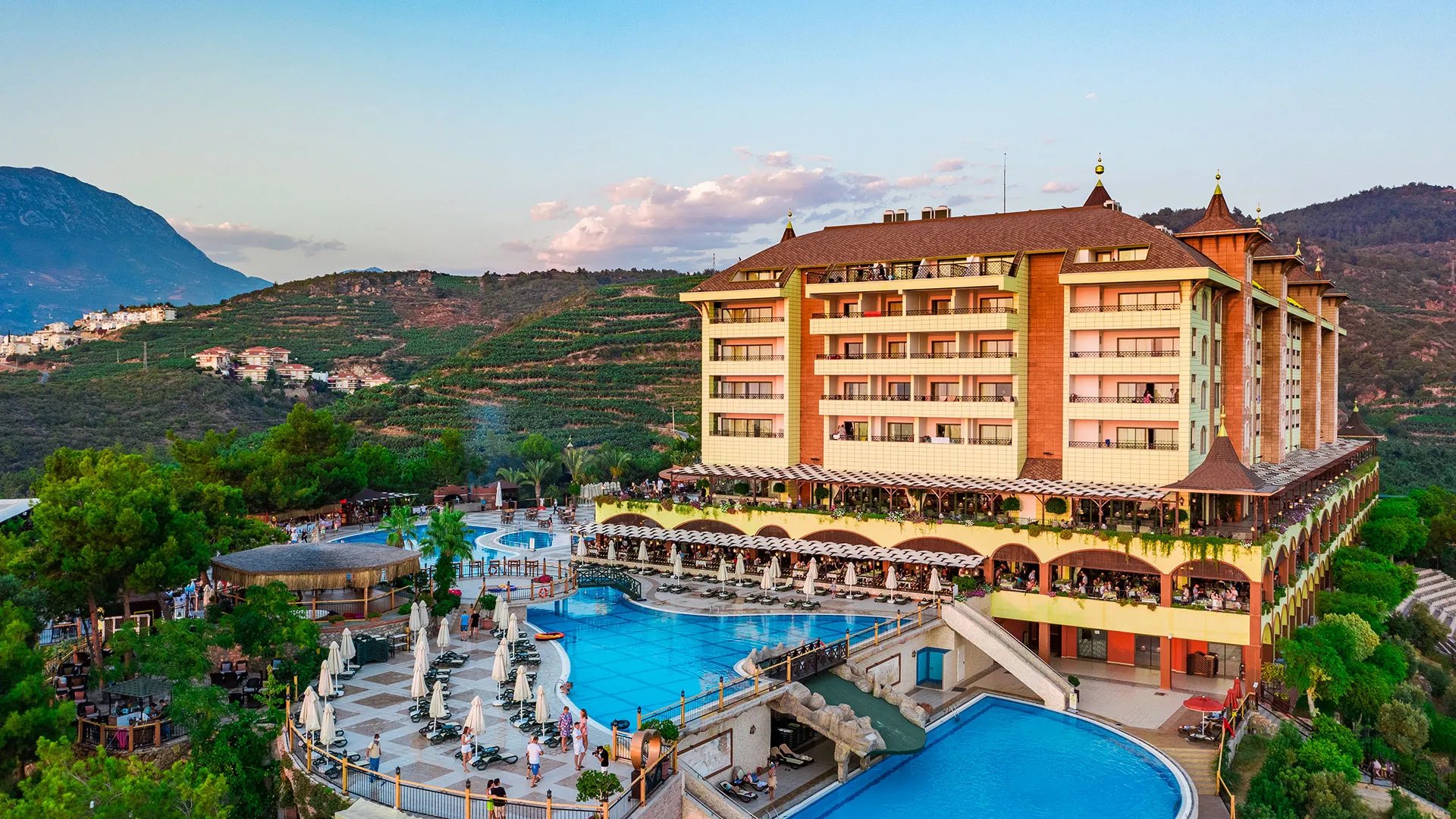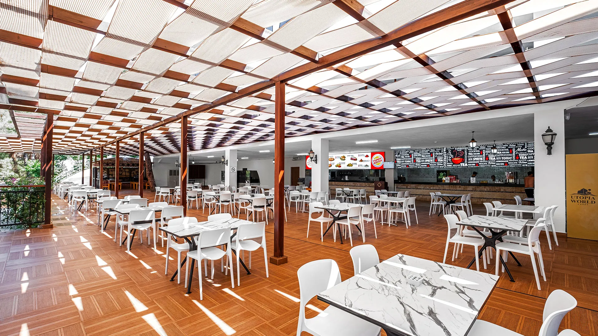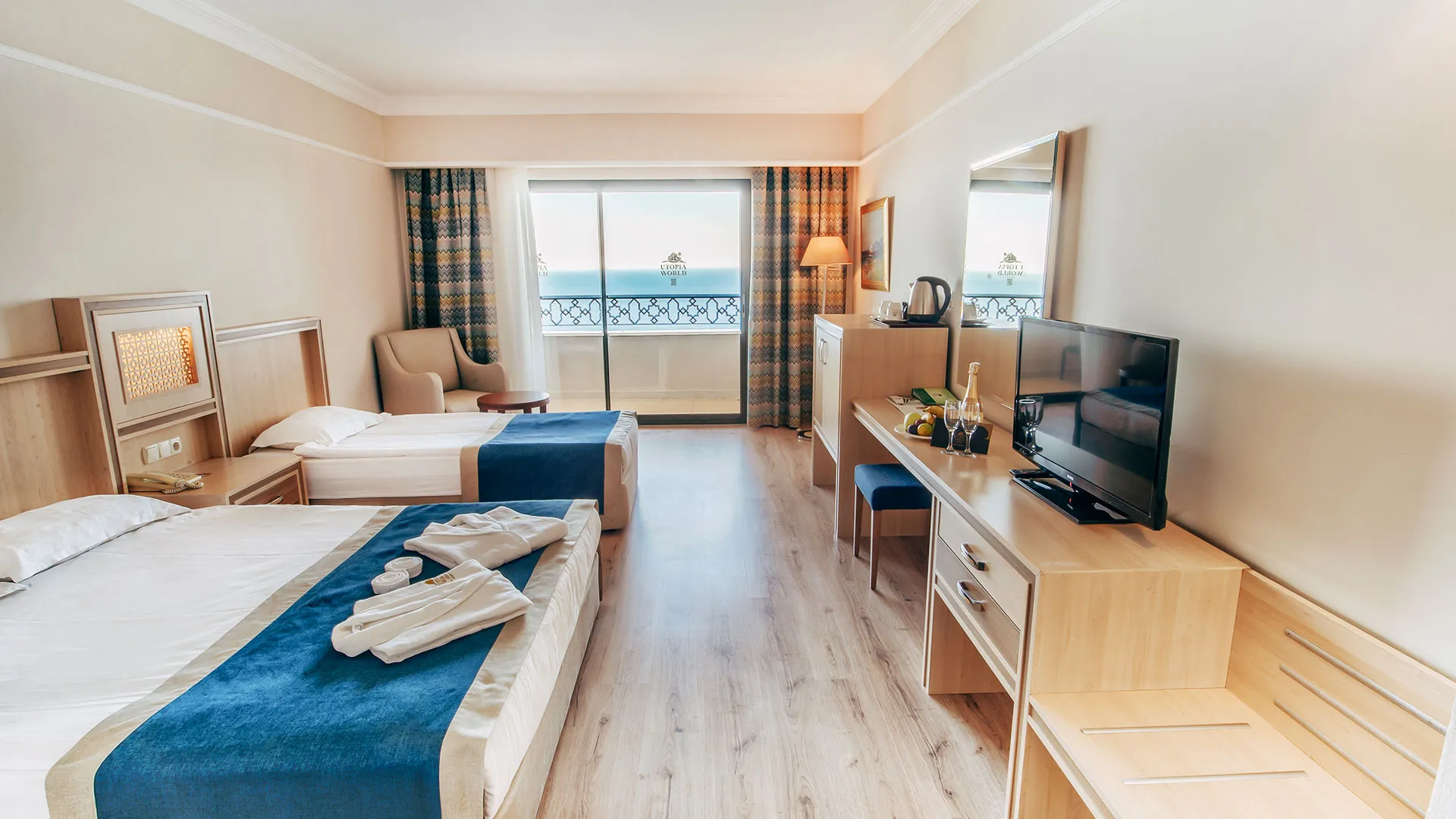 Utopia World е луксозен 5‑звезден курорт с концепция „Ultra All Inclusive“. Територията е около 120 000 м². На разположение има голям аквапарк с площ около 15 000 м², различни басейни и собствен плаж с два кейове. Хотелът предлага услуги за семейства, забавления и висок клас удобства.
