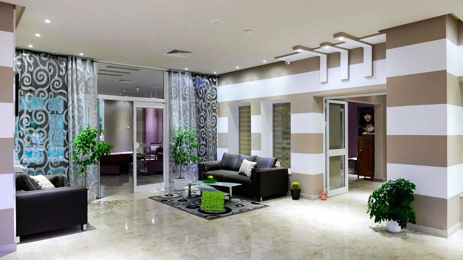 - Разположен на около 100 метра от красив пясъчен плаж срещу яхтеното пристанище Marina Yasmine в близост до тематичния парк Carthage Land;