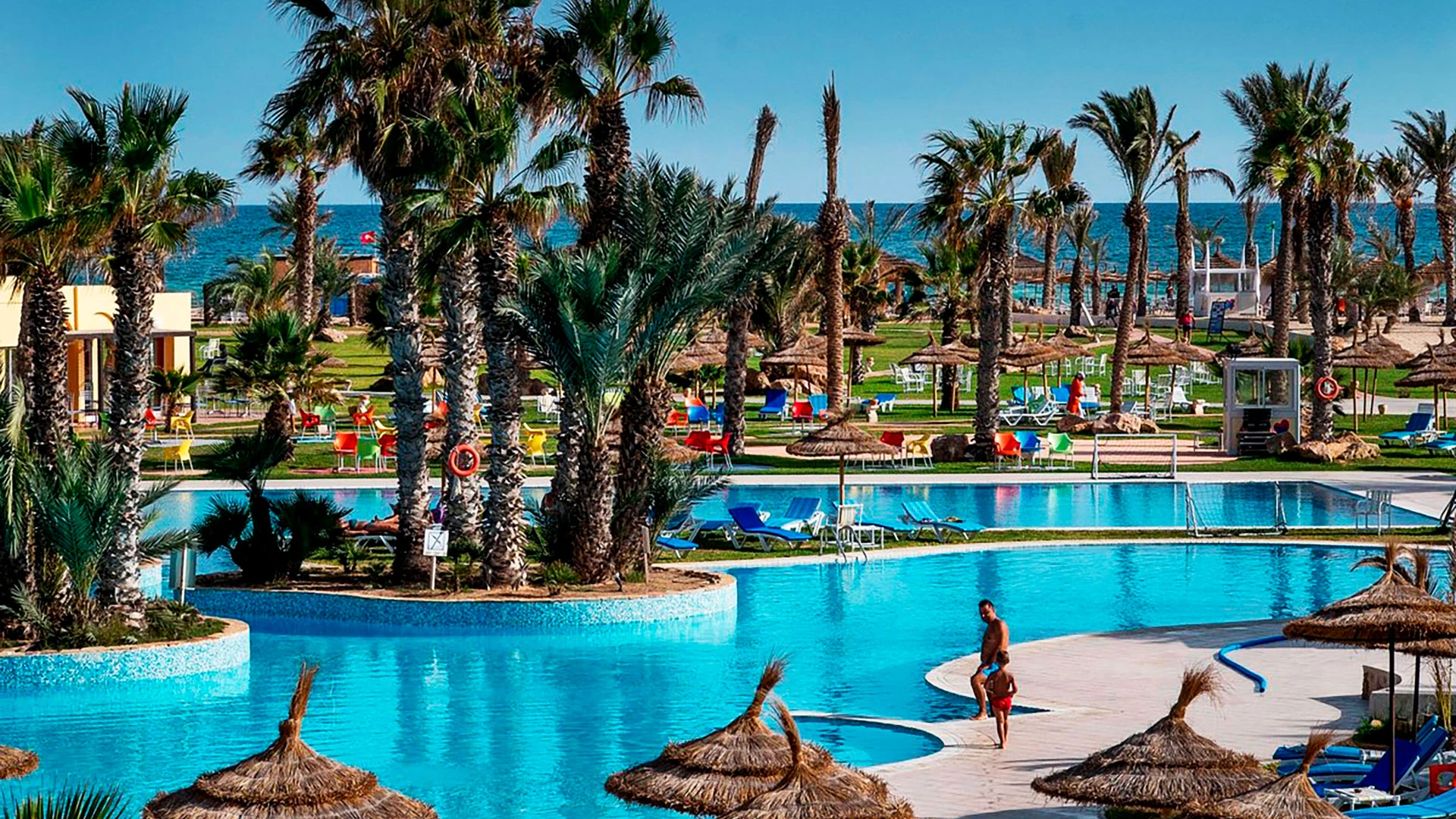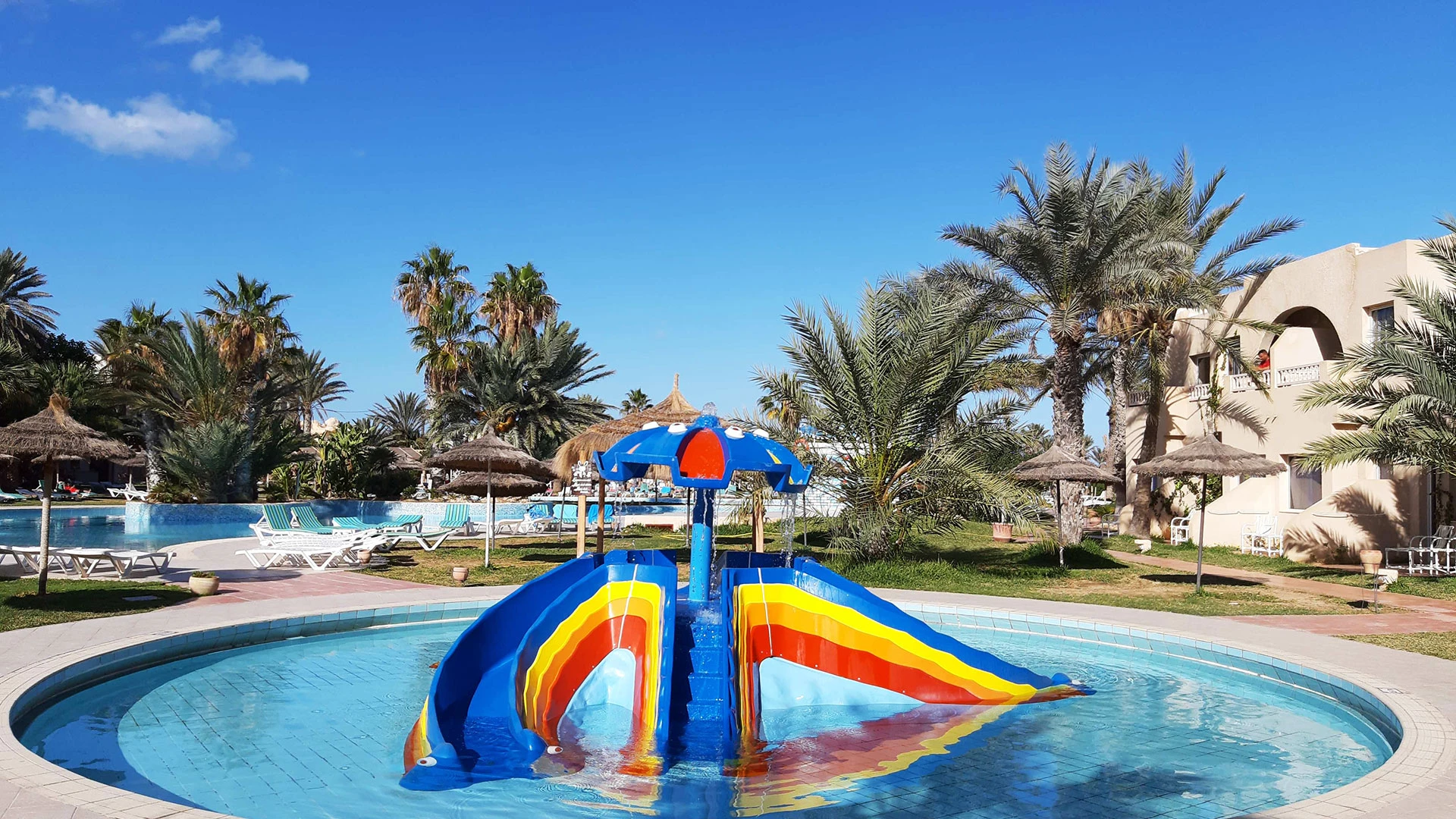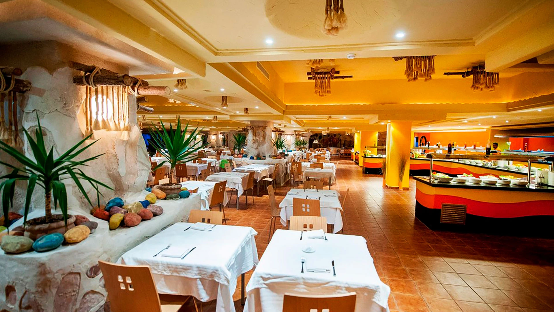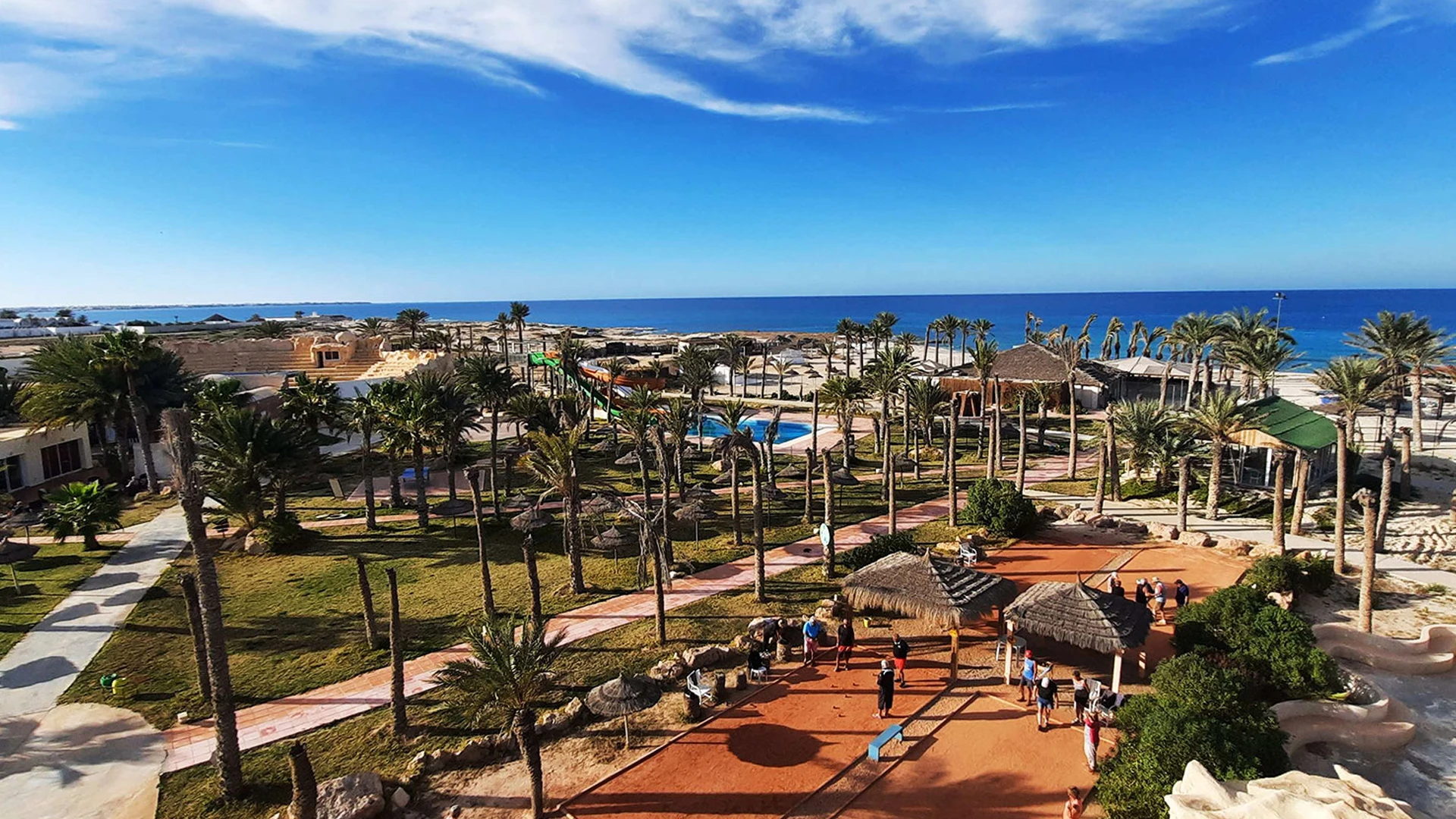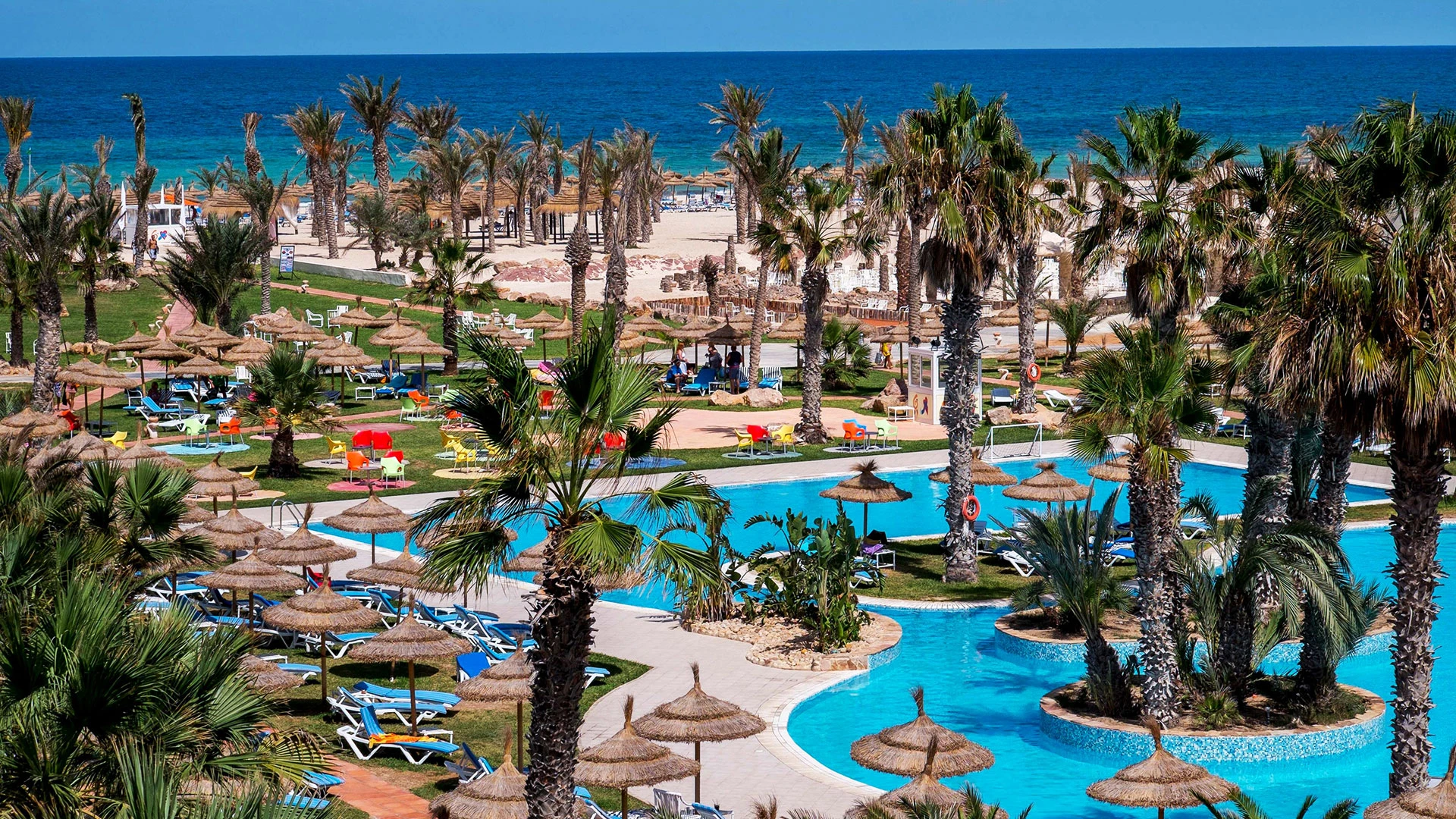 Основен ресторант, 2 а-ла-карт ресторанта (тунизийски и марокански – срещу заплащане/с предварителна резервация, съгласно концепцията на хотела/1 безплатно посещение на 1 от ресторантите при минимум 7 нощувки), 3 бара, мавританско кафене (срещу заплащане), открит басейн, 3 водни пързалки, закрит басейн (от 01.11 до 31.03), закрит басейн с морска вода в Таласо центъра (срещу заплащане), 2 конферентни зали и заседателна зала, магазин, обмяна на валута, денонощна рецепция, Таласо център.
