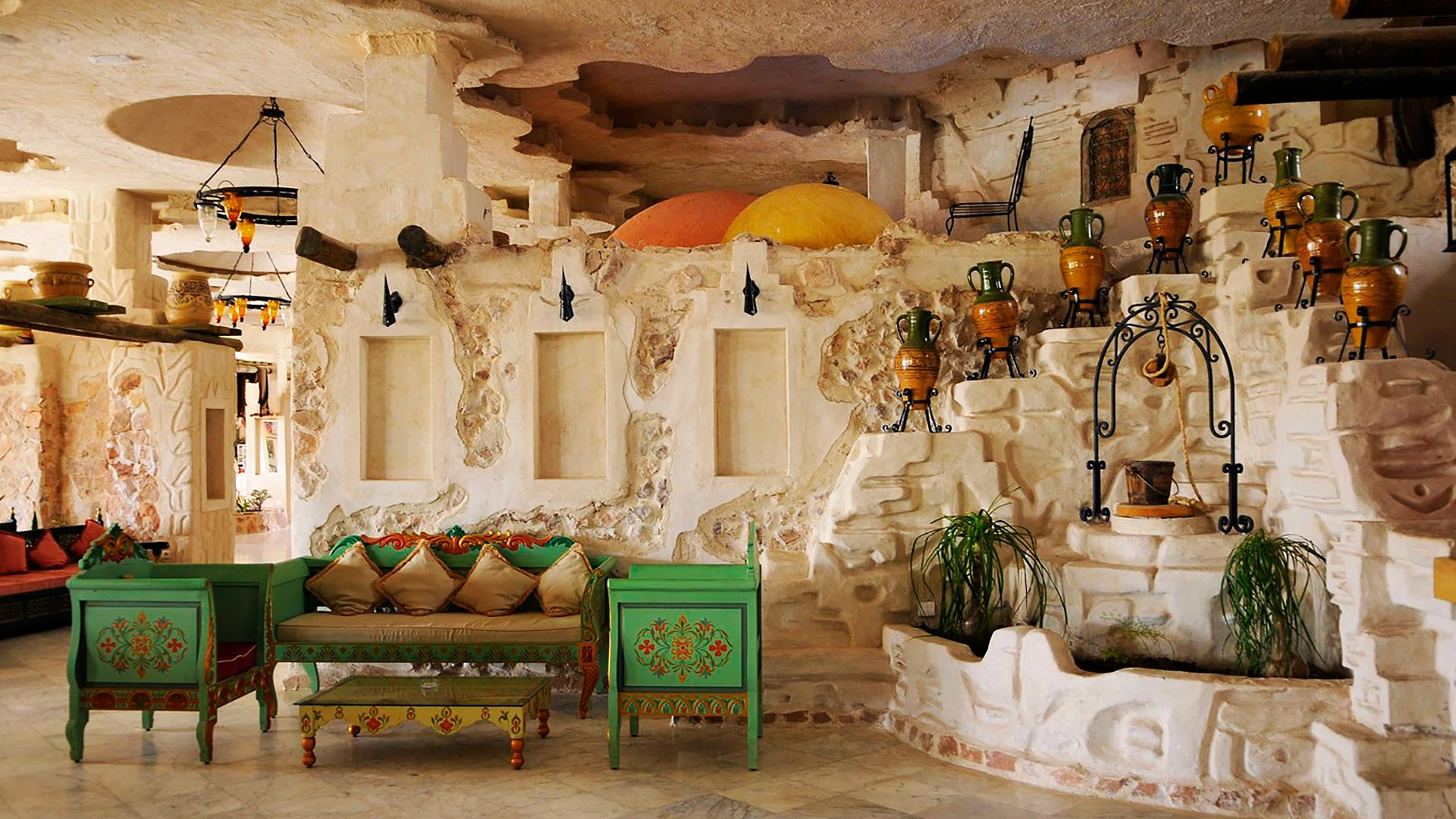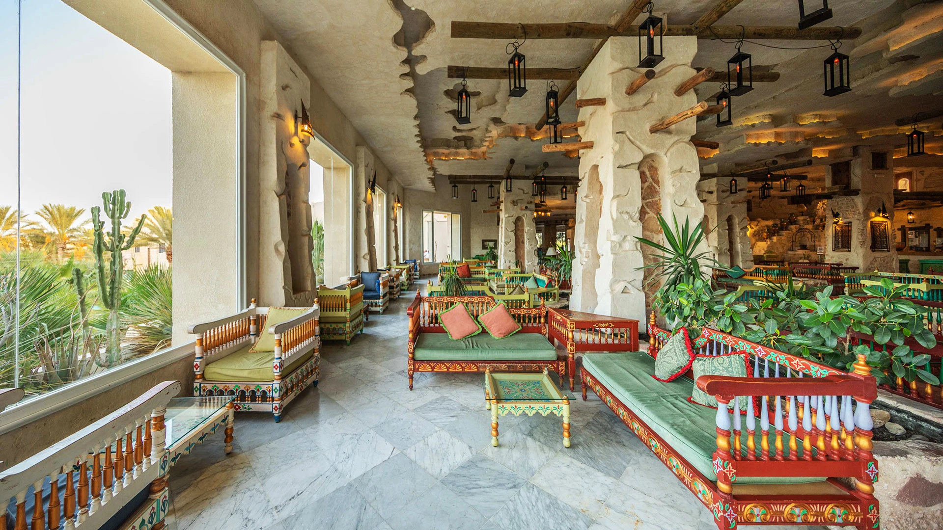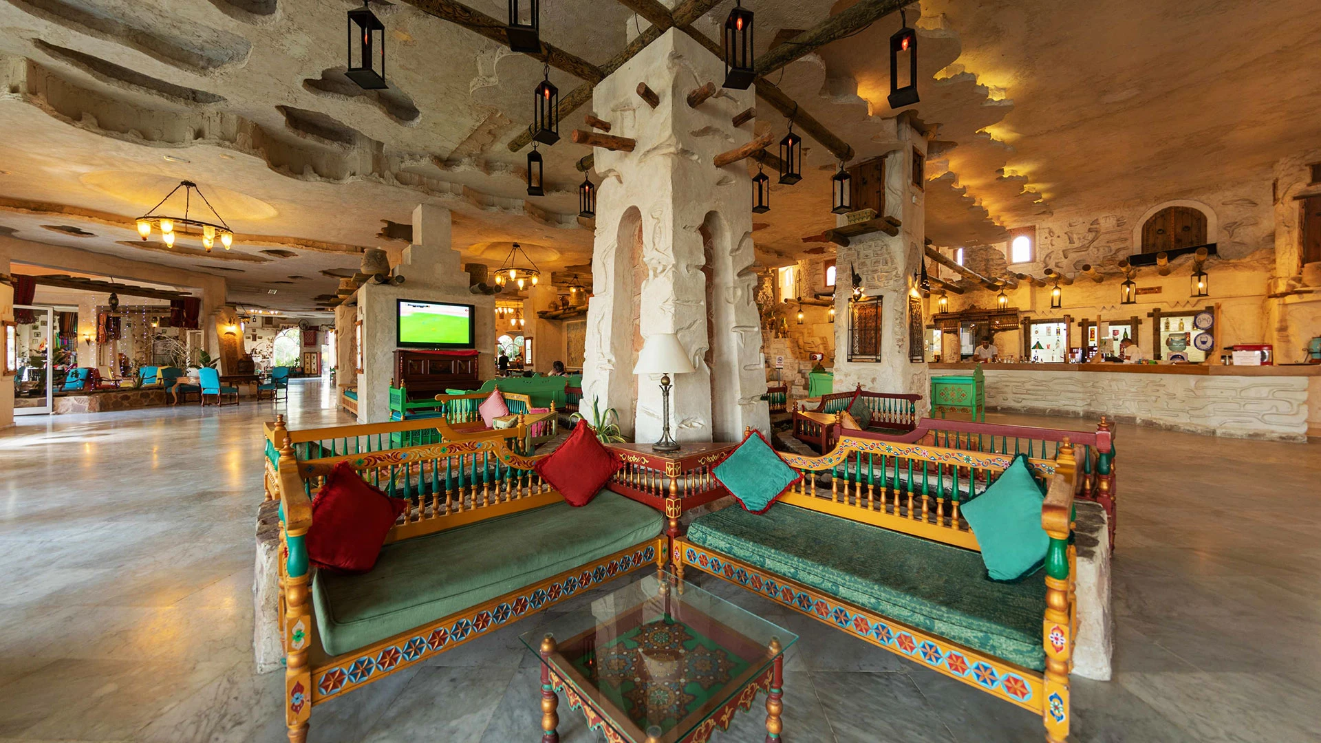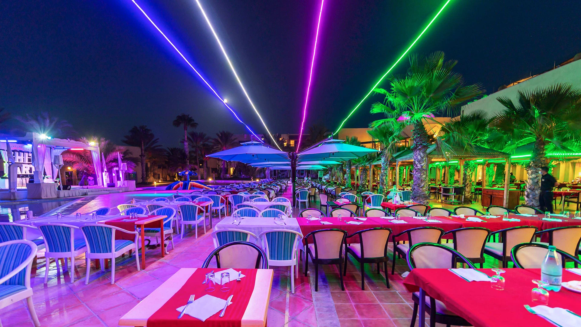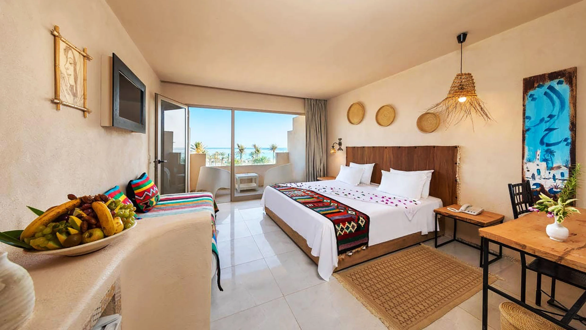Основен ресторант, 2 а-ла-карт ресторанта (тунизийски и марокански – срещу заплащане/с предварителна резервация, съгласно концепцията на хотела/1 безплатно посещение на 1 от ресторантите при минимум 7 нощувки), 3 бара, мавританско кафене (срещу заплащане), открит басейн, 3 водни пързалки, закрит басейн (от 01.11 до 31.03), закрит басейн с морска вода в Таласо центъра (срещу заплащане), 2 конферентни зали и заседателна зала, магазин, обмяна на валута, денонощна рецепция, Таласо център.