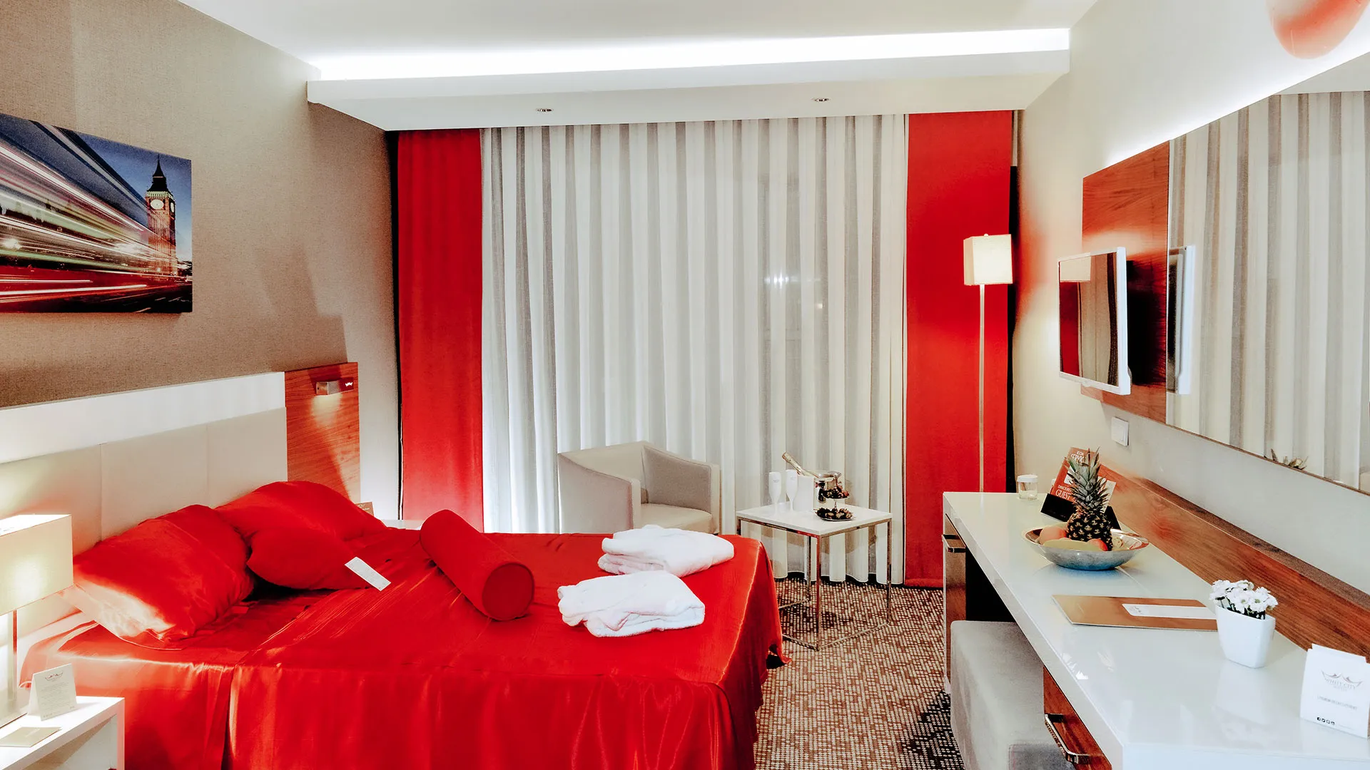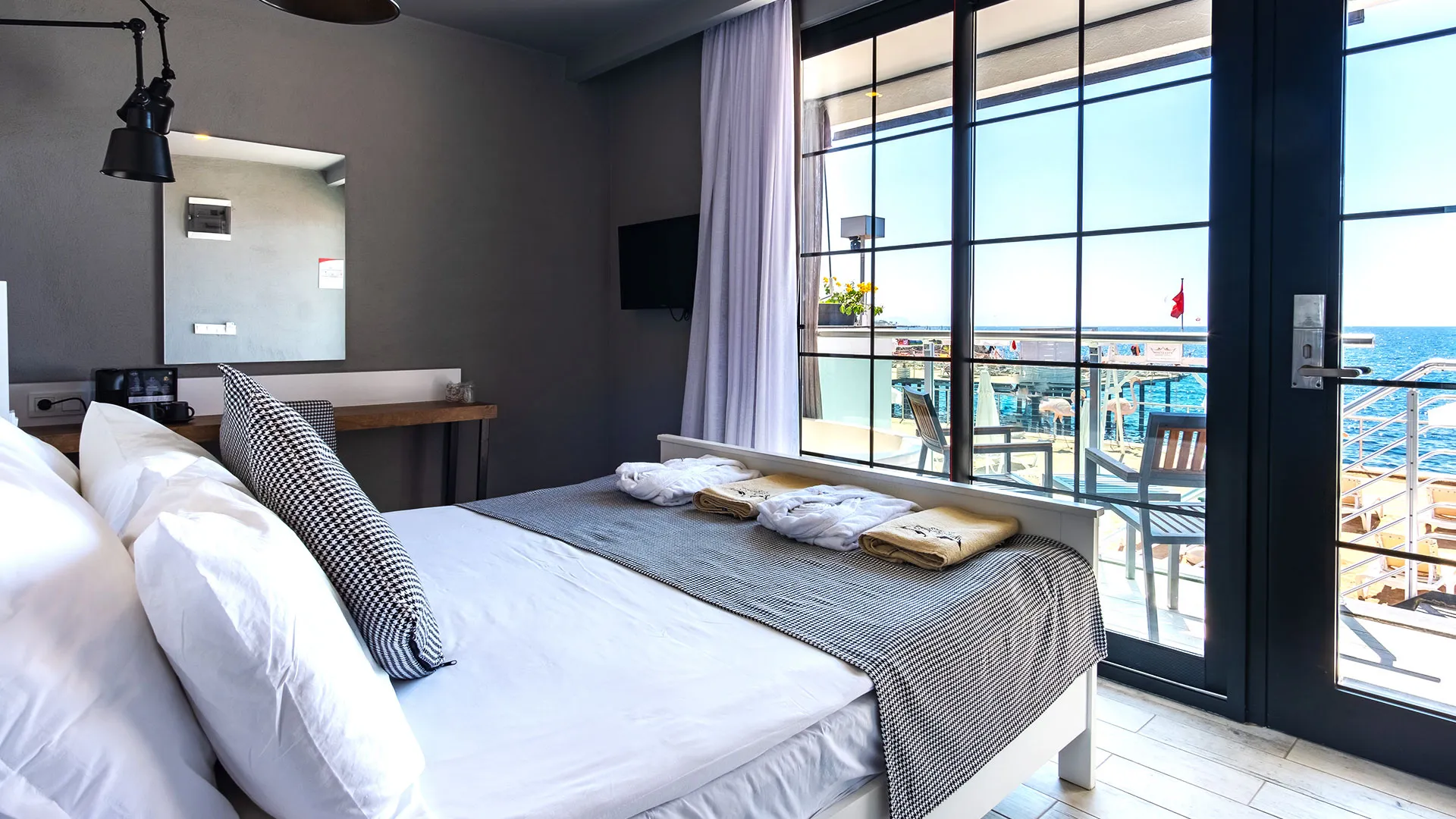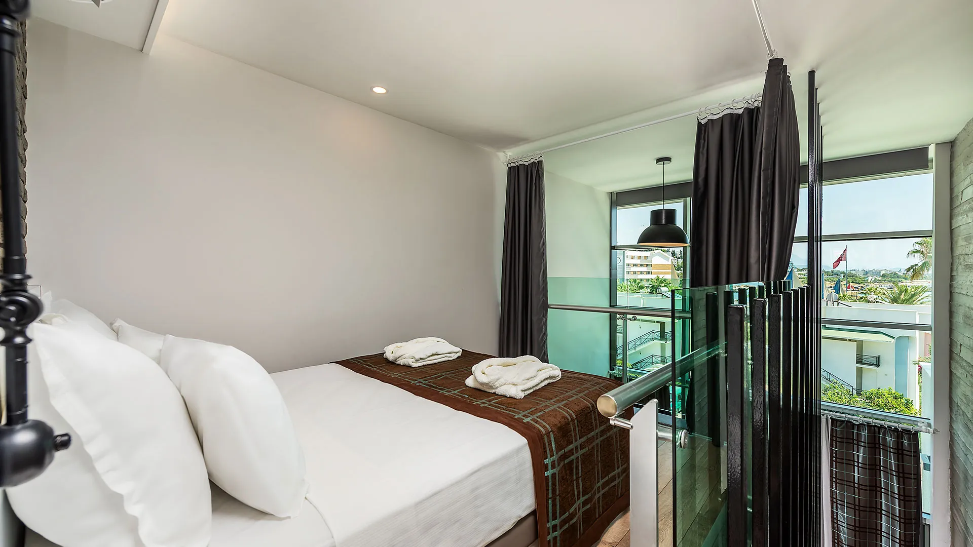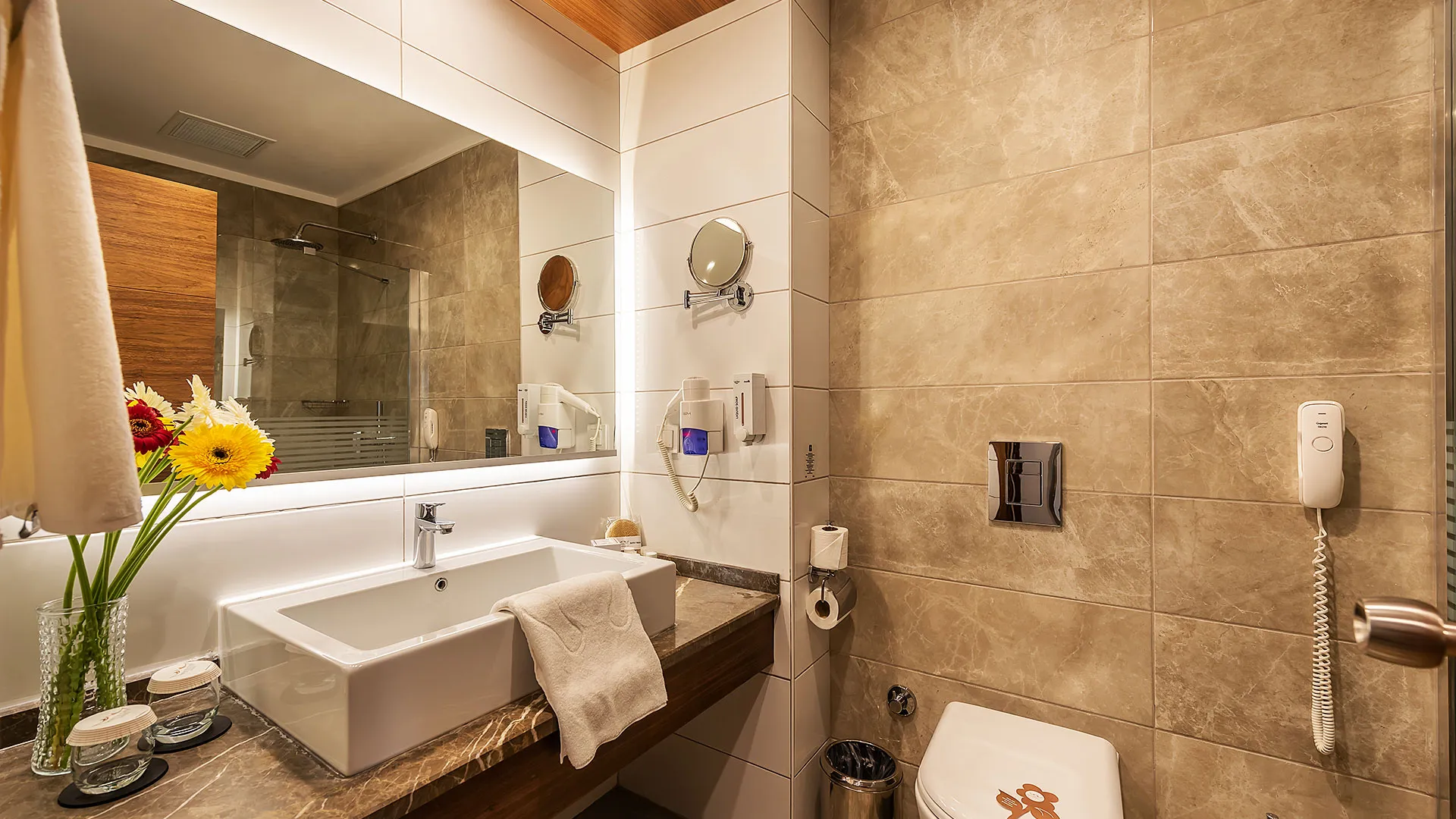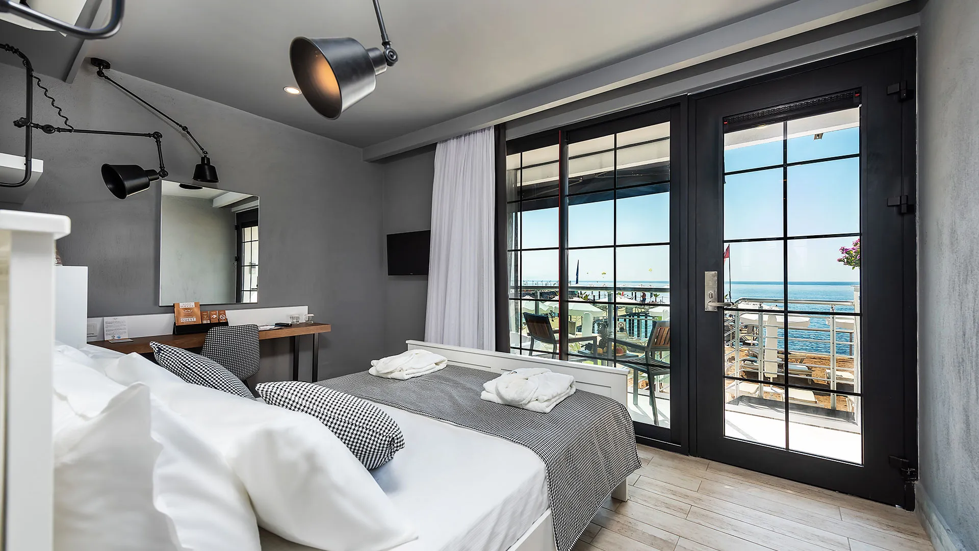 Всички стаи са с уютно обзавеждане и разполагат със сателитна телевизия, централен климатик и подово покритие от мек мокет. Освен това, всяка стая разполага с балкон, от който се открива прекрасна гледка.