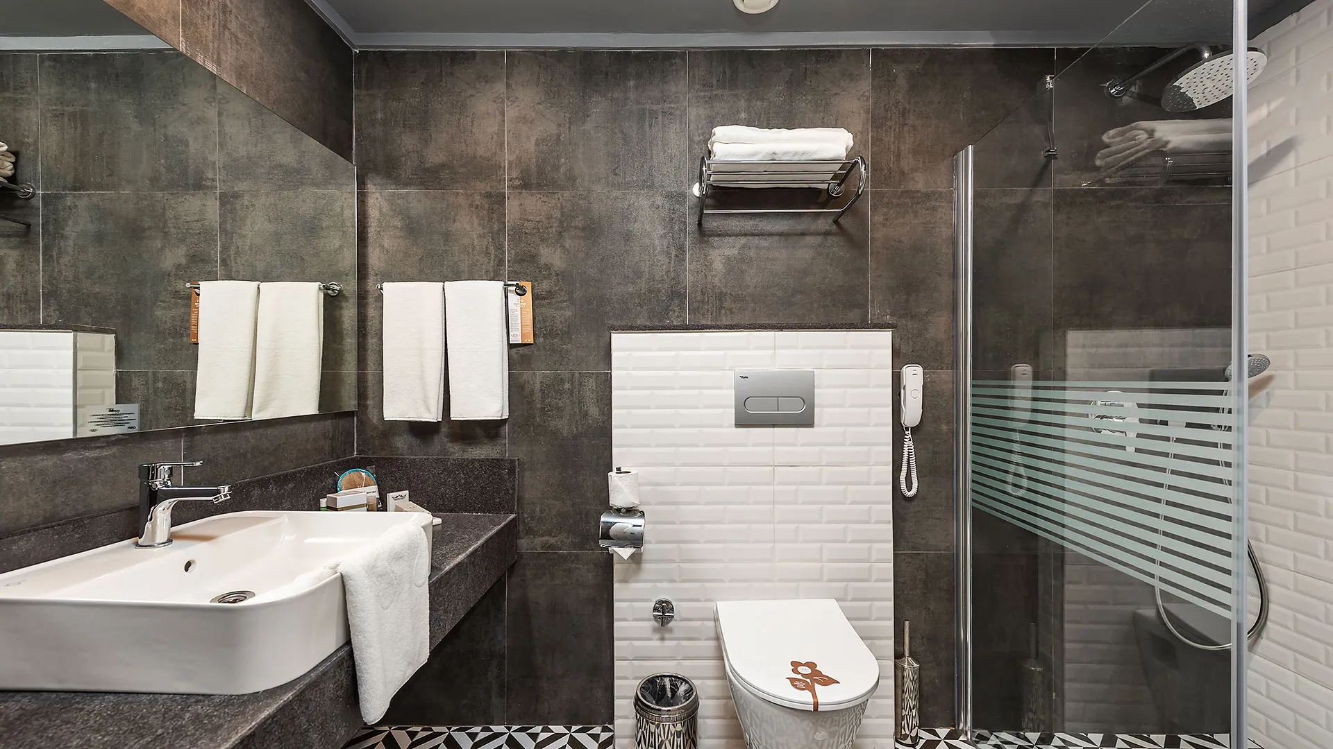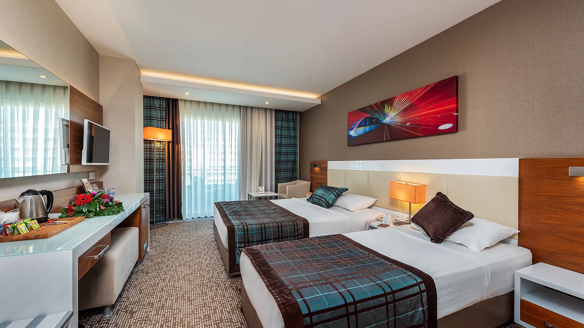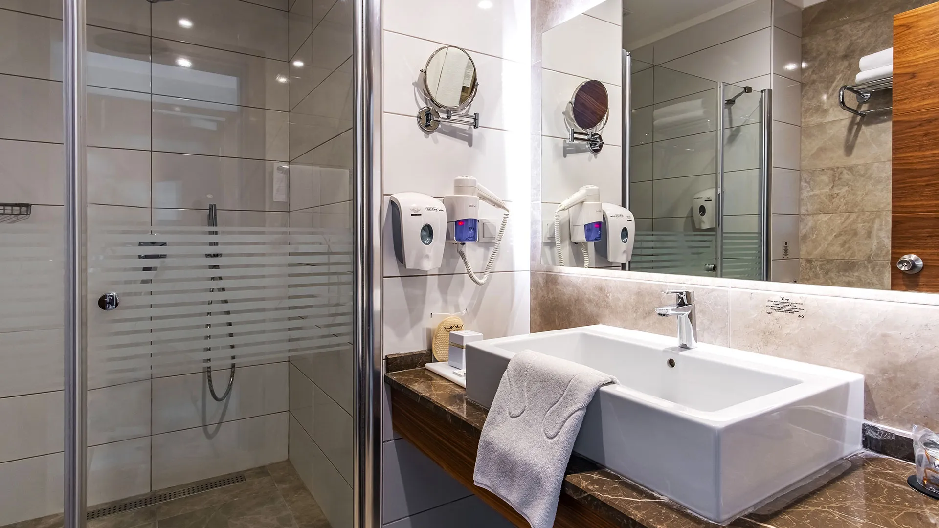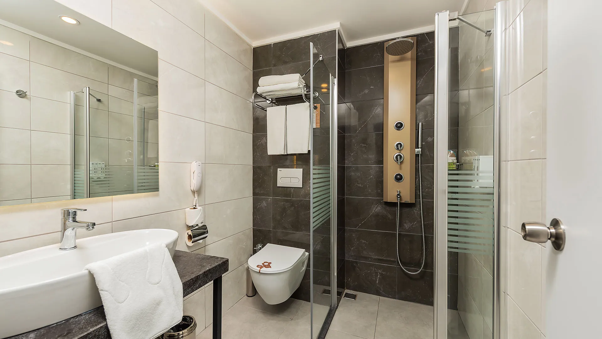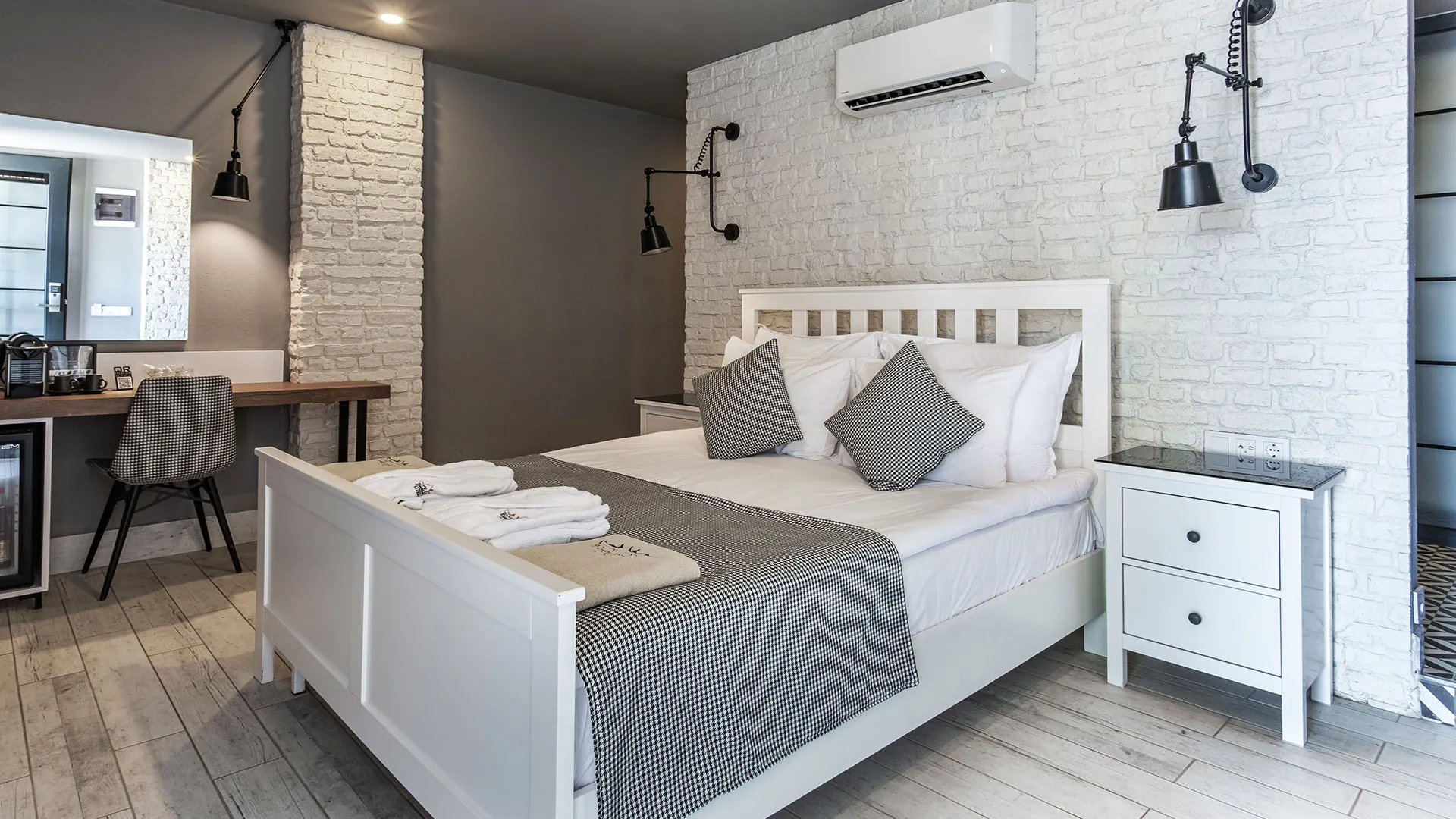 Всички стаи са с уютно обзавеждане и разполагат със сателитна телевизия, централен климатик и подово покритие от мек мокет. Освен това, всяка стая разполага с балкон, от който се открива прекрасна гледка.
