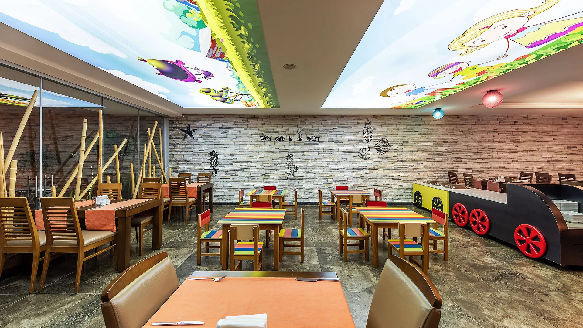 Храната в хотела е на база на All Inclusive концепция, която включва разнообразни ястия на блок маса и неограничена консумация на напитки.