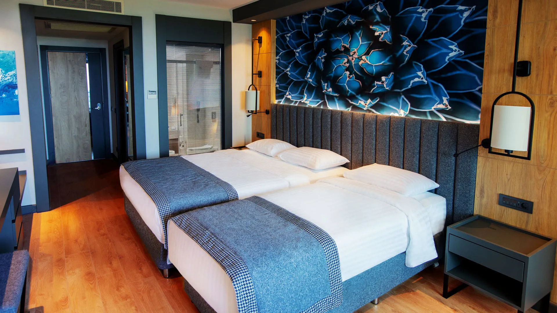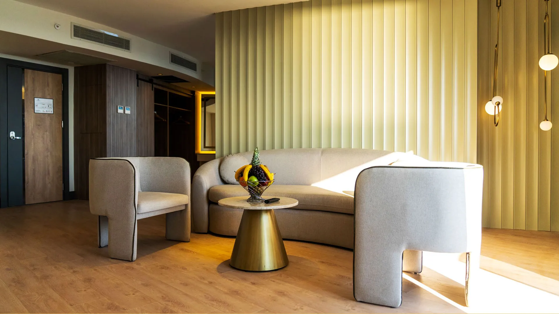 Хотелът предлага разнообразни възможности за развлечение и отдих, включително просторни и красиво декорирани стаи и суити, оборудвани с всичко необходимо за удобство и уют. Всяка стая разполага с модерни удобства и изглед към морето или градината, което придава допълнителен шарм на престоя.