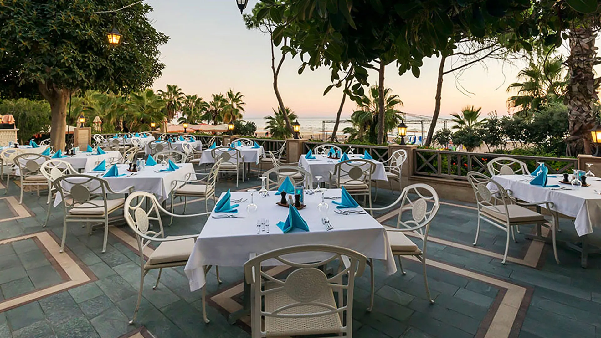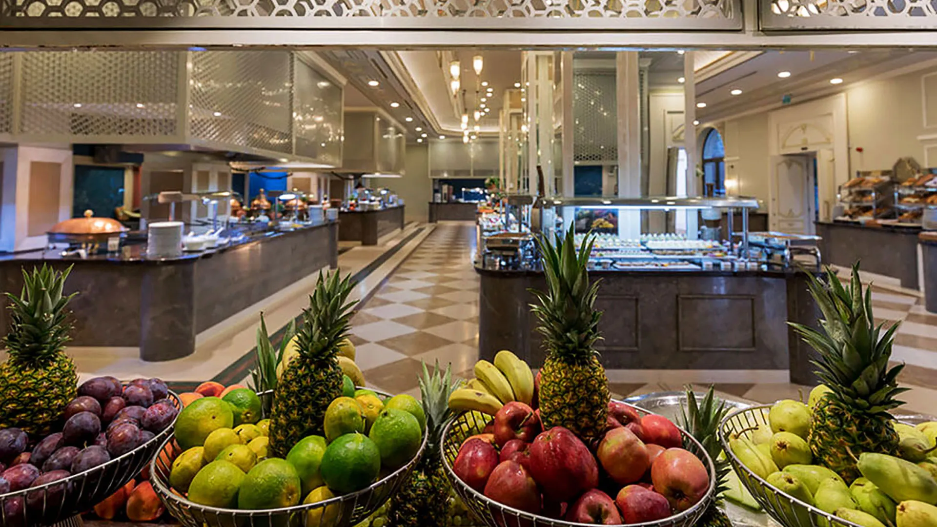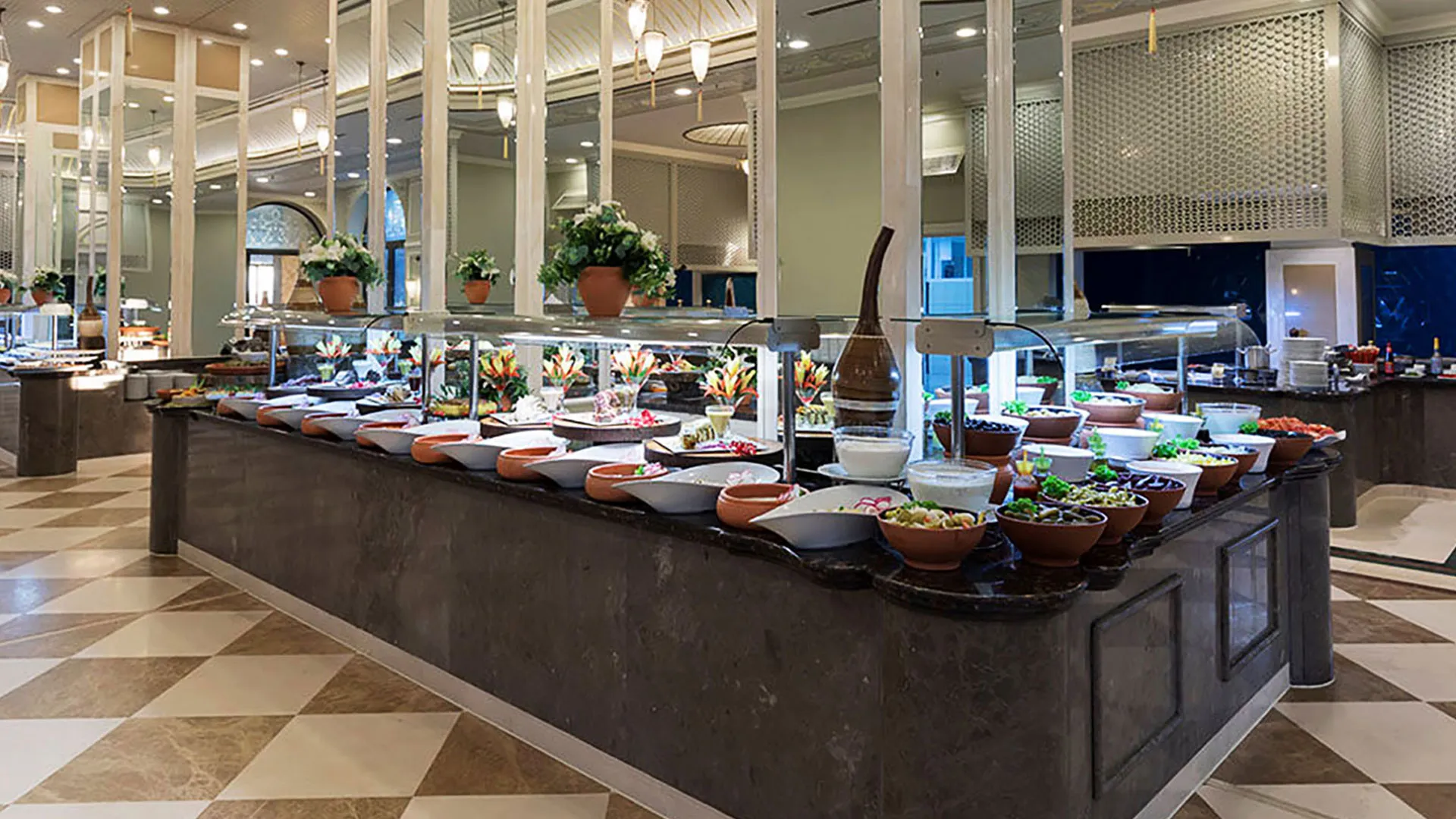 Ресторантите на комплекса сервират пресни морски дарове и турски специалитети. В комплекса има 5 бара и кафене, където се предлагат традиционни сладкиши.