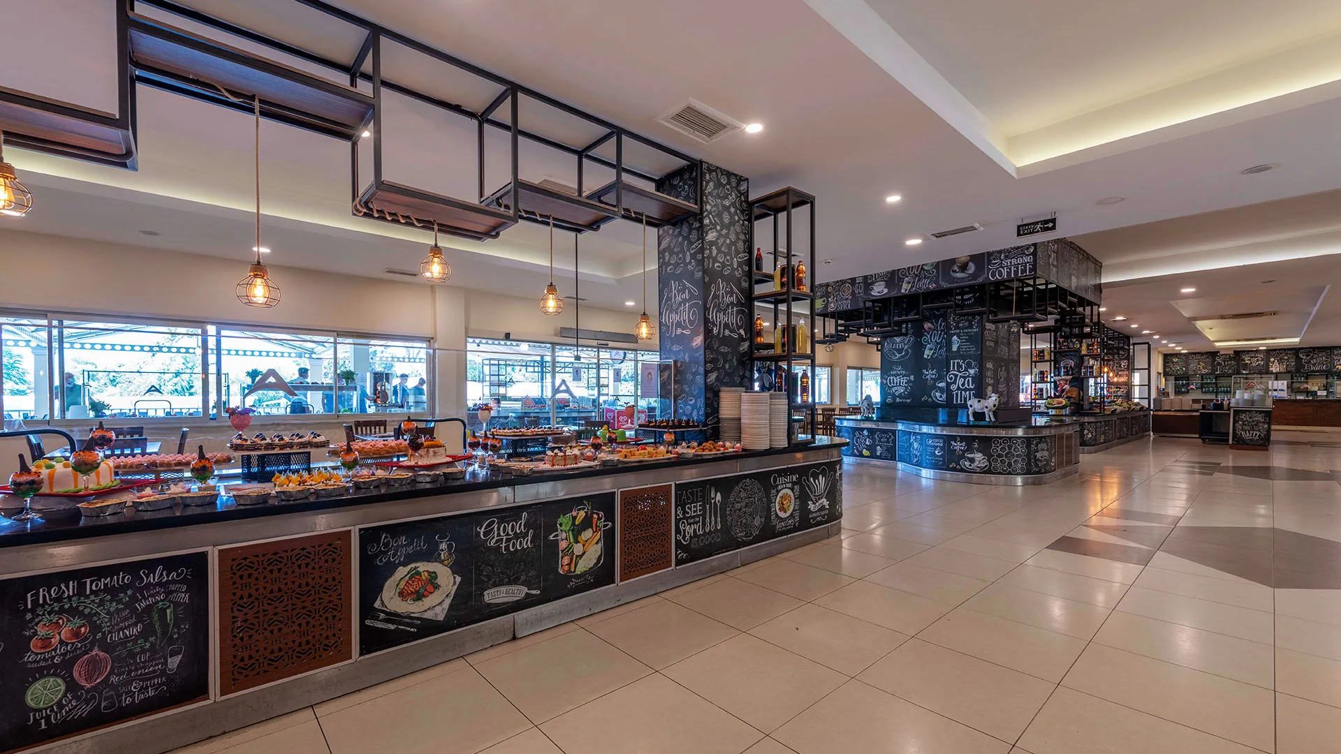 Заведения: основен ресторант (шведска маса), снек бар, барове – лоби бар, бар край басейна, бар на плажа.