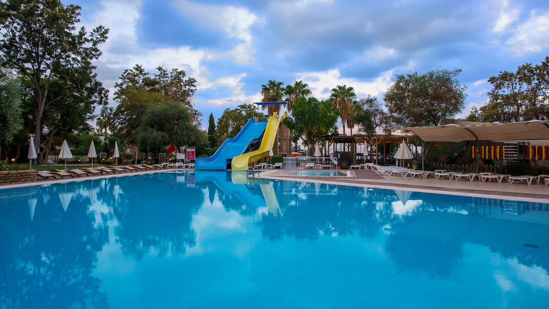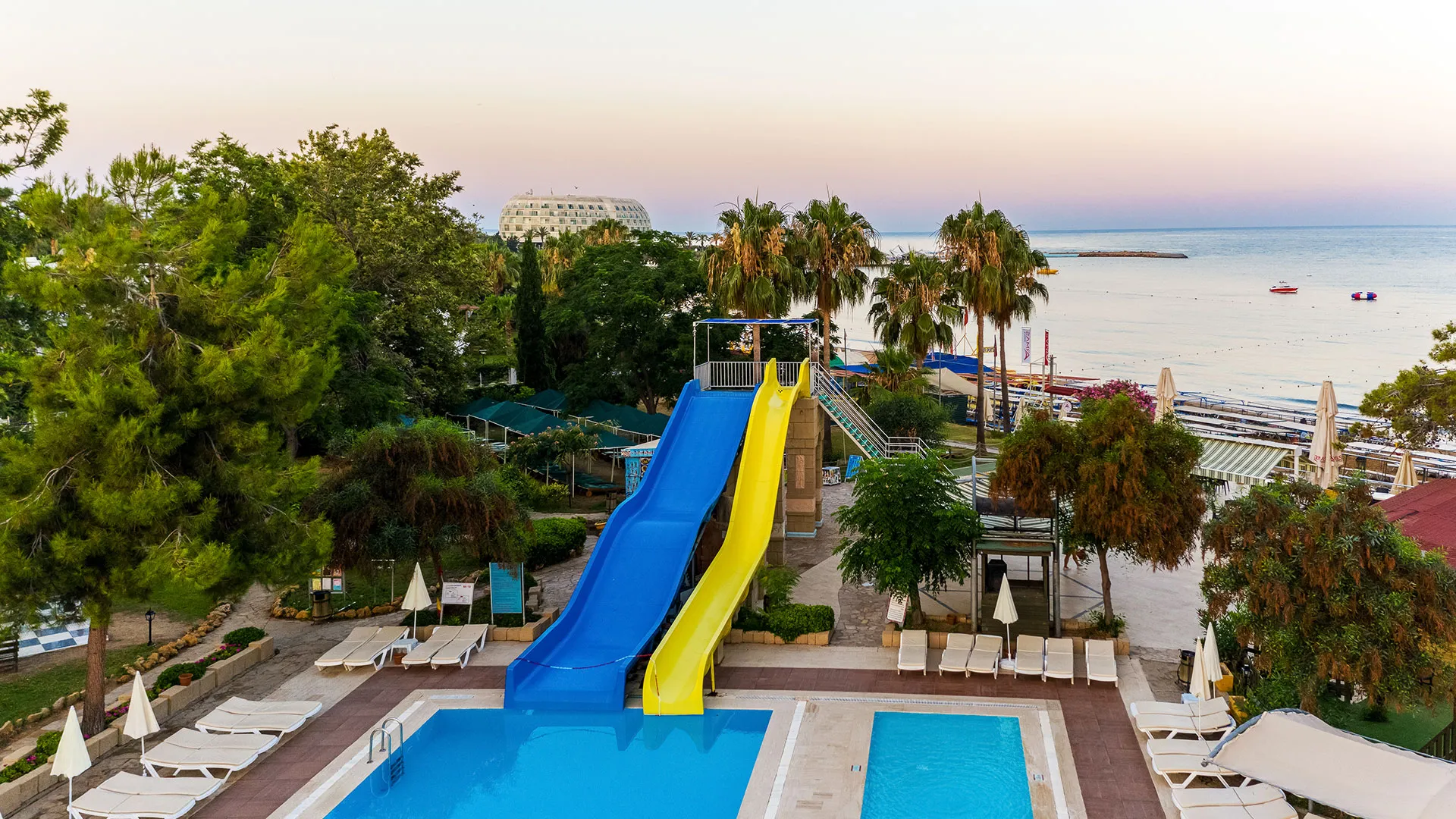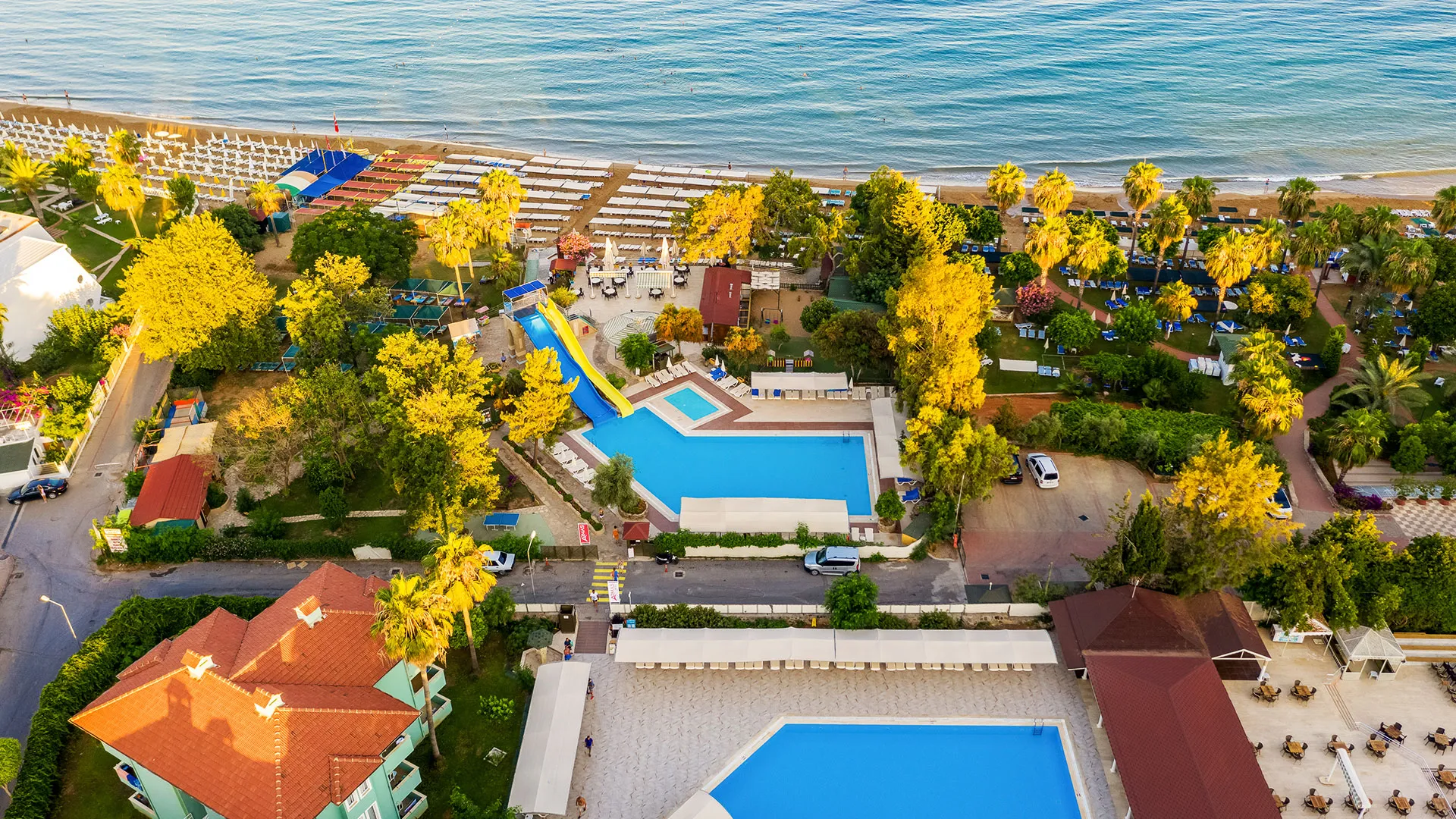 Местоположение: хотелът се намира в селището Türkler, южна Турция, на 22 км от град Алания и около 90–100 км от летище Анталия.