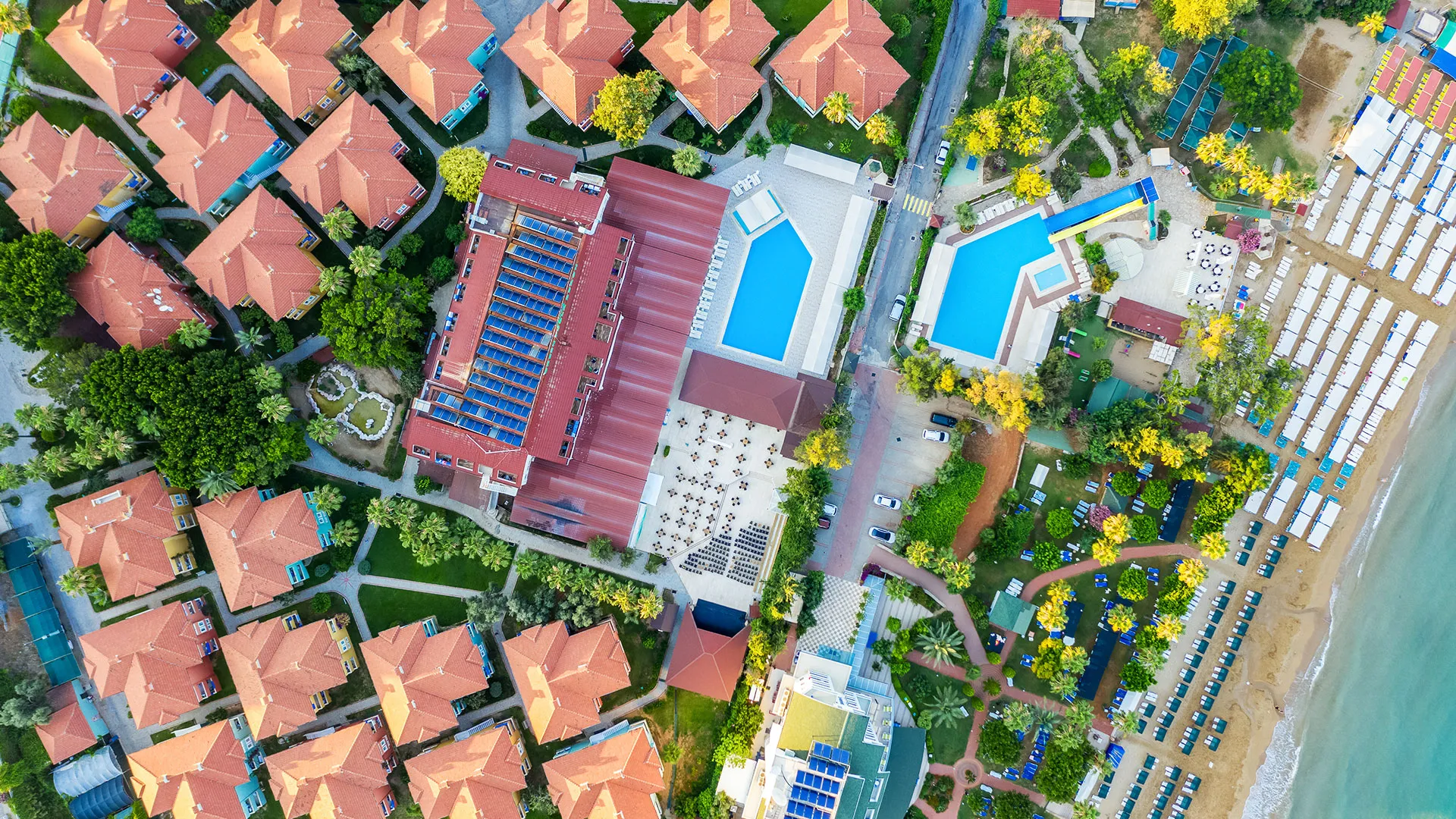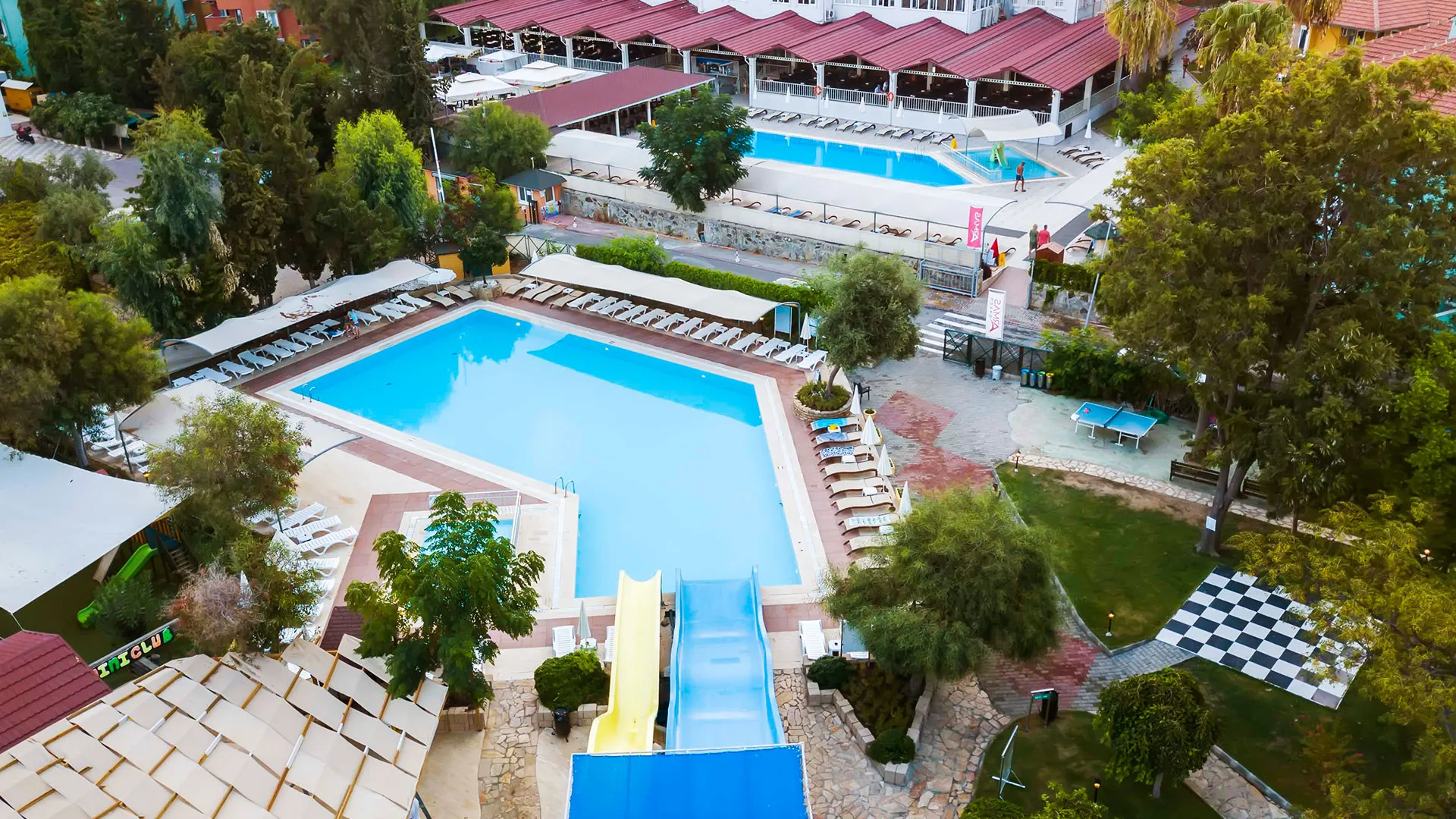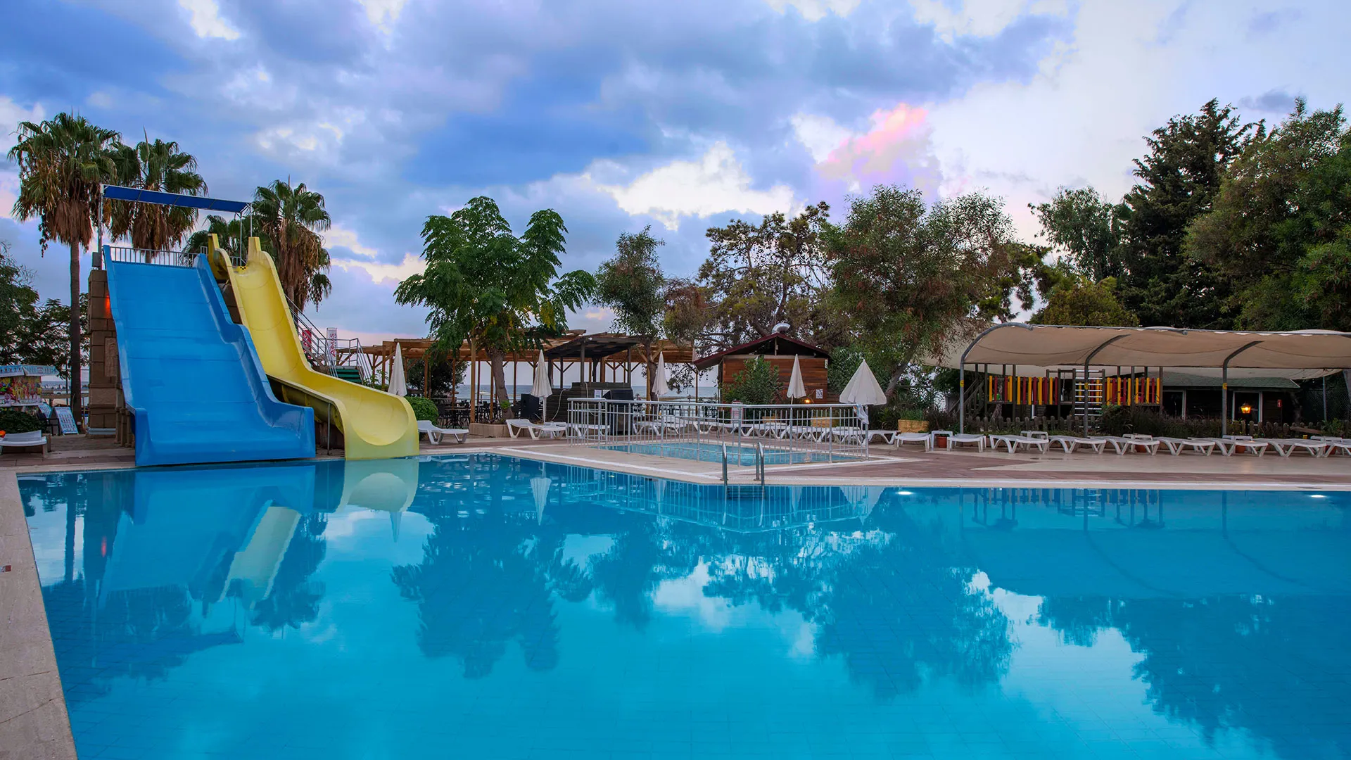 Местоположение: хотелът се намира в селището Türkler, южна Турция, на 22 км от град Алания и около 90–100 км от летище Анталия.