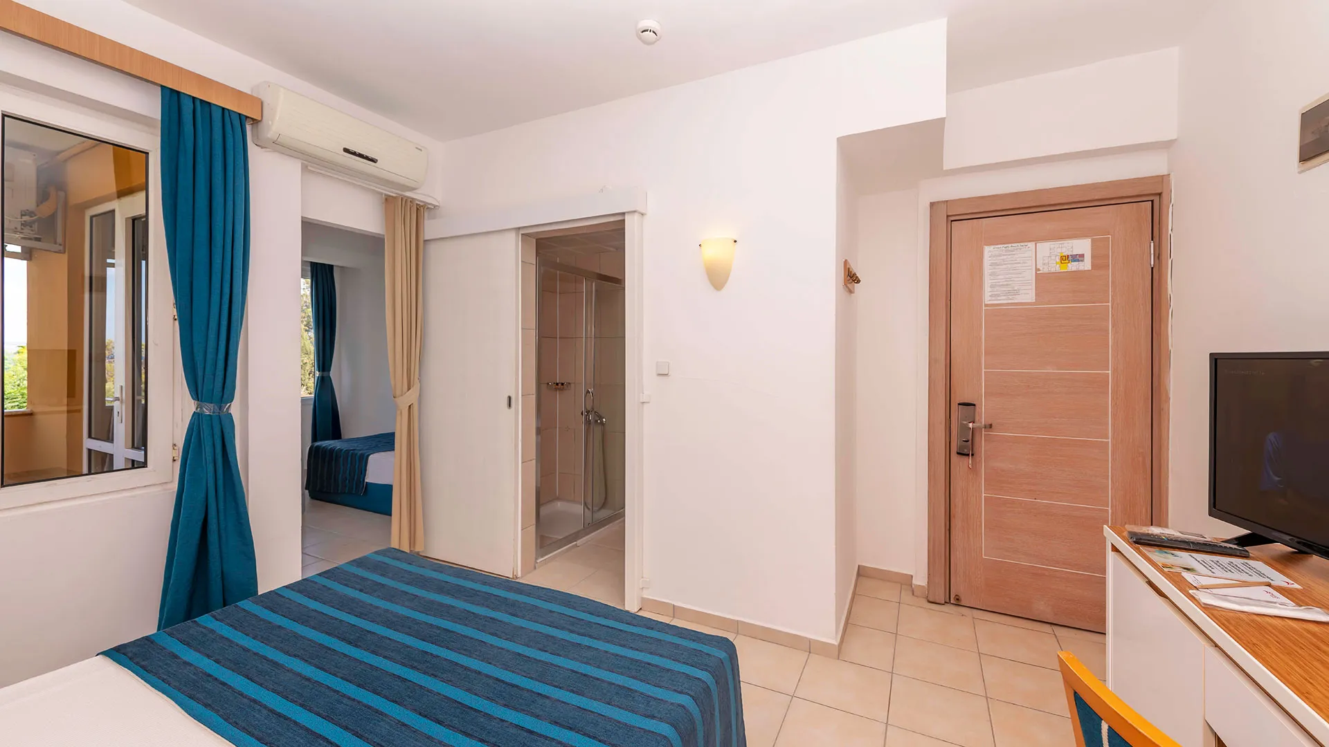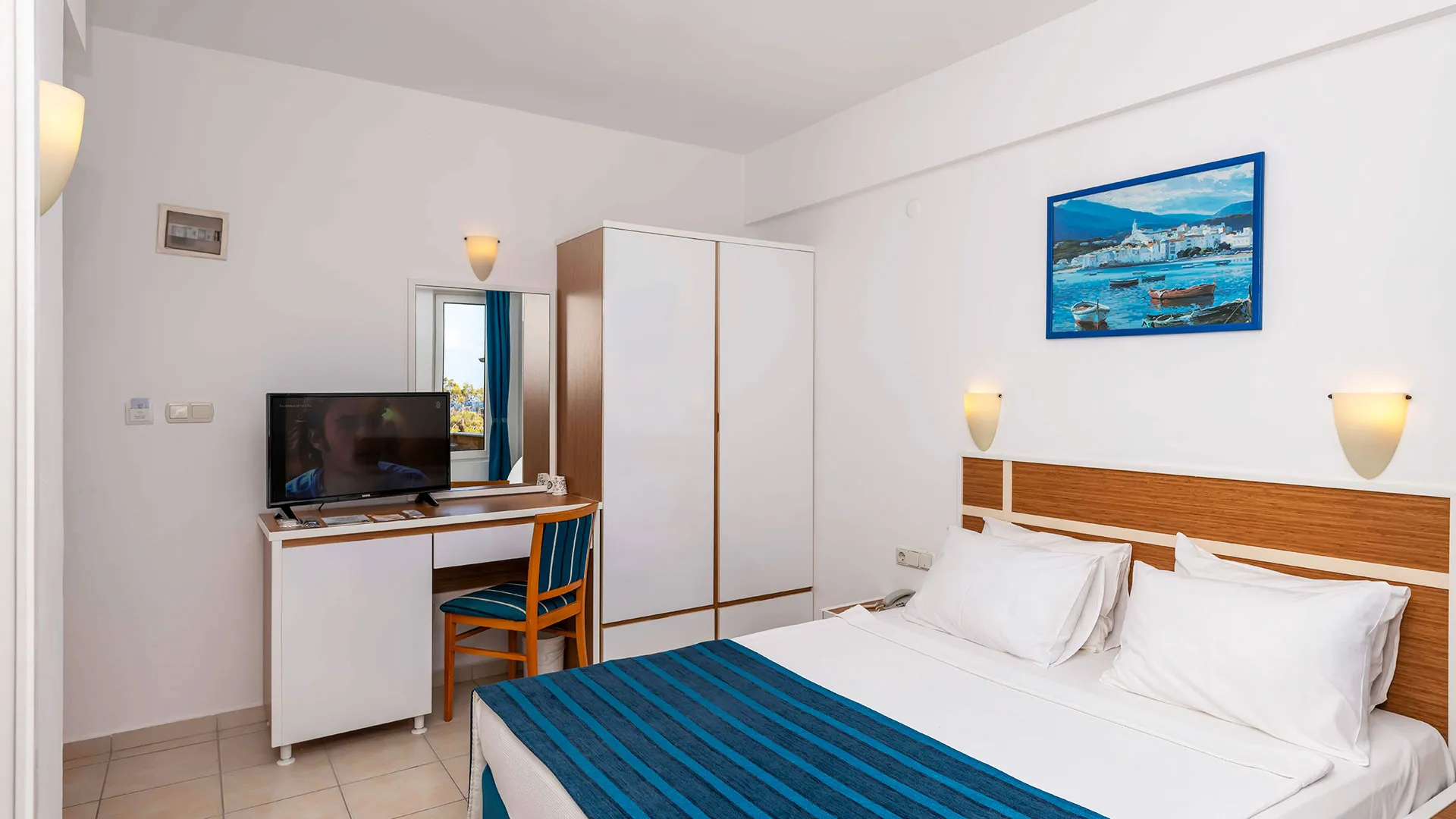 Оборудване в стаите: климатик, телевизор с музикални/детски канали, минибар (напълнен при пристигане с безалкохолни напитки), сейф (платен според някои източници), телефон, балкон, баня с душ или вана.