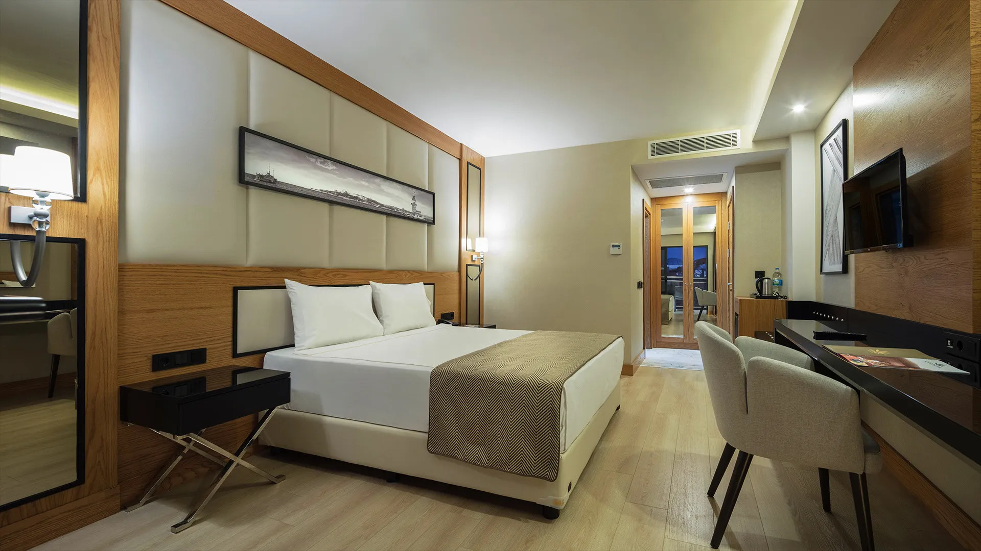Стайте в Aydinbey Queen’s Palace & SPA са уютни и климатизирани, обзаведени с елегантно бюро, удобна електрическа кана, добре зареден минибар и сейф за вашите ценности. Телевизорите с плосък екран, балконите с изглед към природата и просторните самостоятелни бани с душ ще допринесат за вашето удобство. Всяка стая е внимателно обзаведена с чиста спалня и пухкави кърпи, за да ви осигури най-доброто престой.