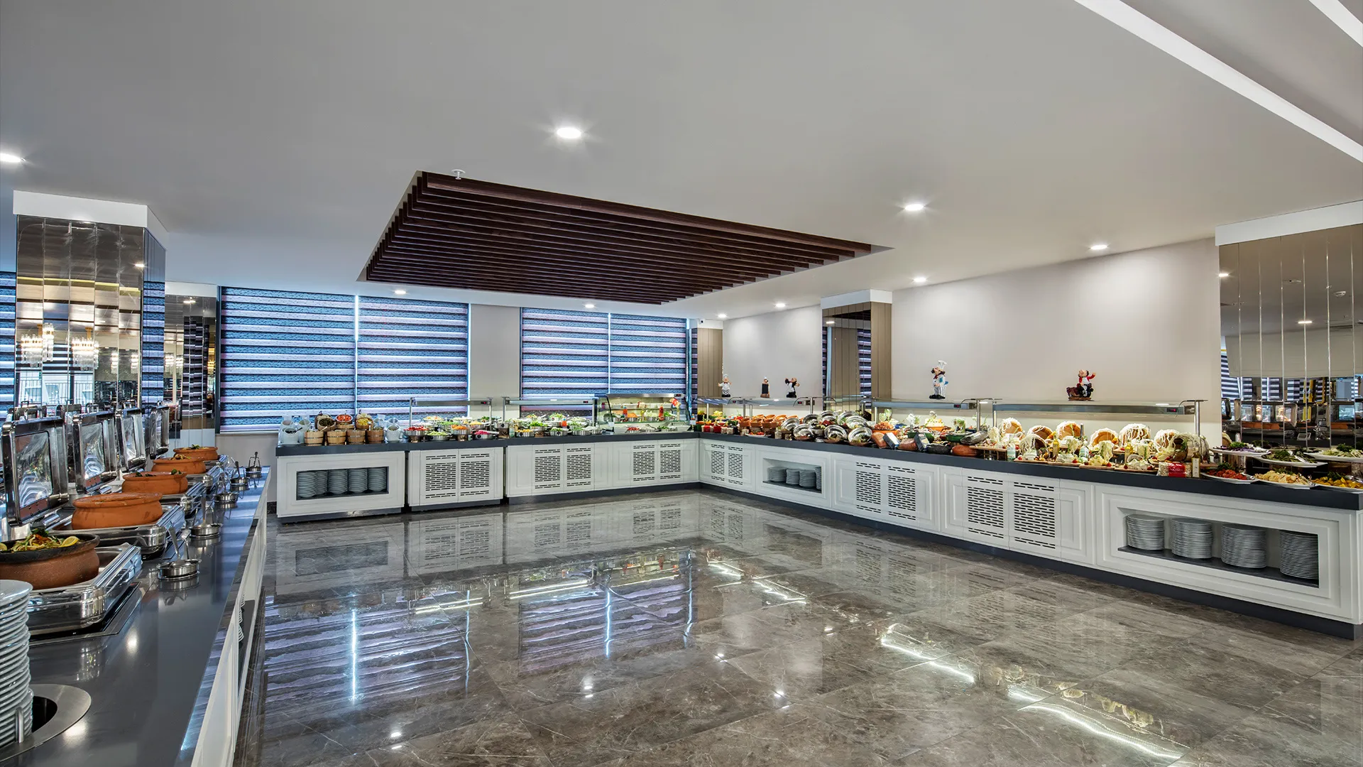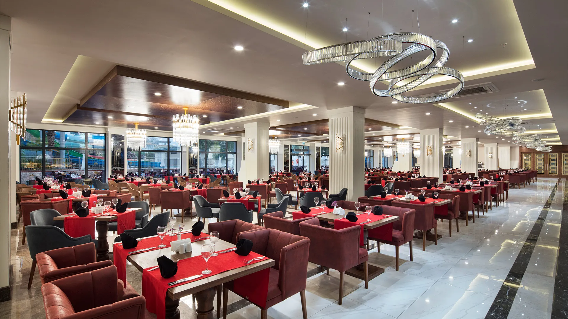 Всяка сутрин започнете с изобилие, наслаждавайки се на разнообразния шведски бюфет за закуска. Ресторантът на Aydinbey Queen’s Palace & SPA ви изкушава с богатство от вкусове - от италианска до средиземноморска и морска кухня. За вашето удоволствие се предлагат специални диетични менюта, включително вегетариански, халал и безглутенови ястия, за да задоволят всеки вкус и изискване.