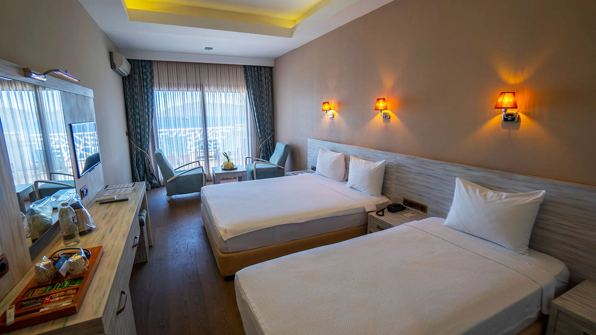 Стайте в хотела са оборудвани с климатик и сателитна телевизия.