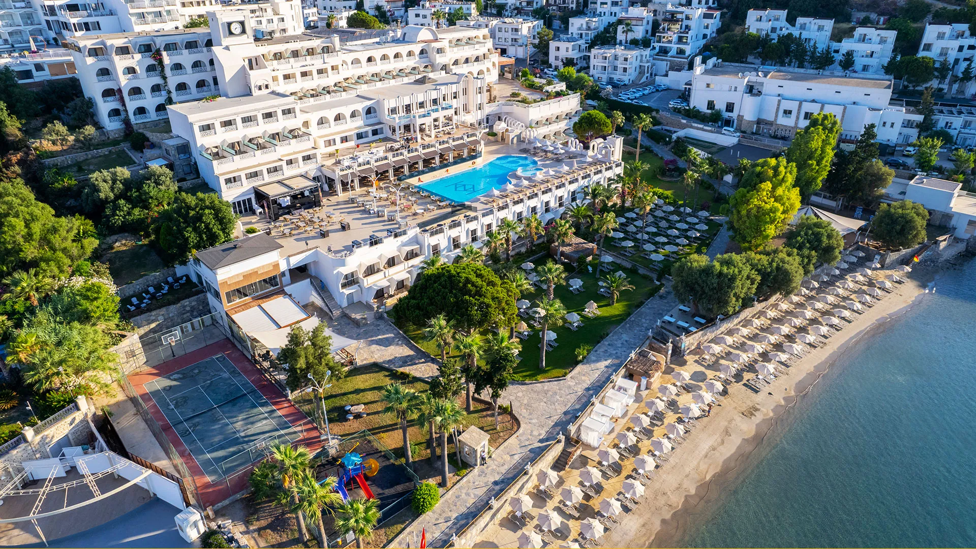 Хотел Azka се намира на изключително привлекателно място, като разполага със свой собствен пясъчен плаж в прекрасния залив Бардакчи, предлагайки шезлонги и чадъри за удобство на гостите. Всяка стая притежава собствен балкон, предоставящ изглед към морето или към чаровните градини на хотела. Гостите могат да се възползват от безплатен WiFi и наличие на собствен паркинг на място.