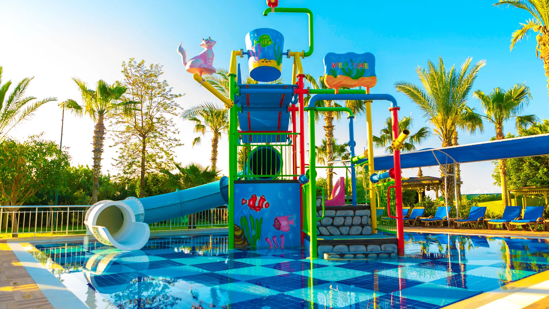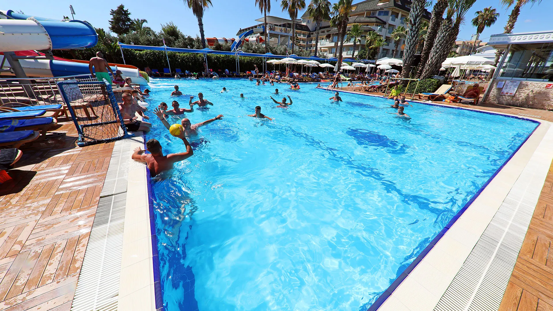 Хотелът разполага с голям външен басейн с шезлонги и чадъри, където гостите могат да се насладят на слънцето и да се освежат през горещите летни дни. За по-активните почиващи има фитнес зала и разнообразни спортни дейности, включително волейбол на плажа и тенис на корт.