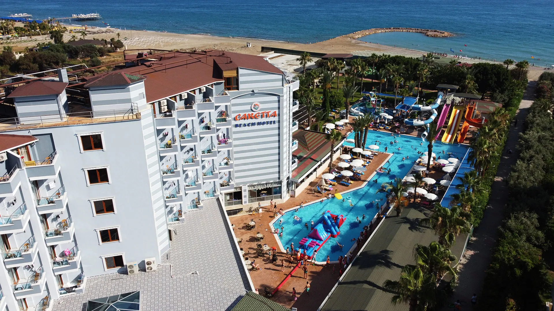 Caretta Beach Hotel се намира в курортния град Алания, разположен на брега на Черно море в Турция. Хотелът предлага уют и комфорт в живописна морска обстановка, където гостите могат да се насладят на перфектна комбинация от разнообразни удобства и максимална релаксация. Помещенията за настаняване са просторни и стилно обзаведени, с модерни удобства и балкони, от които се открива невероятна гледка към морето или градината.