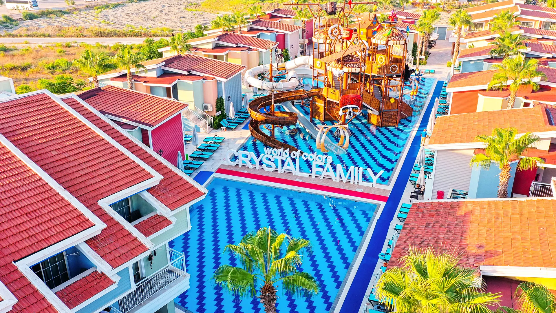 Добре дошли в Crystal Club World of Colours, единственият в своя род хотелски комплекс, разположен в сърцето на Белек, в непосредствена близост от вълшебния тематичен парк The Land of Legends.