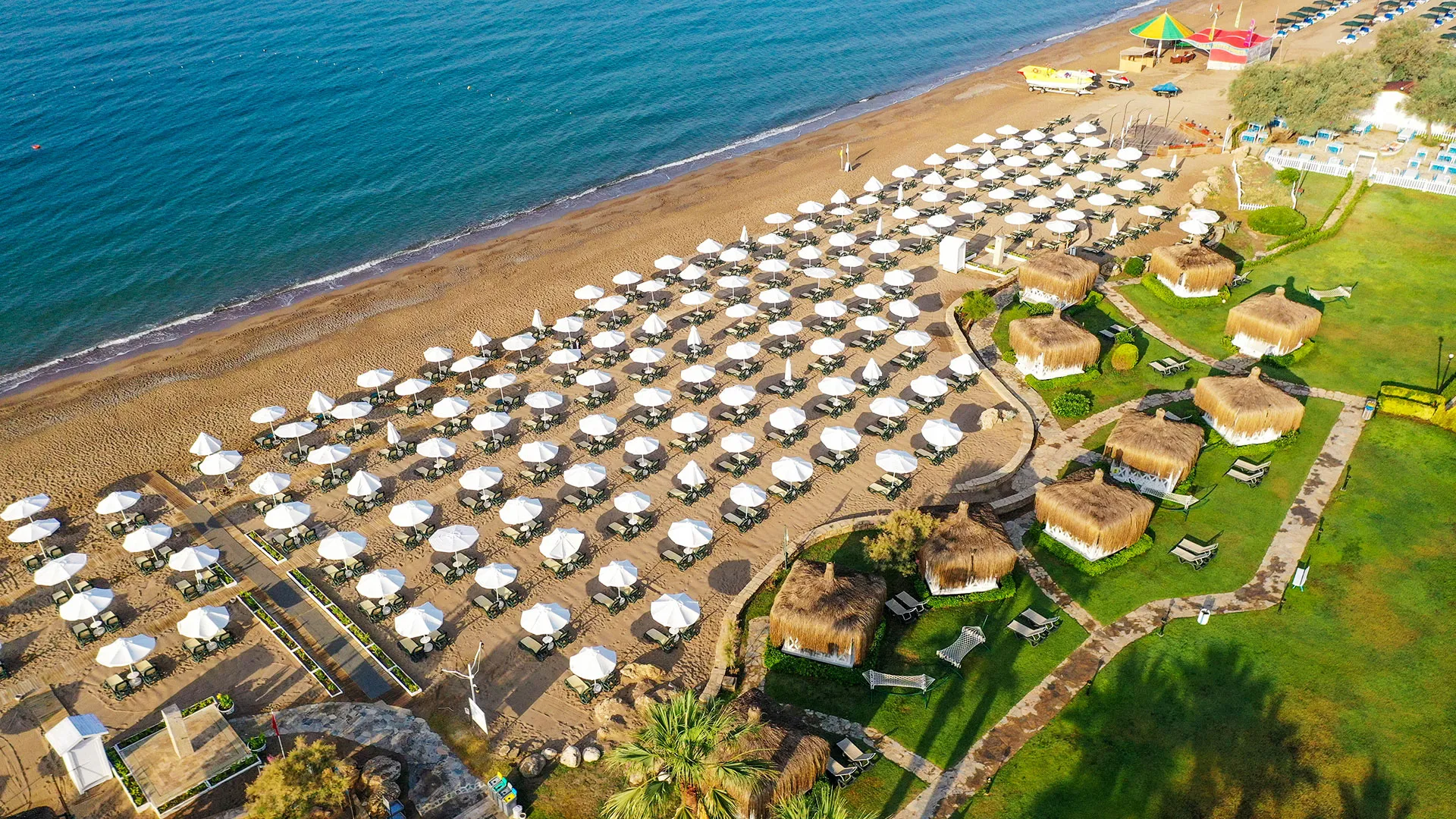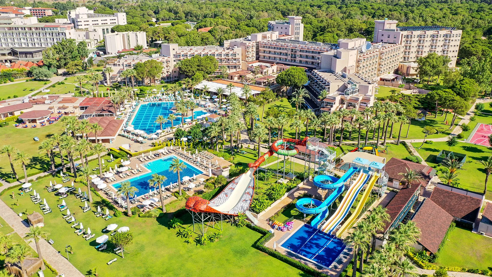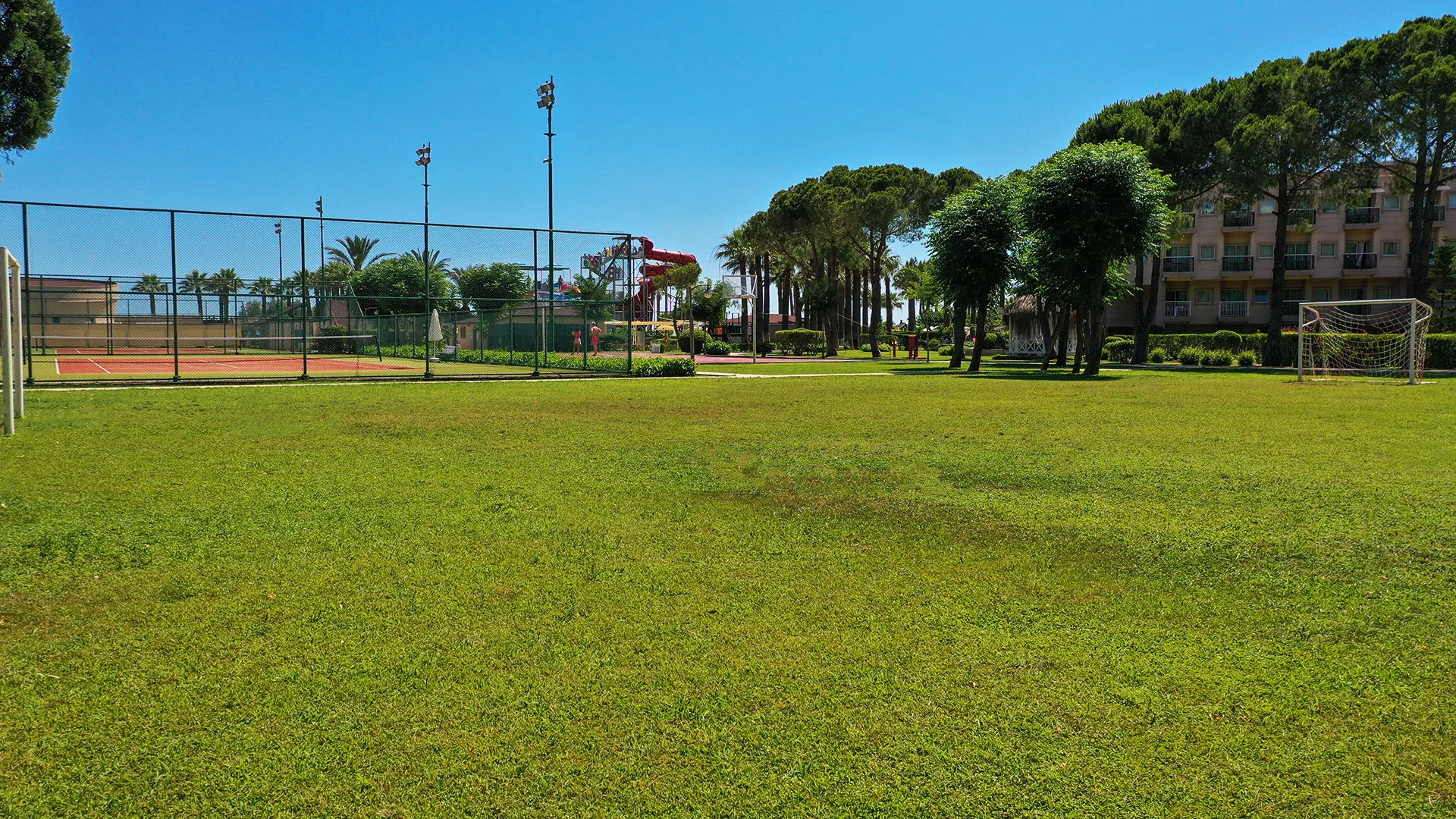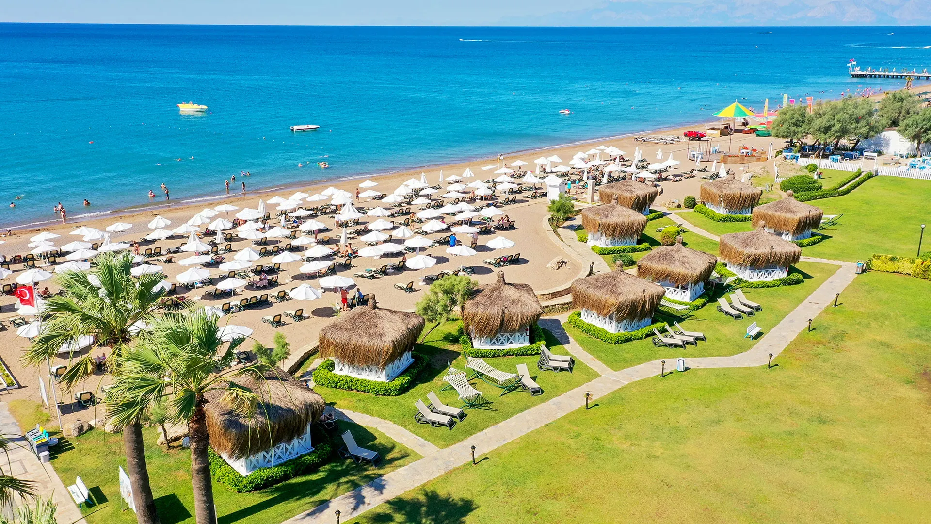 Сред удобствата за активен отдих на място са петте тенис корта, аквапаркът с водни пързалки и изцяло оборудваният здравен и фитнес център. За желаещите да открият околните забележителности, древният амфитеатър Аспендос е на кратко разстояние с кола, предлагайки на посетителите уникално историческо преживяване.