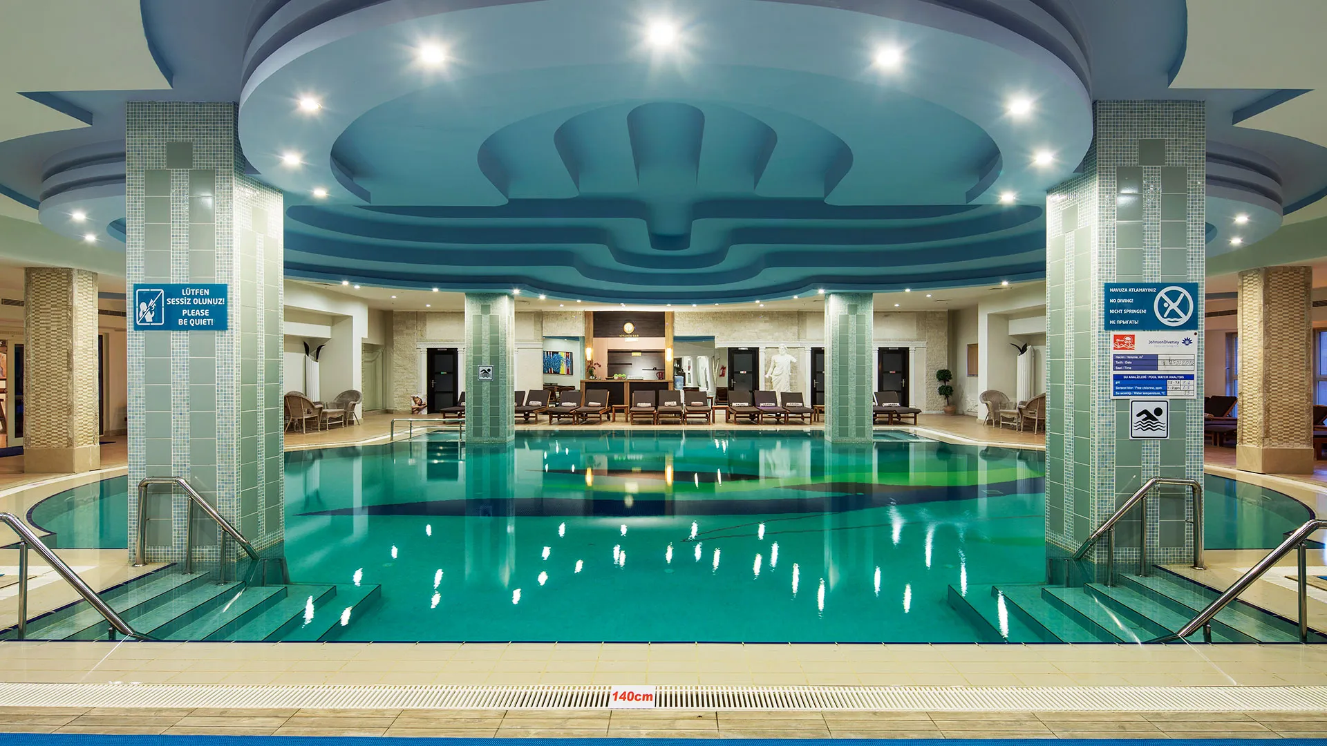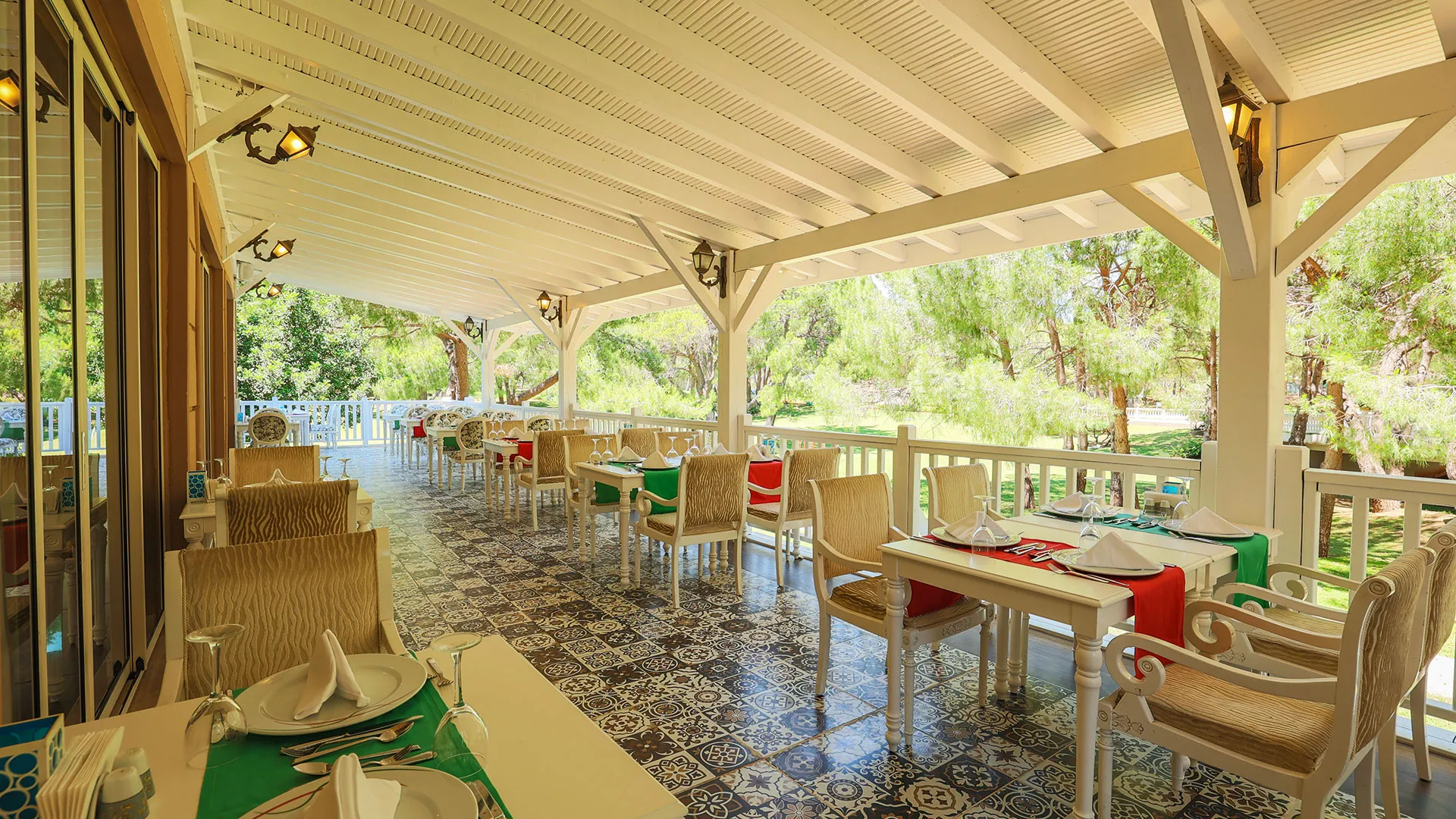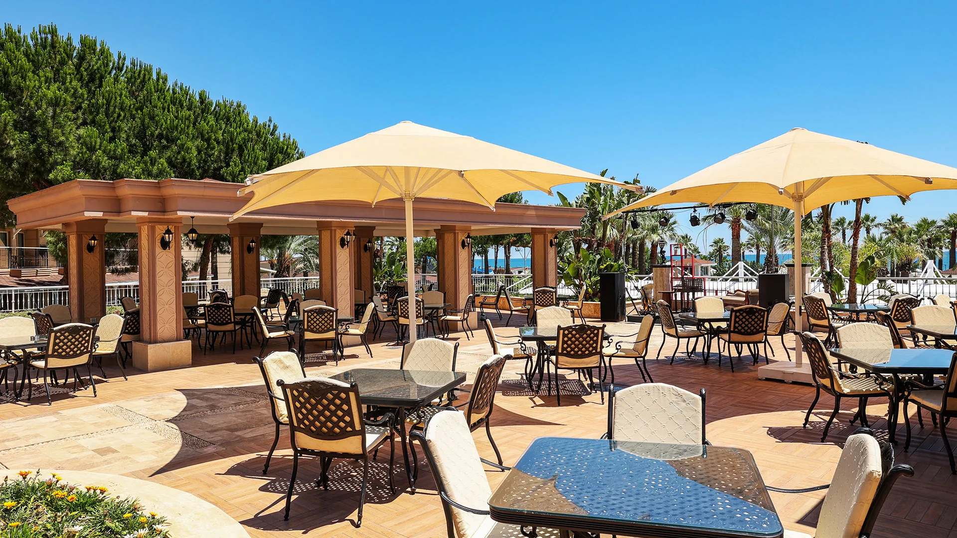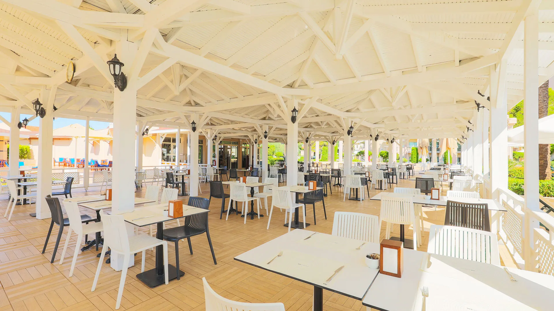 Сред удобствата за активен отдих на място са петте тенис корта, аквапаркът с водни пързалки и изцяло оборудваният здравен и фитнес център. За желаещите да открият околните забележителности, древният амфитеатър Аспендос е на кратко разстояние с кола, предлагайки на посетителите уникално историческо преживяване.