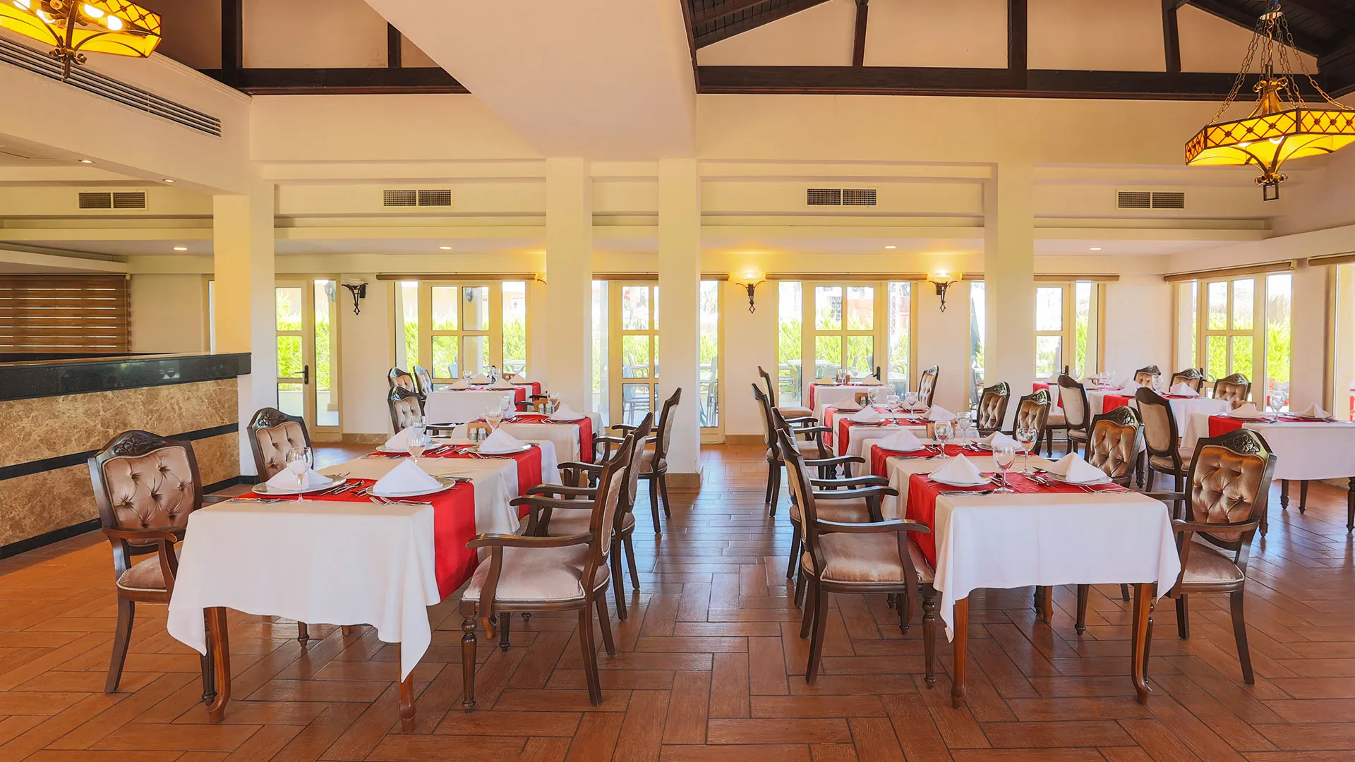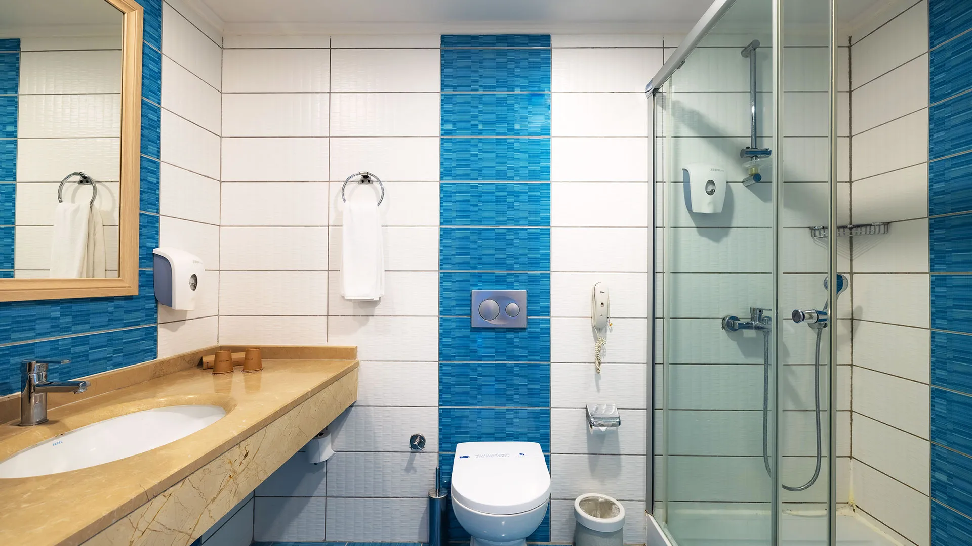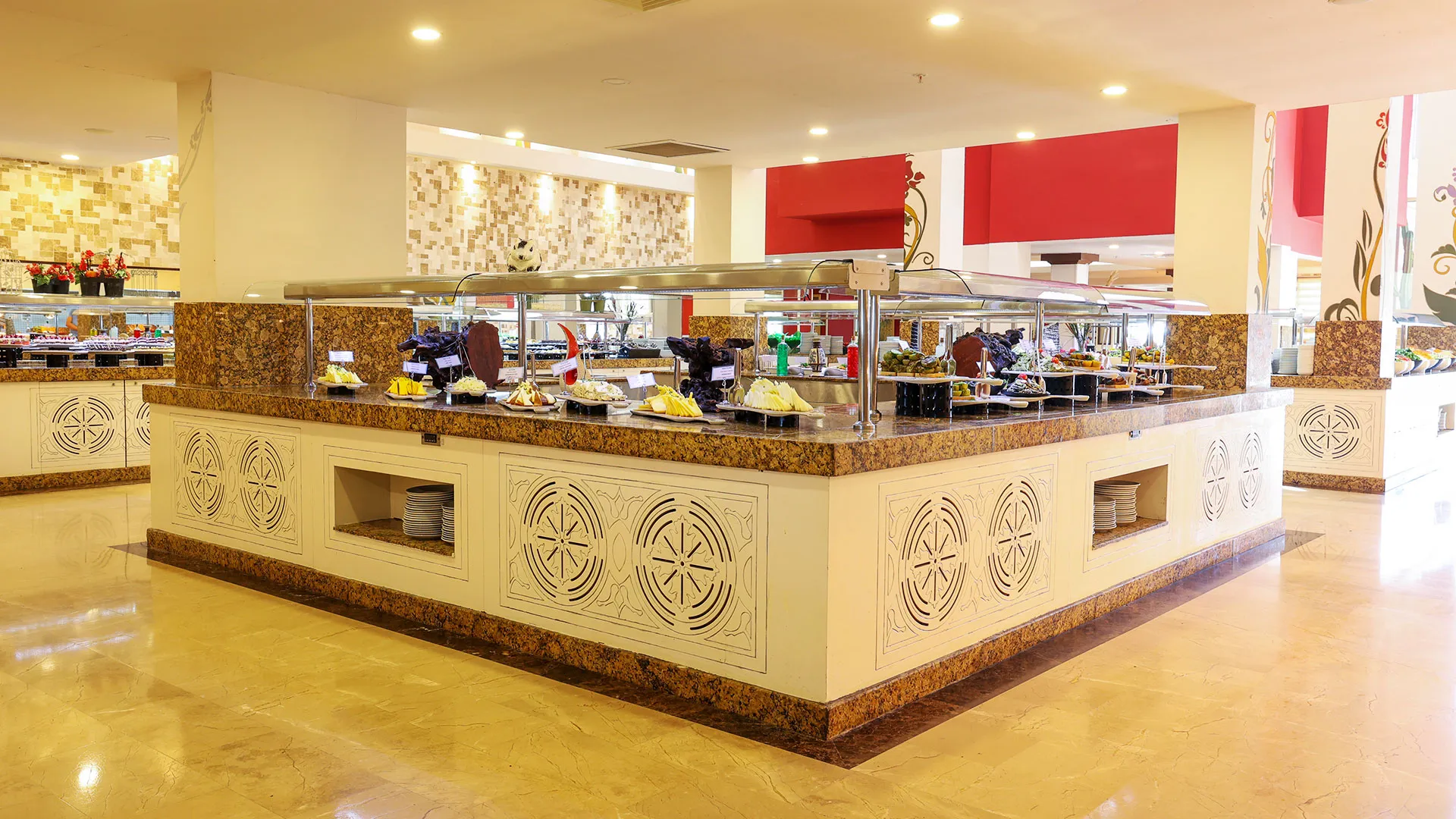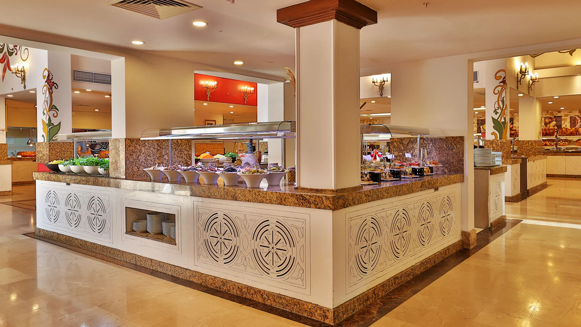 Сред удобствата за активен отдих на място са петте тенис корта, аквапаркът с водни пързалки и изцяло оборудваният здравен и фитнес център. За желаещите да открият околните забележителности, древният амфитеатър Аспендос е на кратко разстояние с кола, предлагайки на посетителите уникално историческо преживяване.