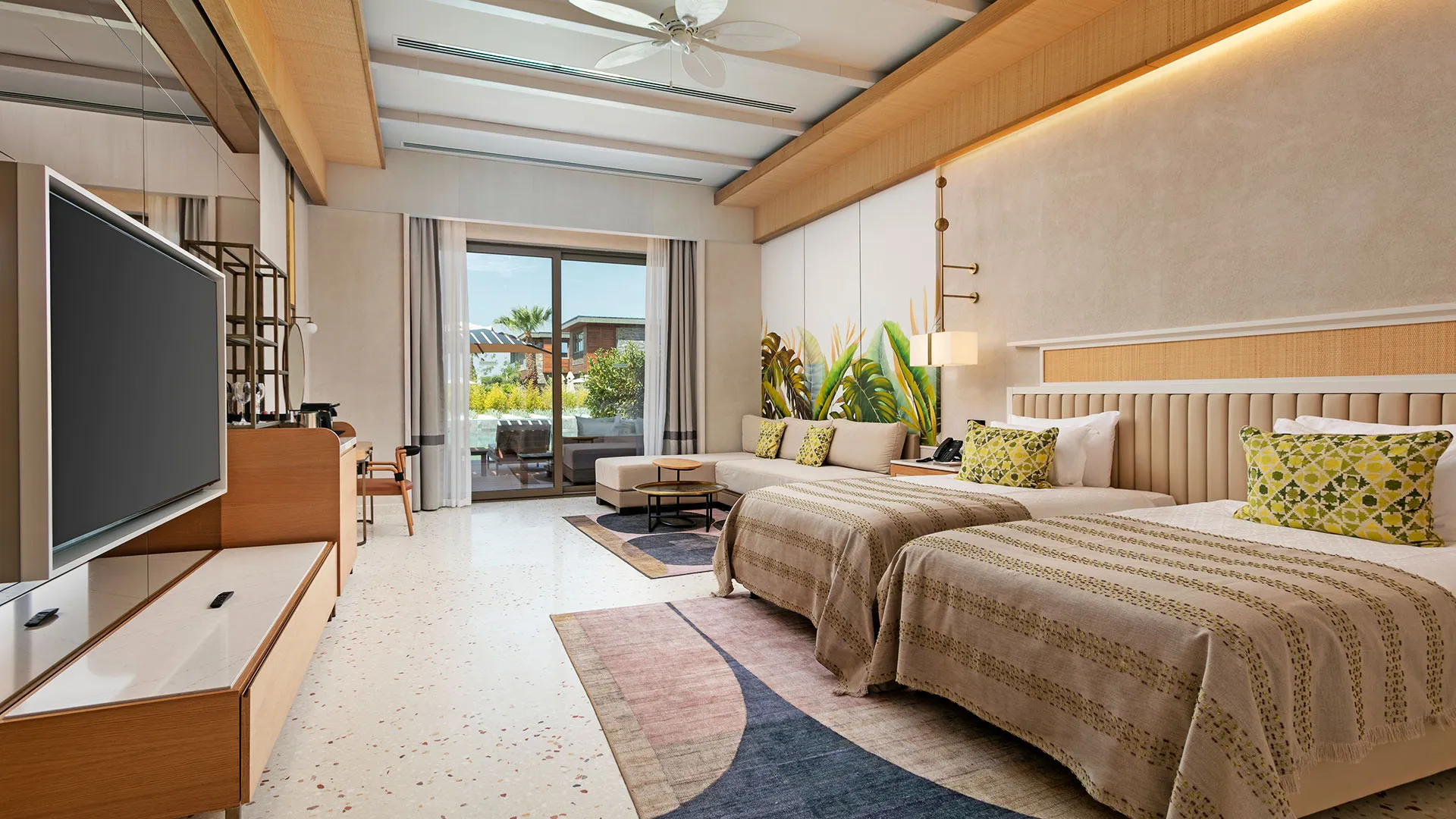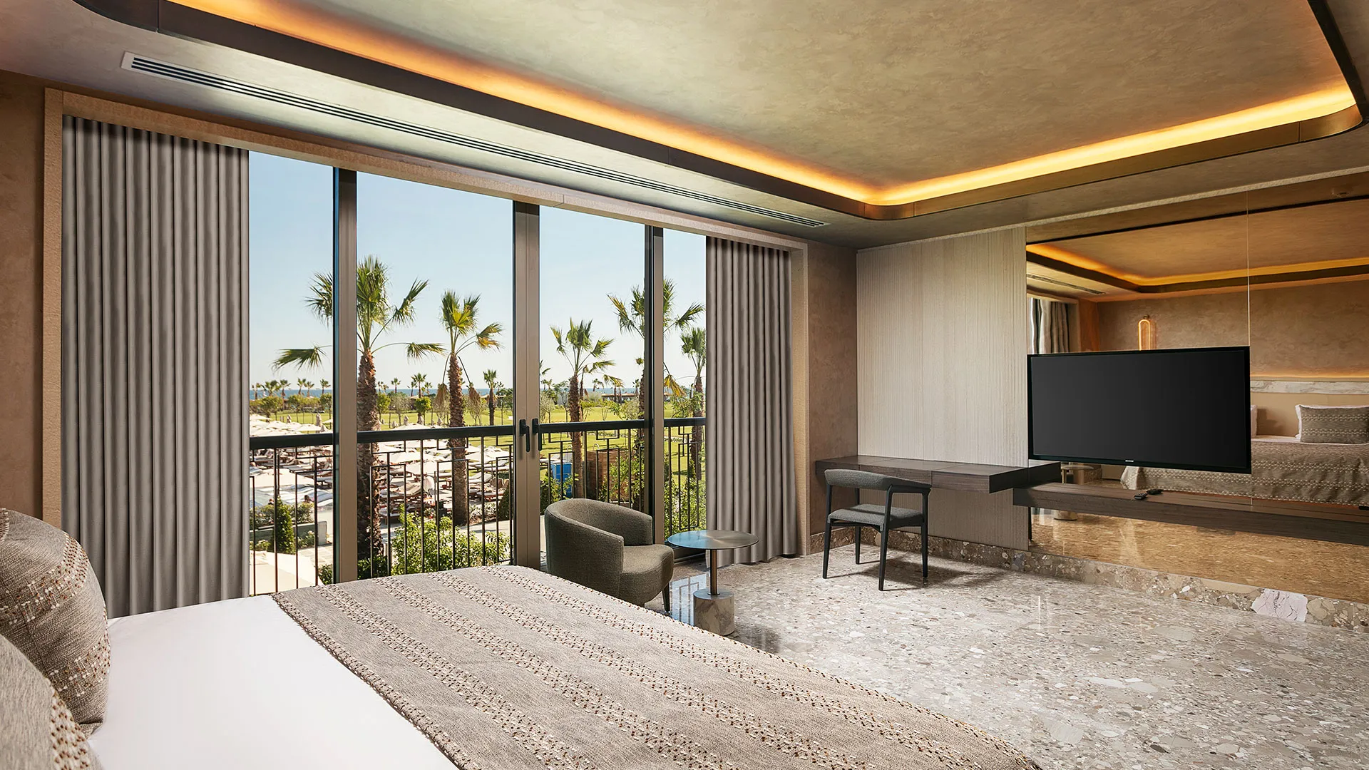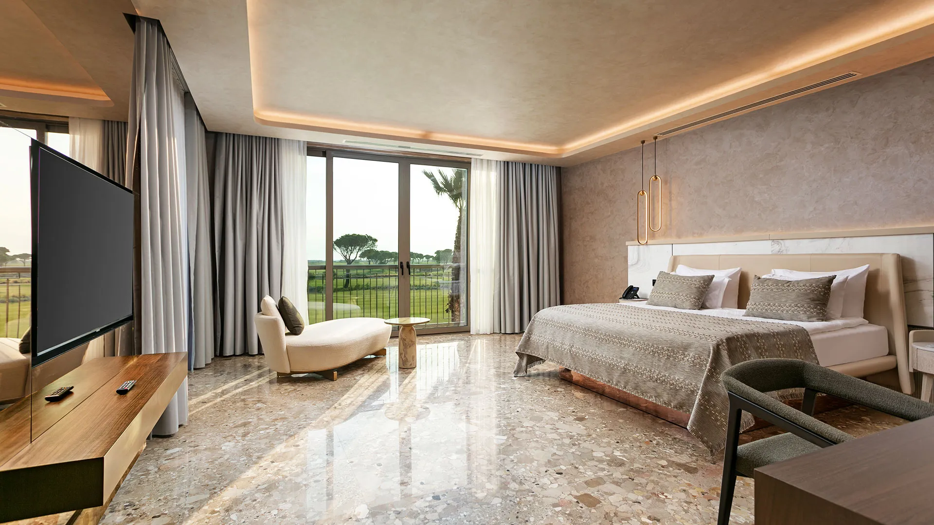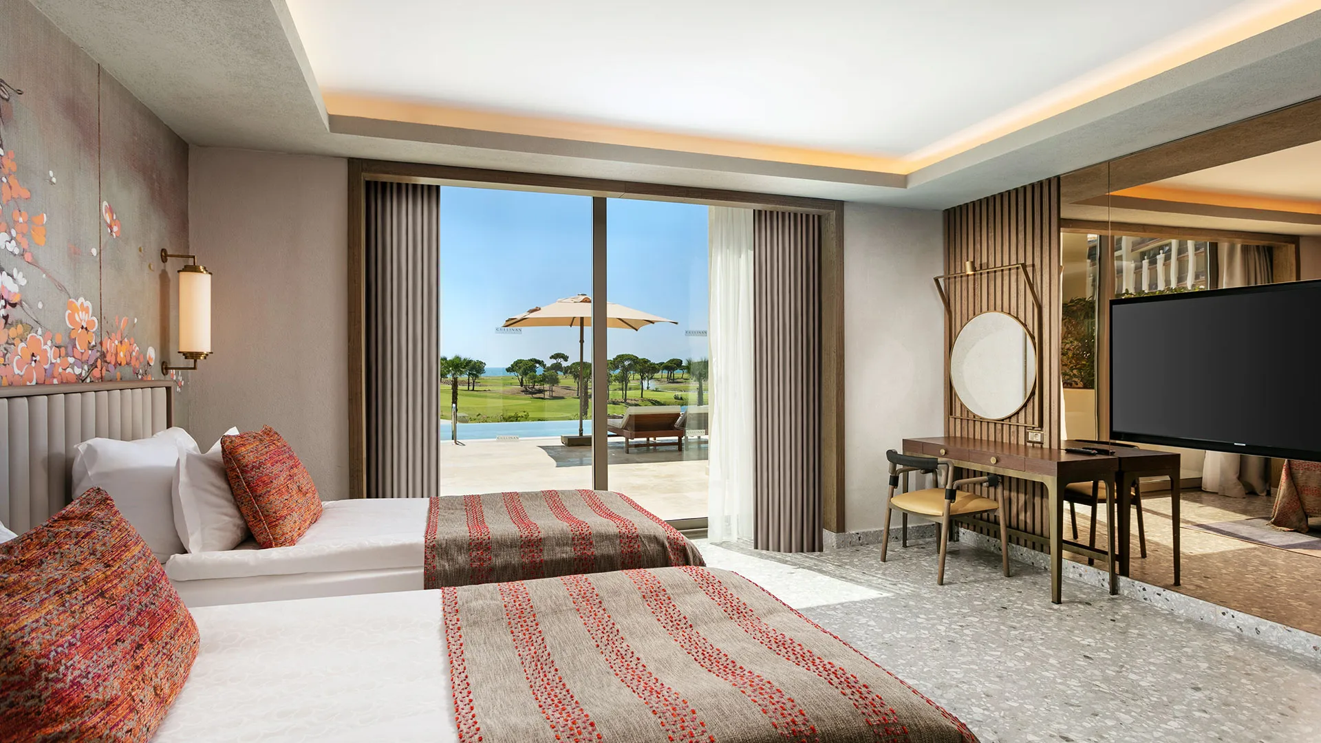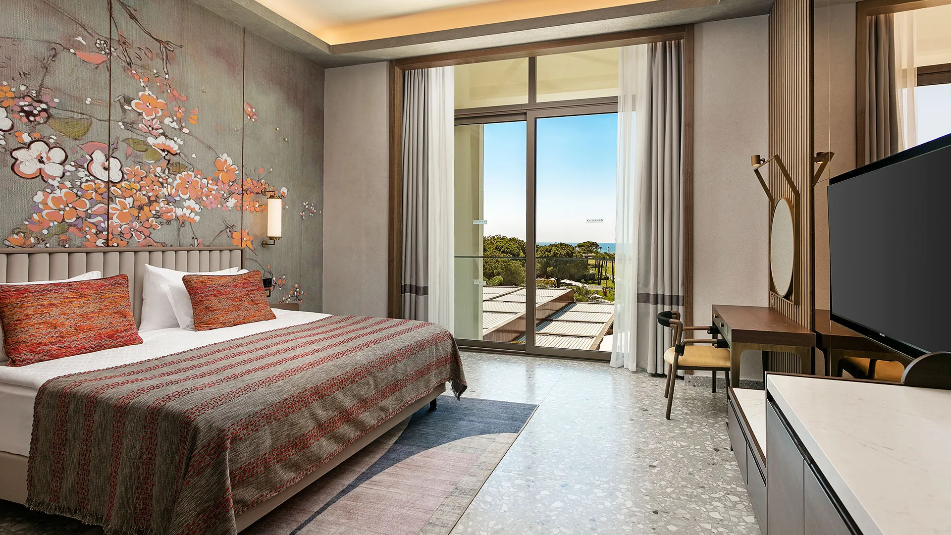 Просторните и климатизирани стаи в Cullinan Belek ви привличат със своя уют, снабдени с бюро, електрическа кана, минибар и сейф, осигурявайки ви максимално удобство. Също така, можете да се насладите на безплатен WiFi и да се релаксирате на балкона си, а в банята с вграден душ ще откриете всичко необходимо за вашето удобство.