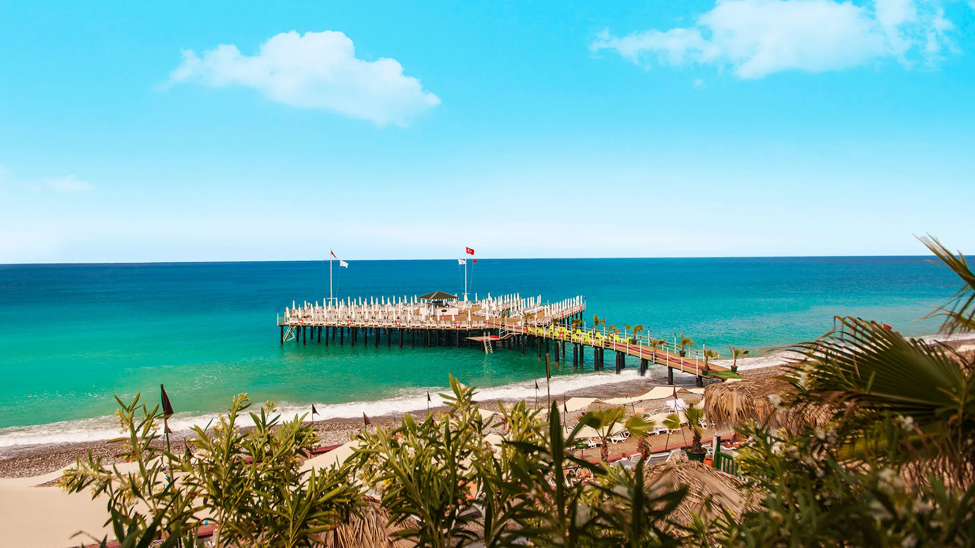 Delphin Botanik Platinum се намира на първа линия до морето и разполага със собствен частен пясъчен плаж, оборудван с шезлонги и чадъри, където гостите могат да се насладят на слънцето и морските вълни. Хотелът е удобно разположен на около 90 километра от летище Анталия и на около 30 километра от центъра на Алания, което осигурява лесен достъп до основните туристически атракции и забележителности в региона.