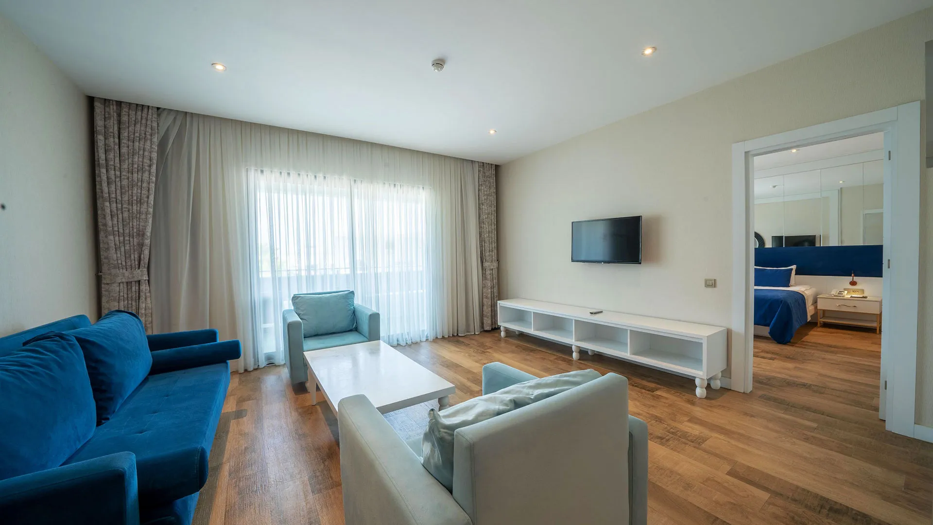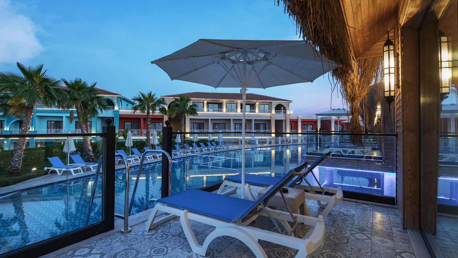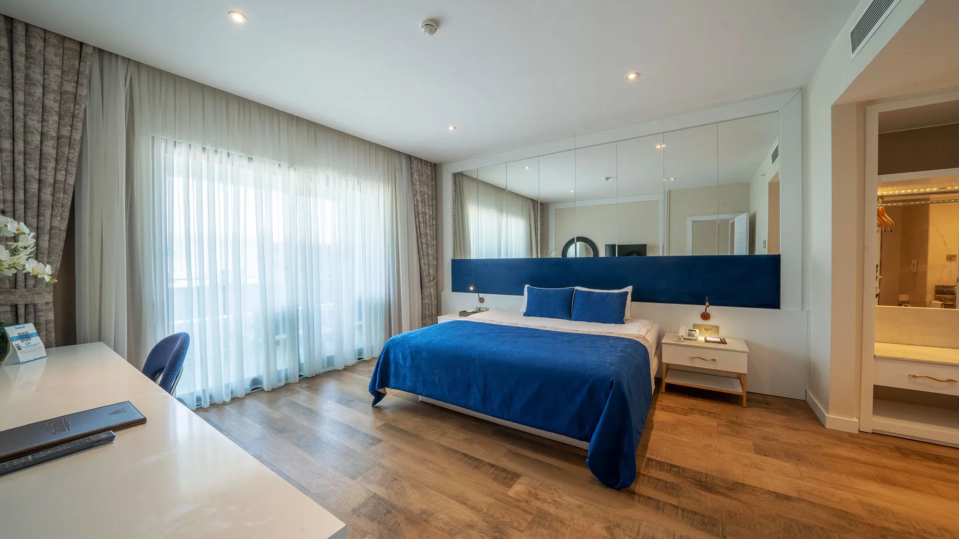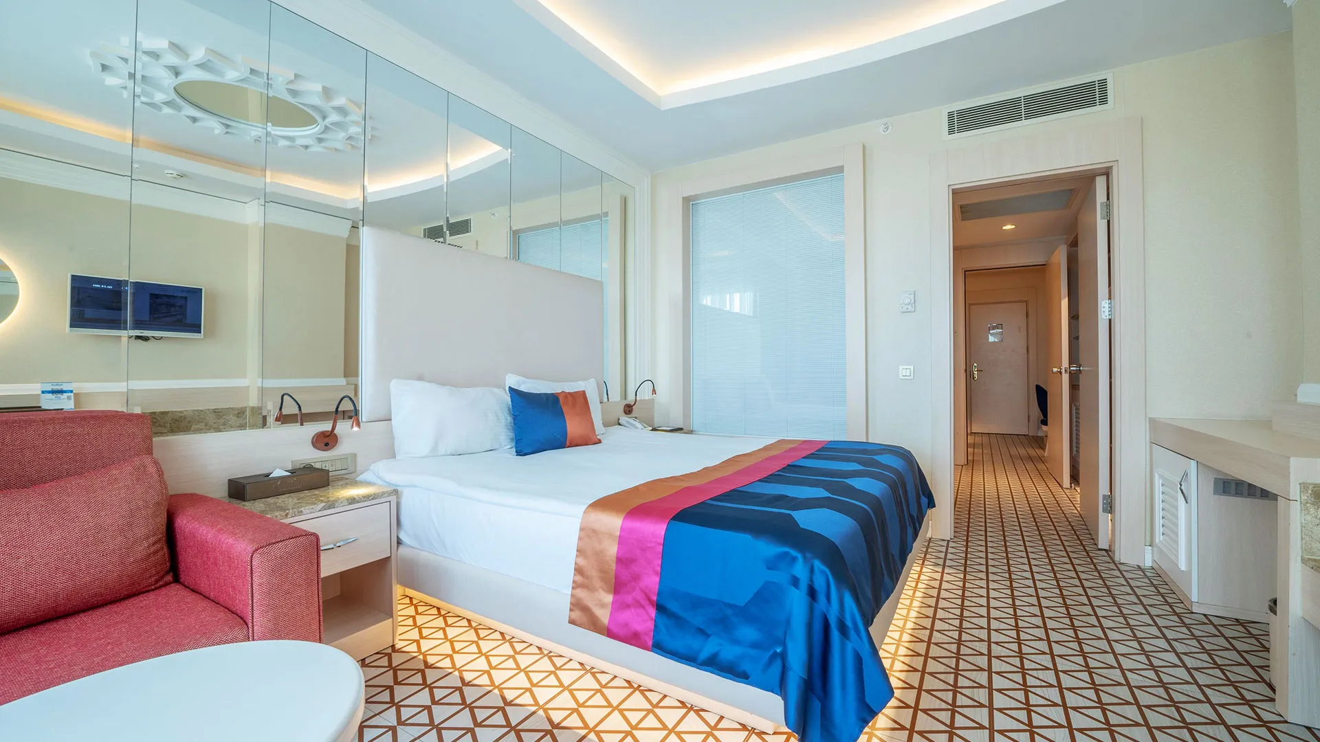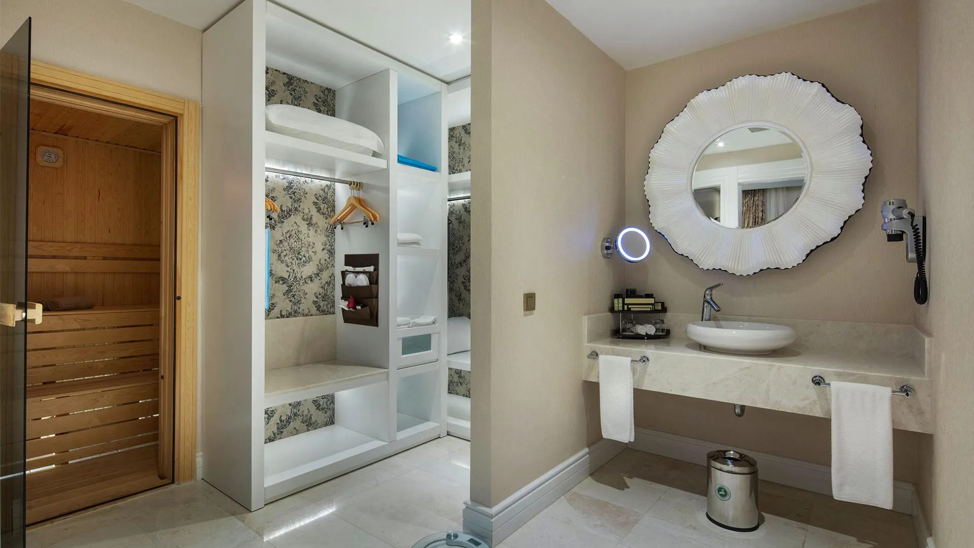 Всяка стая в Granada Luxury Belek разполага с климатик, телевизор, сейф и минибар. Гостите могат да се насладят на свежия средиземноморски въздух от балкона на стаята. Всички стаи имат собствена баня с душ.