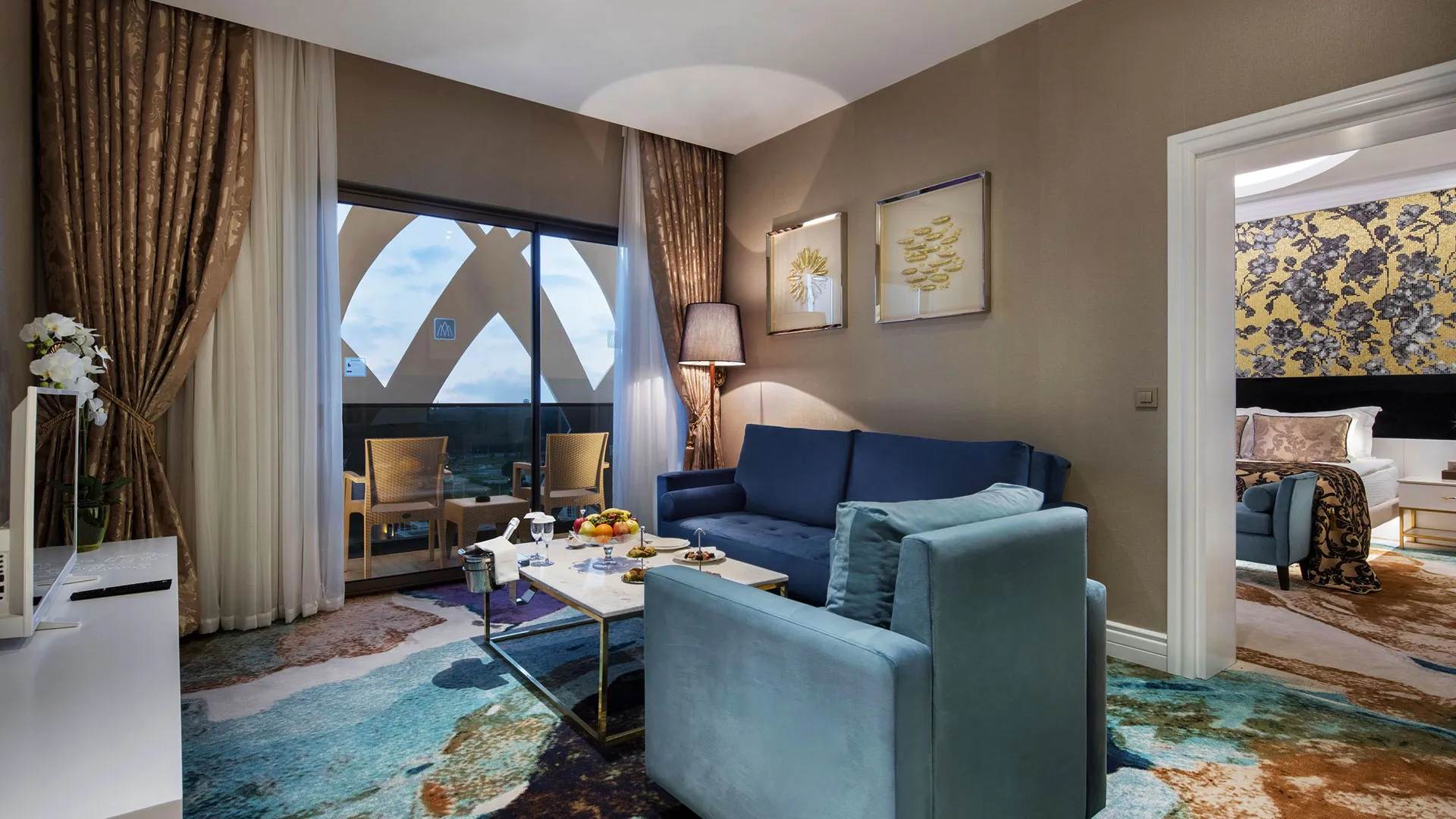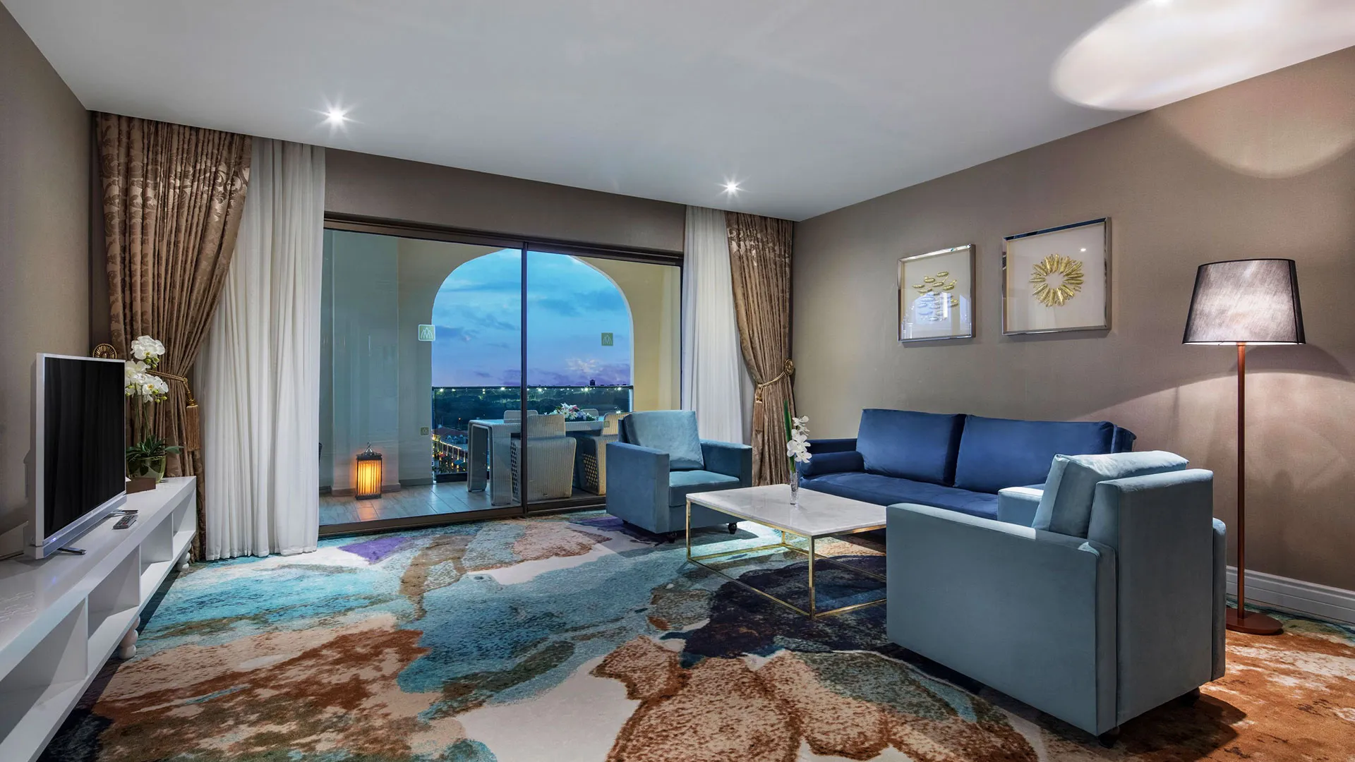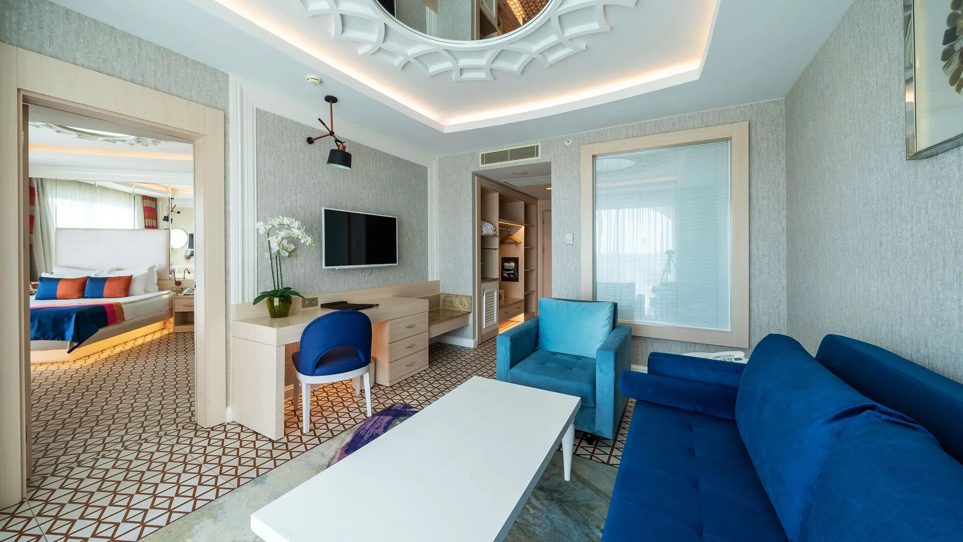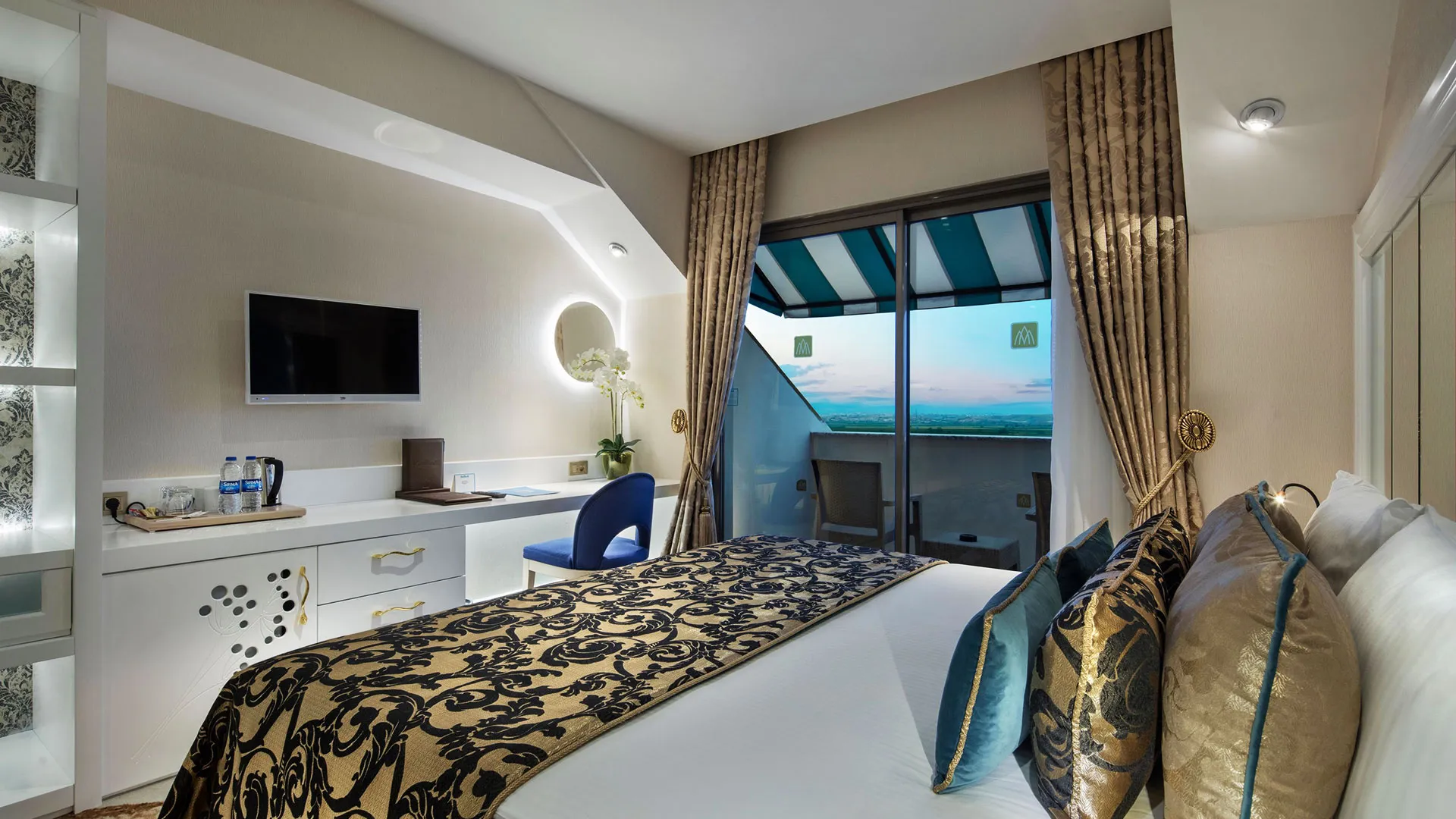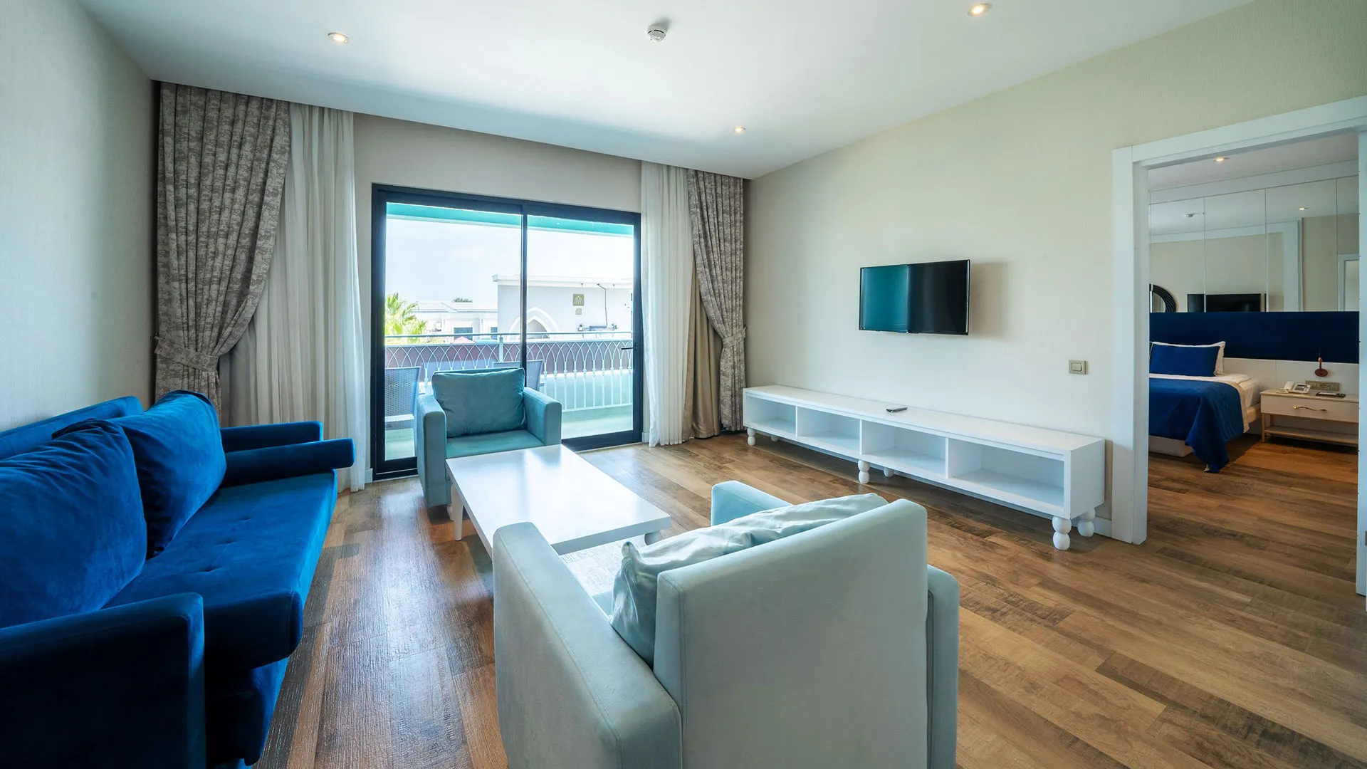 Всяка стая в Granada Luxury Belek разполага с климатик, телевизор, сейф и минибар. Гостите могат да се насладят на свежия средиземноморски въздух от балкона на стаята. Всички стаи имат собствена баня с душ.