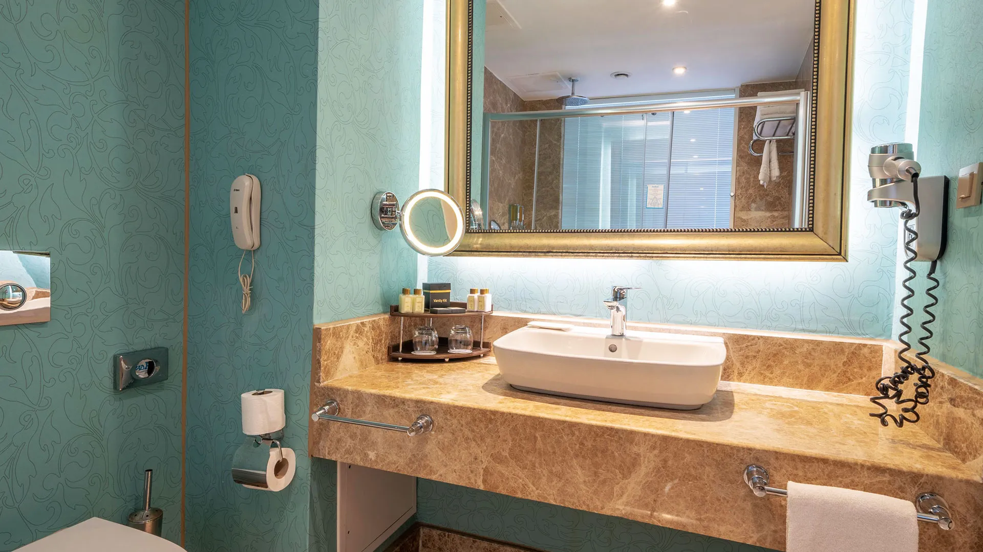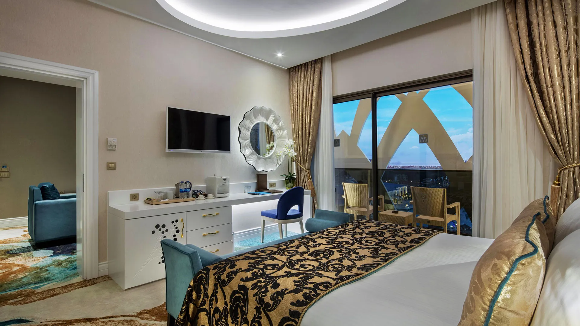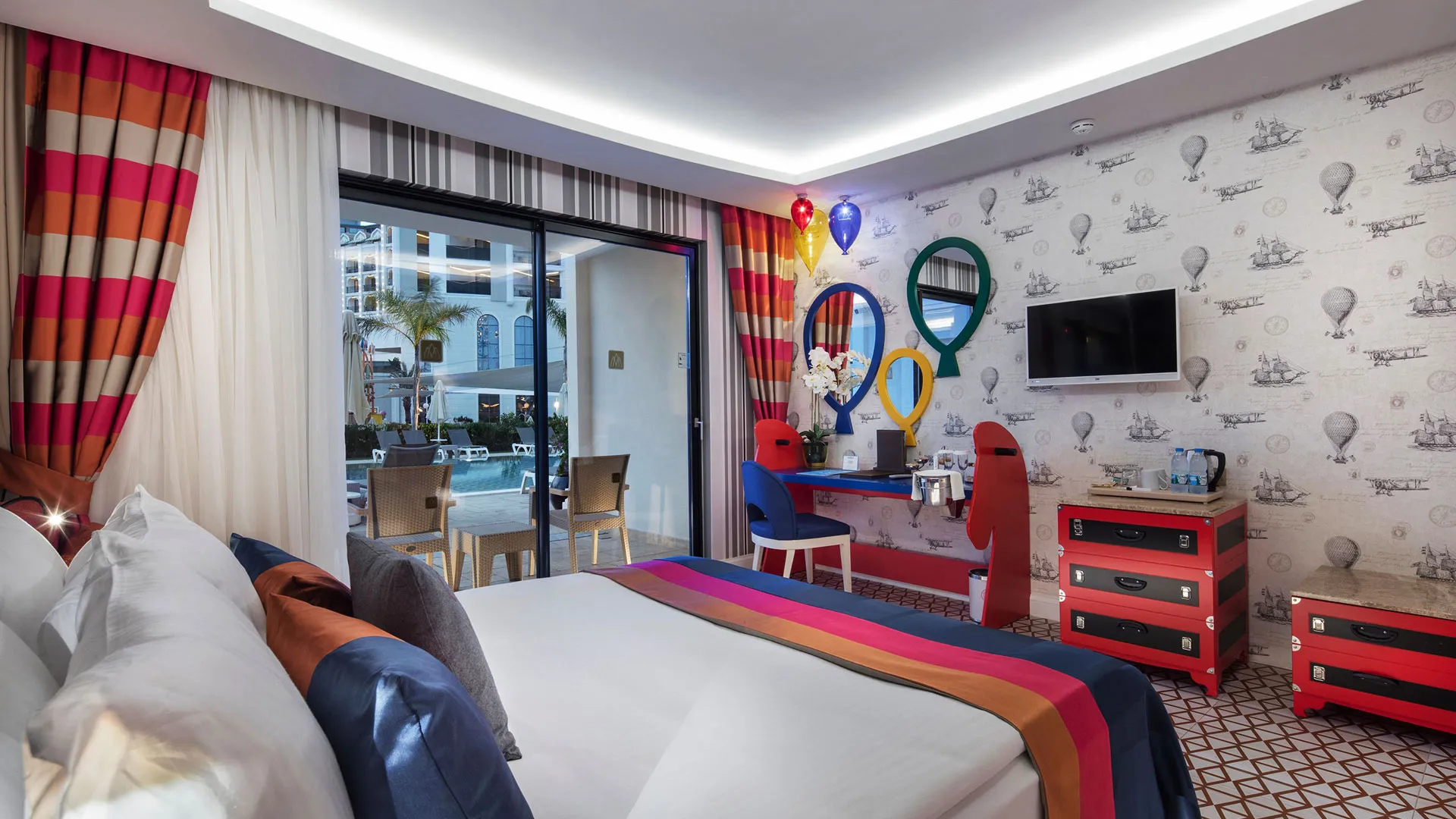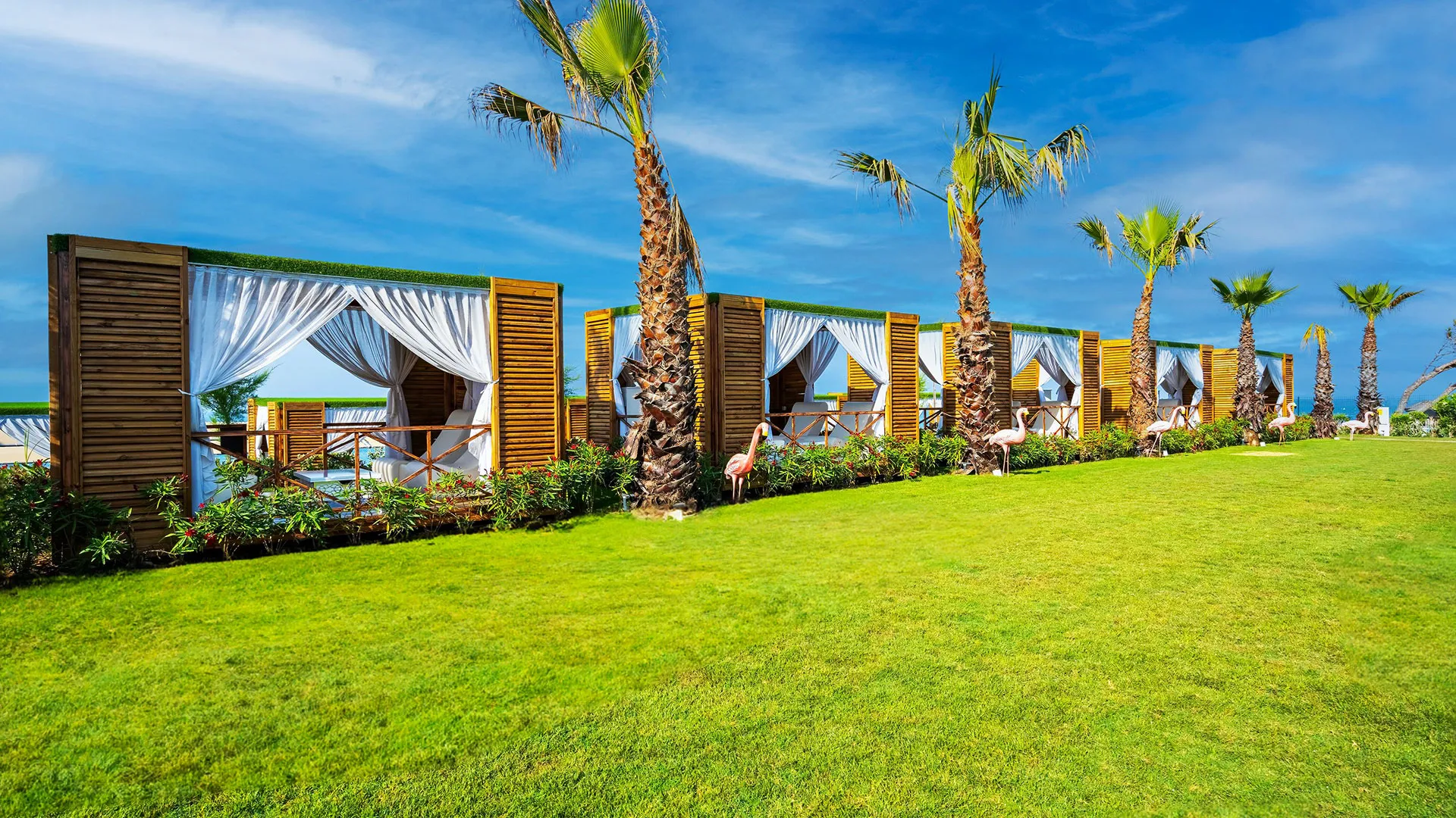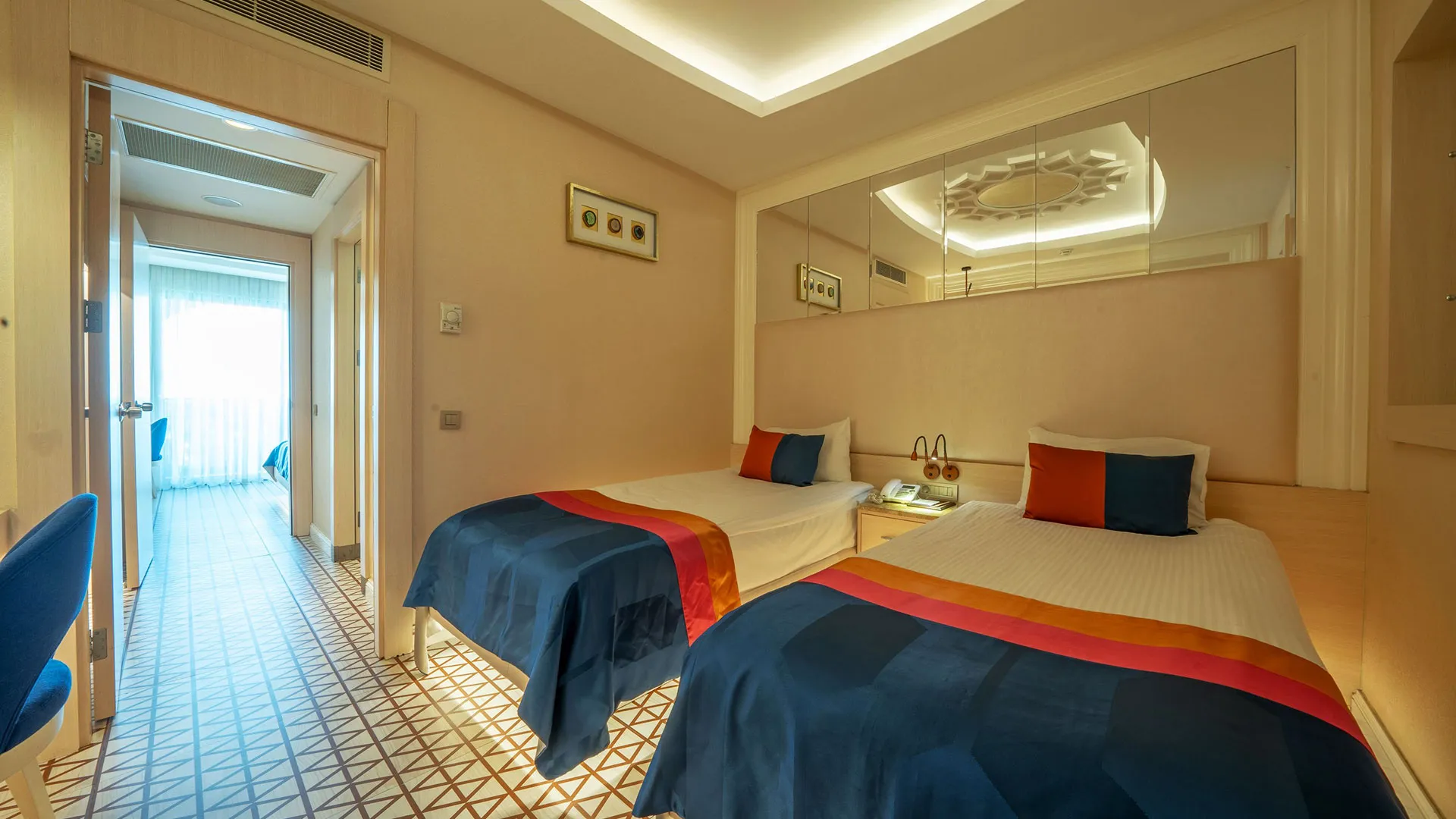 Всяка стая в Granada Luxury Belek разполага с климатик, телевизор, сейф и минибар. Гостите могат да се насладят на свежия средиземноморски въздух от балкона на стаята. Всички стаи имат собствена баня с душ.
