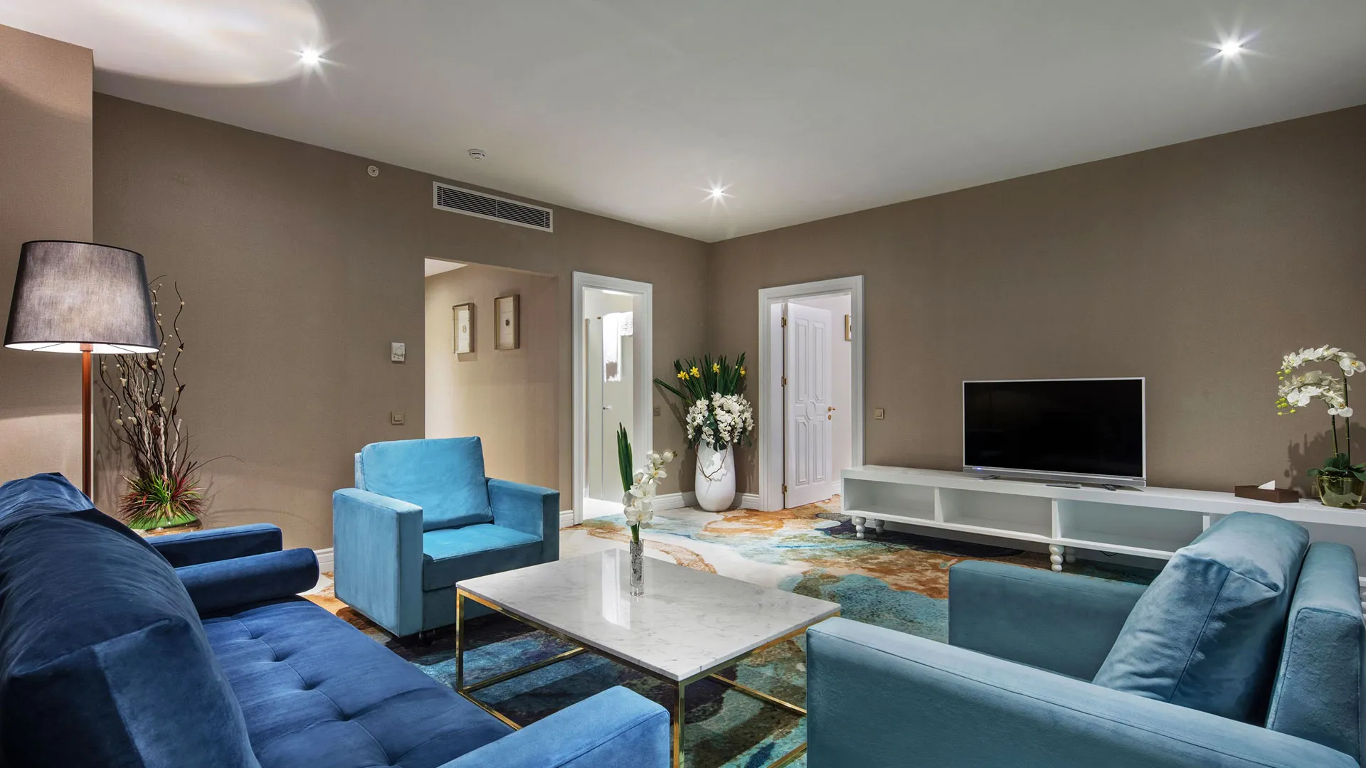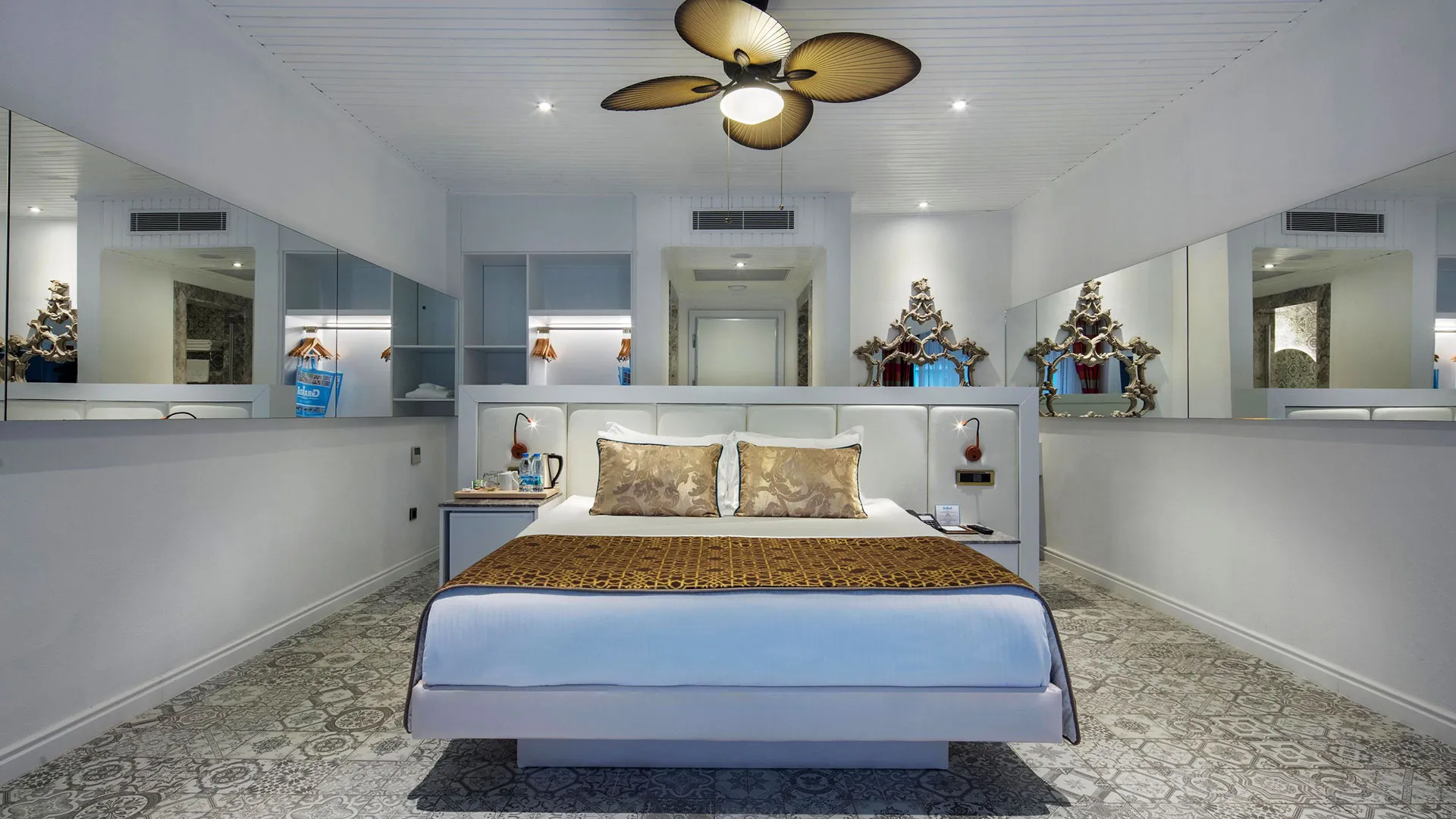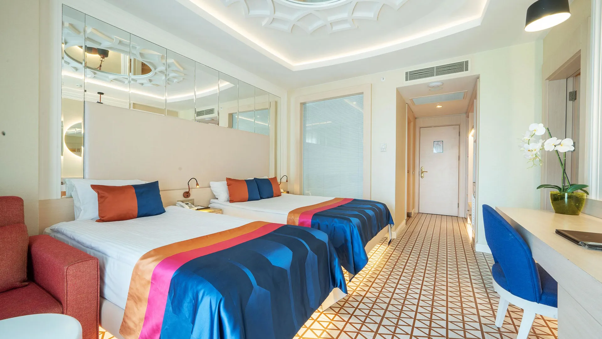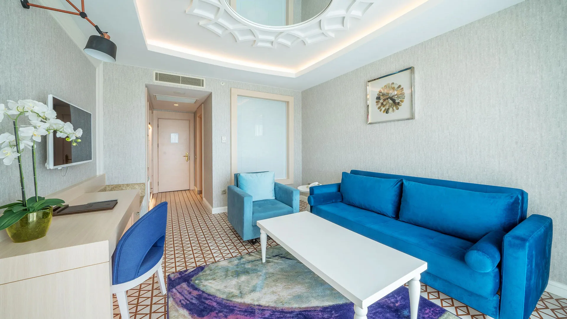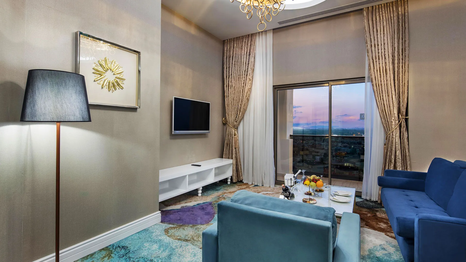 Всяка стая в Granada Luxury Belek разполага с климатик, телевизор, сейф и минибар. Гостите могат да се насладят на свежия средиземноморски въздух от балкона на стаята. Всички стаи имат собствена баня с душ.