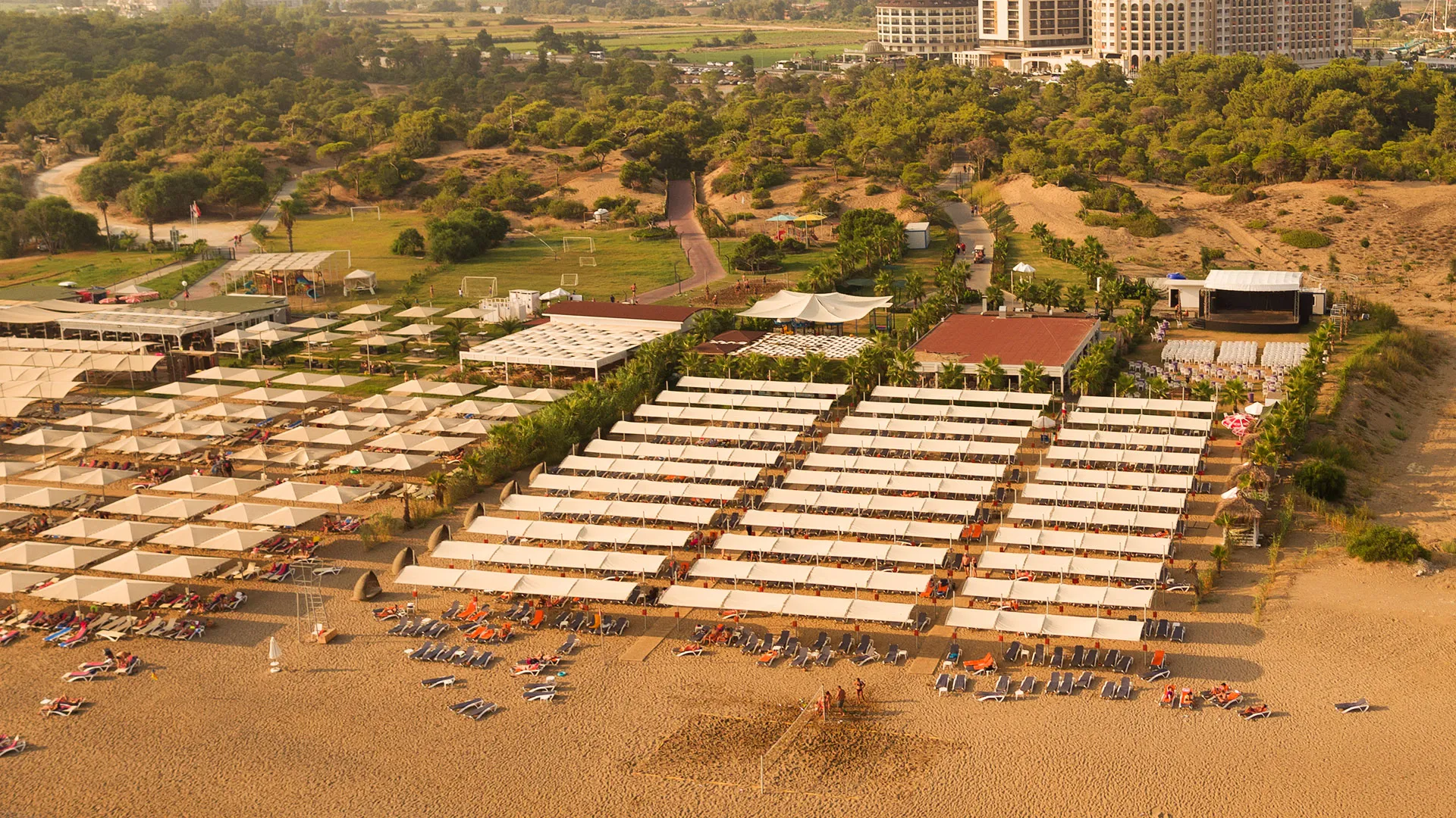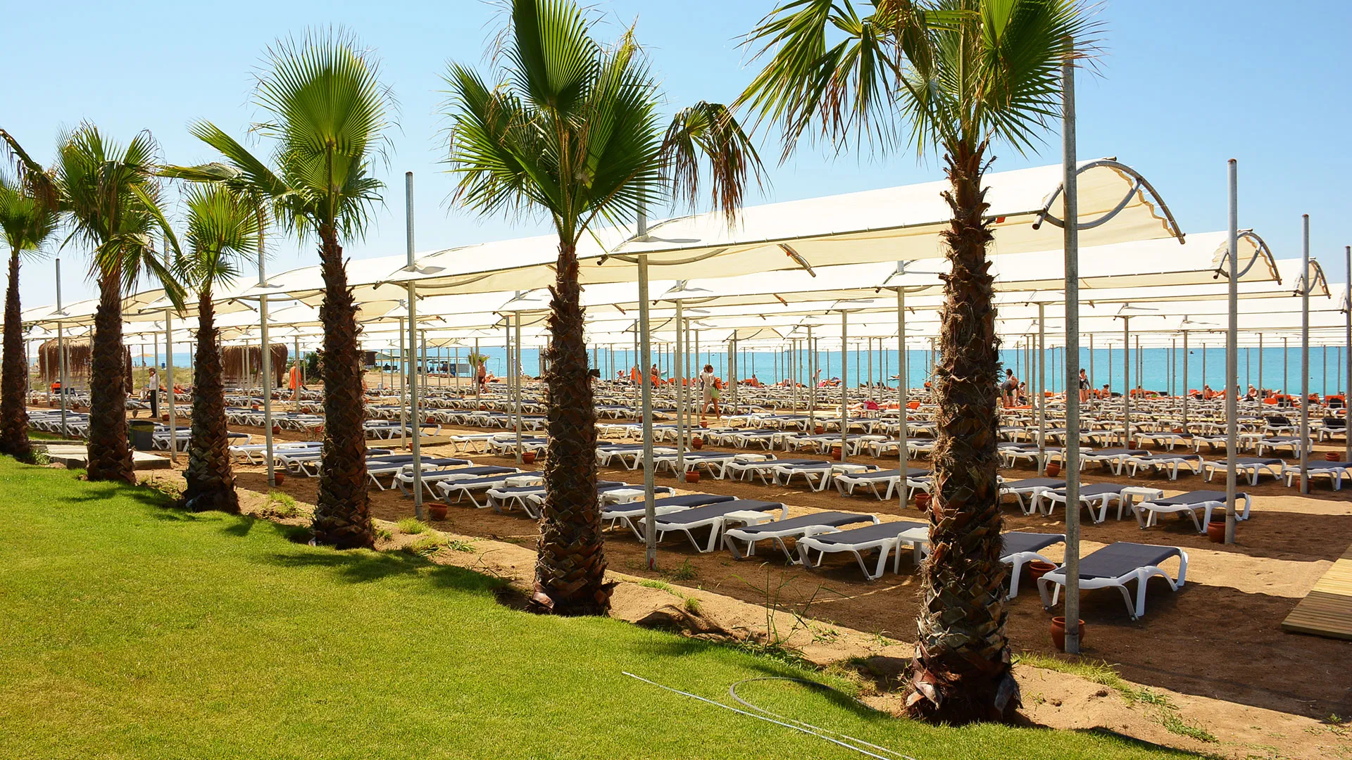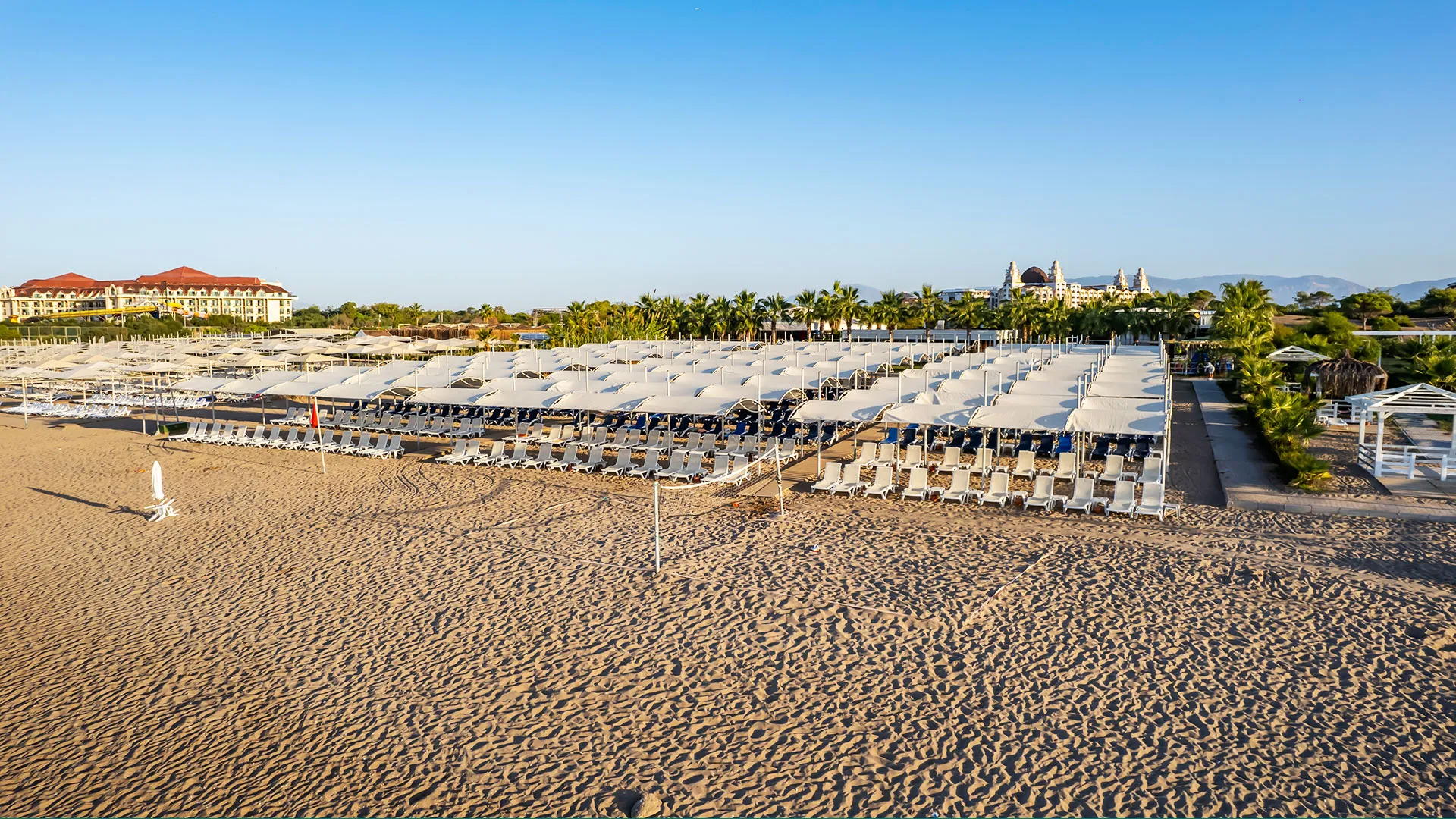 Плажът на хотела е със смес от пясък и камъчета и се намира на 350 метра от хотела, от другата страна на пътя. На всеки 15 минути се осигурява шатъл до плажа. Шезлонги, матраци, чадъри и плажни кърпи са на разположение на гостите безплатно. На плажа има също павилион, който е срещу заплащане, и плажен бар.