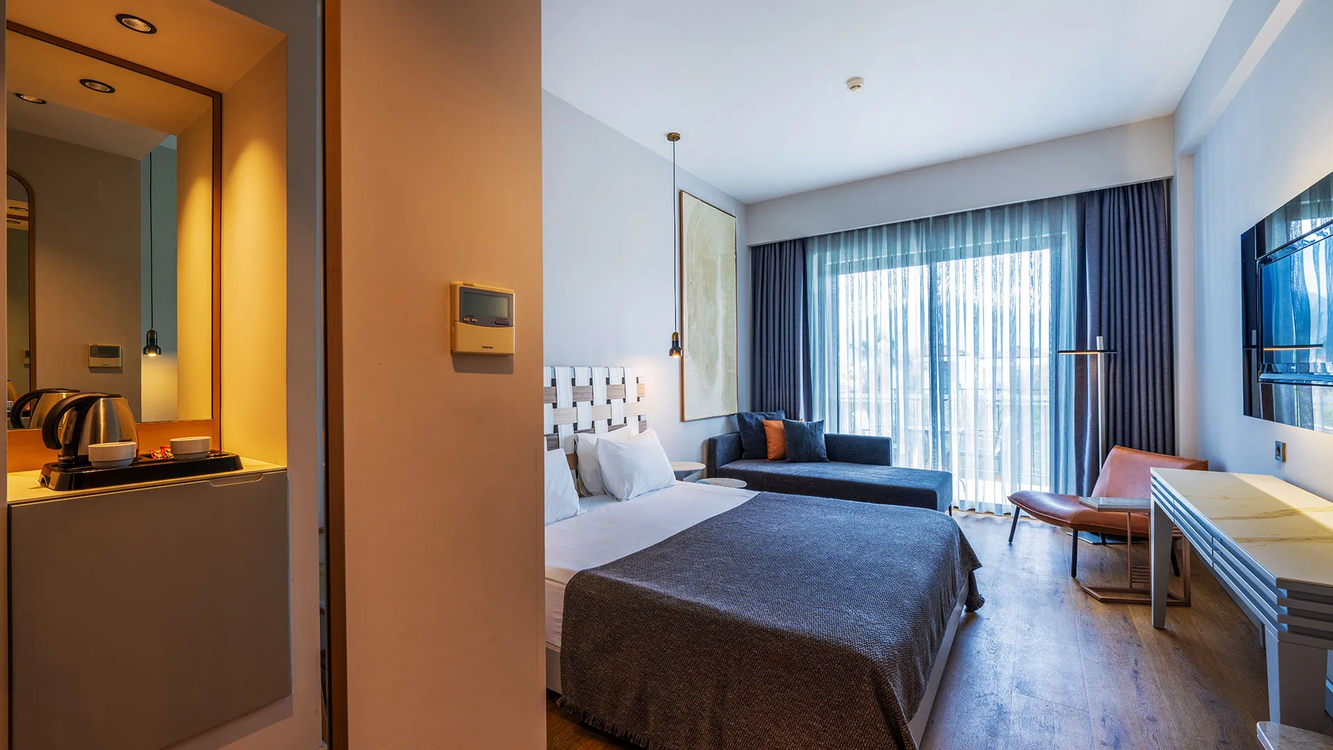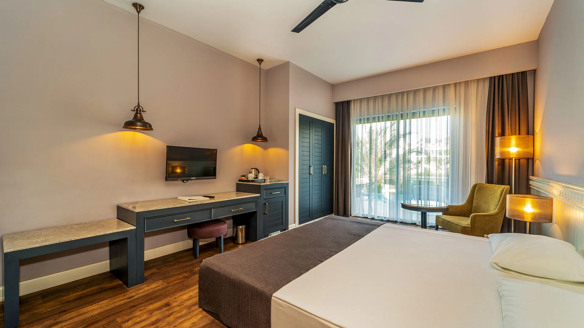 Хотелът предлага удобства като фитнес център, детски клуб, аквапарк и частен плаж, който е идеален за релакс. Осигурен е също така и трансфер до летище Даламан, което се намира на около 28 км. Jiva Beach Resort е известен със своето високо качество на обслужване, чистота и богат избор от развлечения, което го прави подходящ както за семейства, така и за двойки​