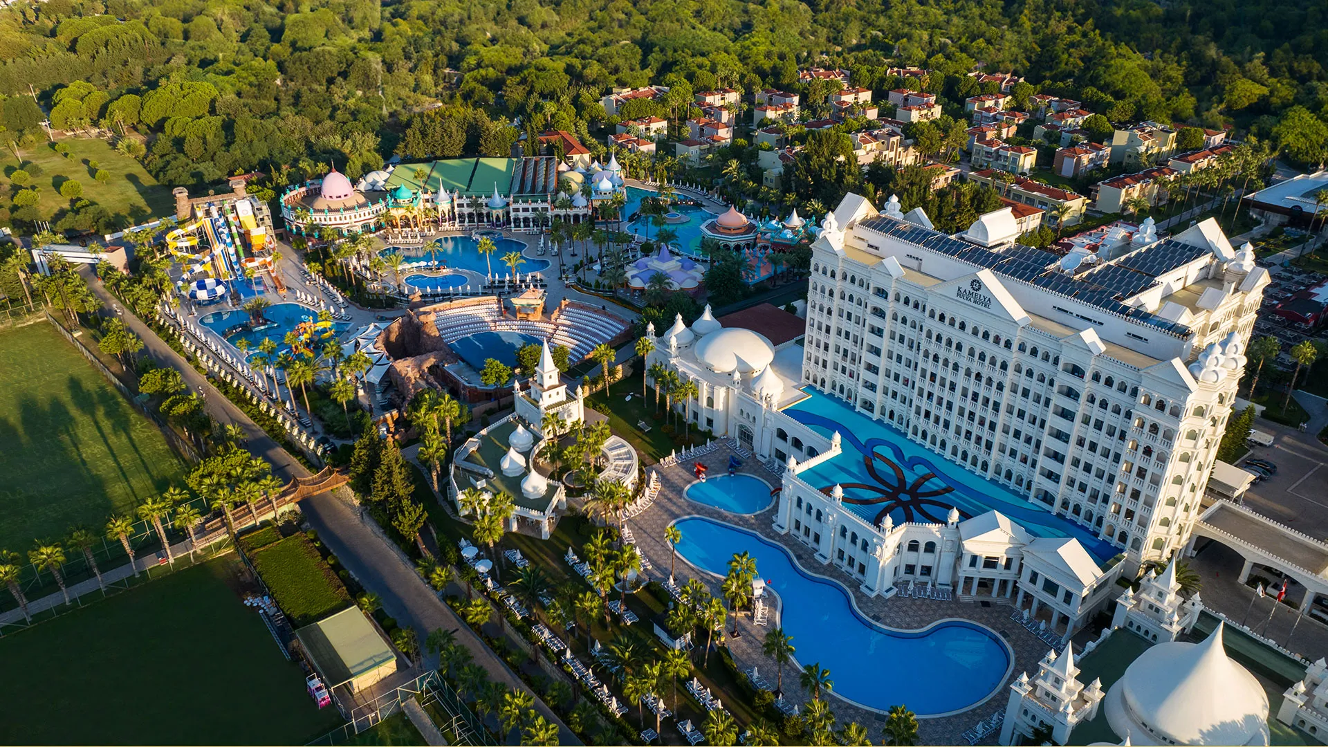 На територията на хотела гостите могат да се насладят на разнообразни удобства и забавления, включително аквапарк с 6 водни пързалки, кинозала, СПА-център, фризьорски салон, магазини, пералня и химическо чистене.