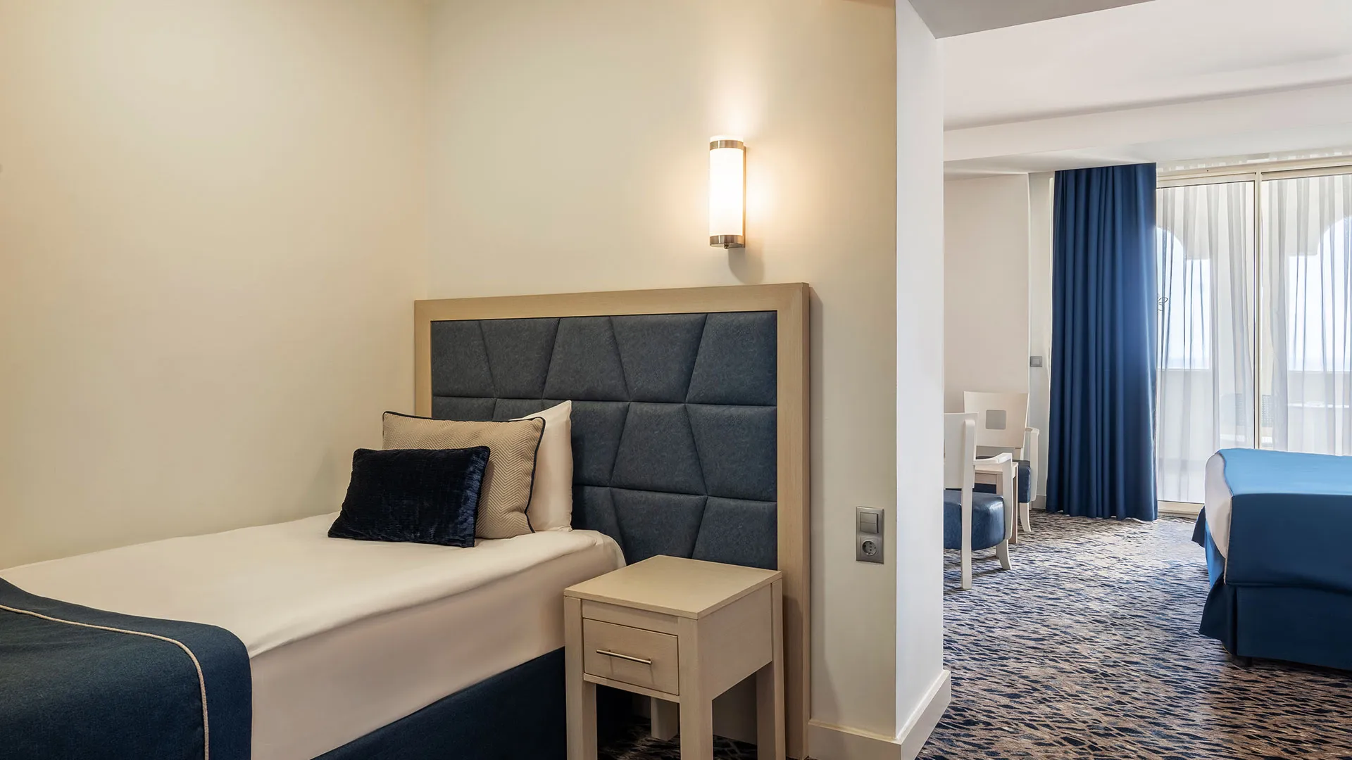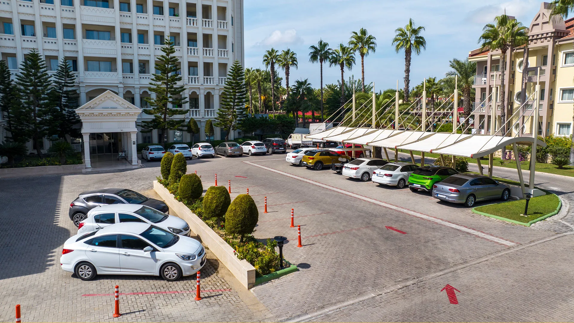 Хотелът има собствен плаж с дължина от 500 метра и ширина от 60 метра, който е един от най-големите и широки в района на Сиде. На плажа има 2 бара, единият от които функционира като винарна от май до октомври. В допълнение, има два открити басейна, където гостите могат да се насладят на допълнително удобство.