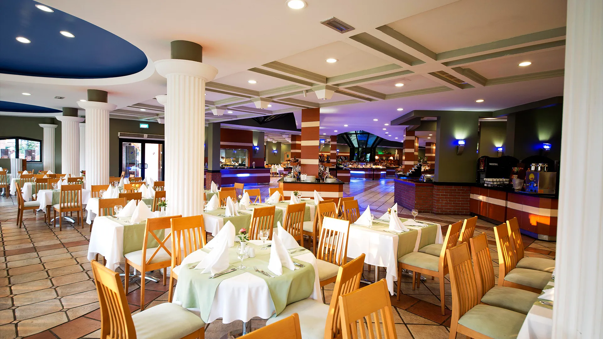 Ресторант Pinea приготвя разнообразни ястия от средиземноморската и турска кухня, като в хотела се намират и четири а ла карт ресторанта, предлагащи кулинарни изживявания от цял свят. Бар Odeon е идеалното място за наслаждаване на атмосферата с жива музика, докато гостите се отпускат с напитки на морския бряг.