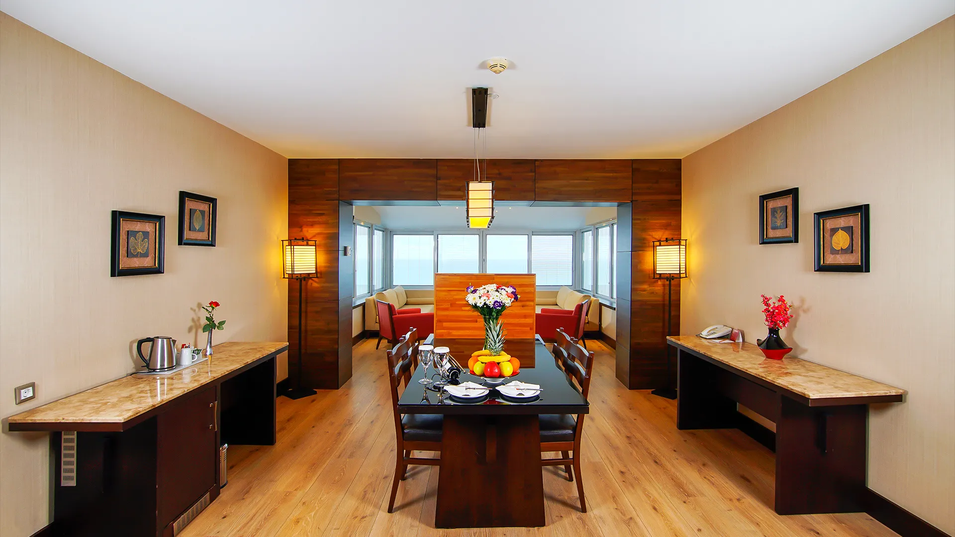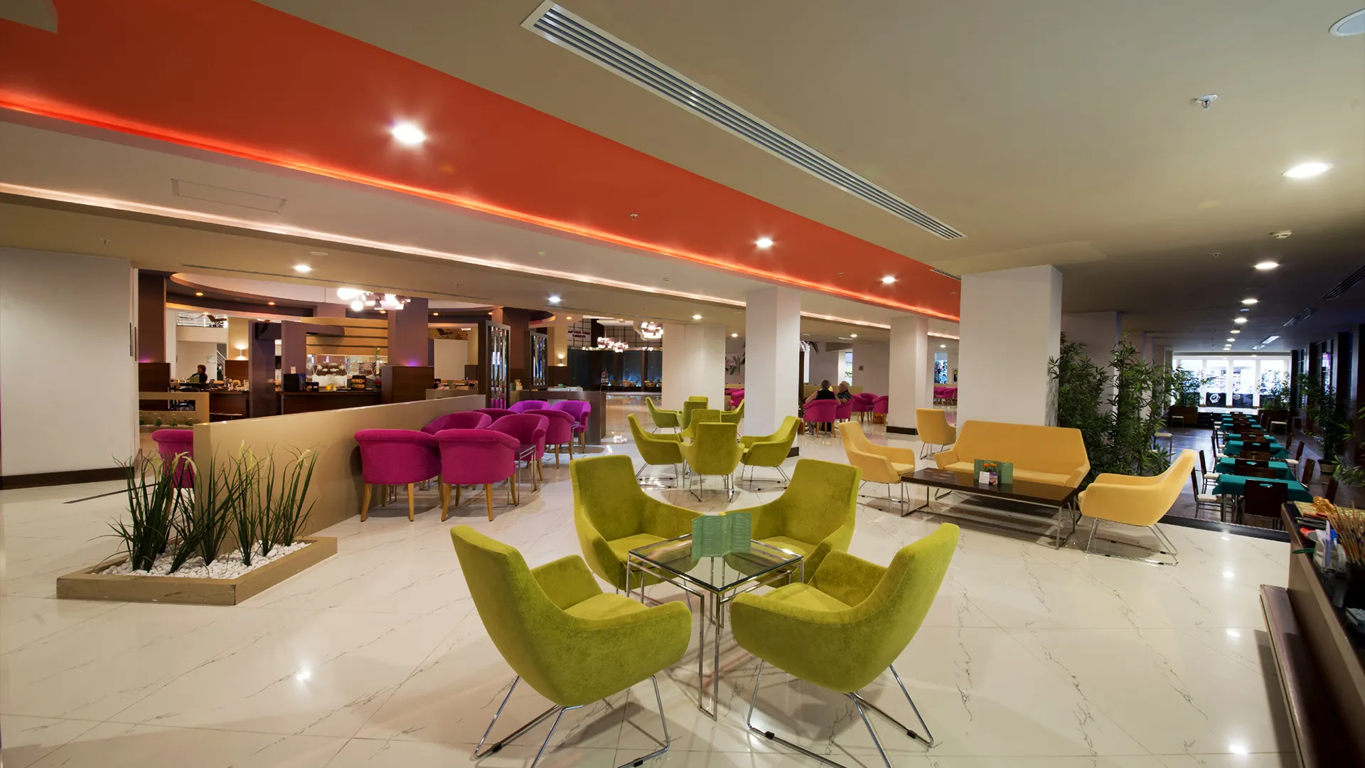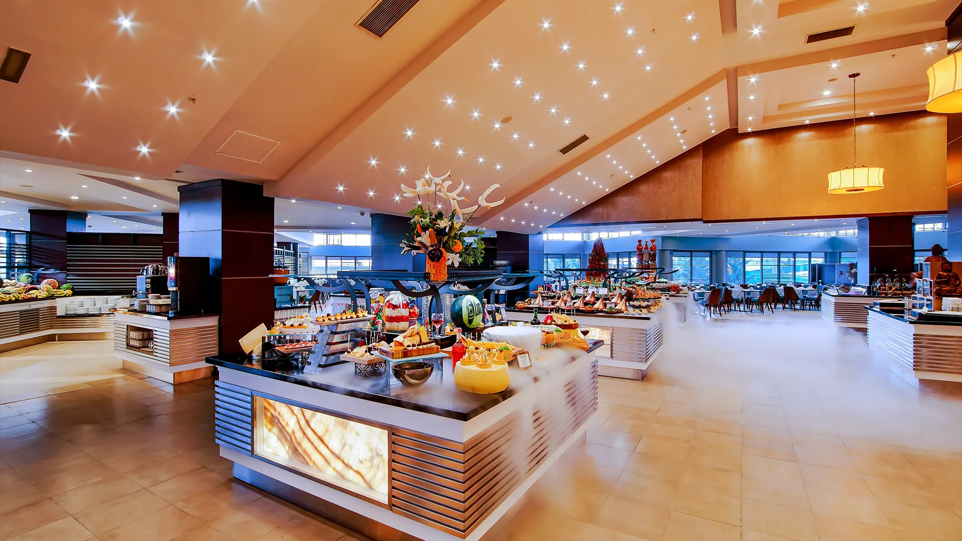 В ресторантите на място гостите могат да се насладят на разнообразие от международни кухни, включително индийска, тайландска, японска, италианска, мексиканска и турска. Ястията могат да бъдат сервирани както на закрито, така и на открито.