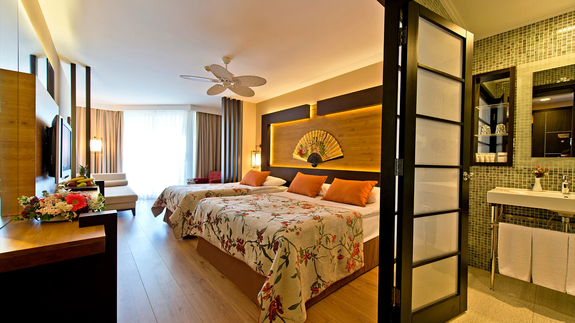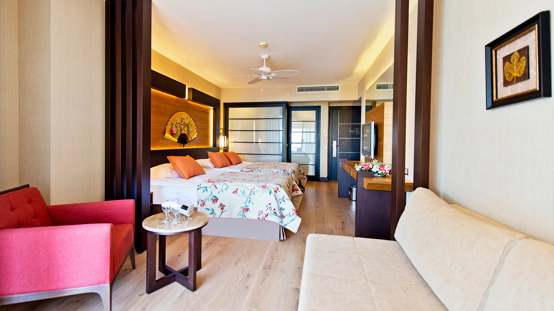 Стаите в хотел Limak Lara De Luxe са обзаведени с модерни мебели в традиционен турски стил. Всяка от тях разполага с просторна дневна зона с плосък телевизор, а някои предлагат и хидромасажна вана и тераса с изглед към морето. Гостите се посрещат с безплатна кошница с плодове в стаята си при пристигане.