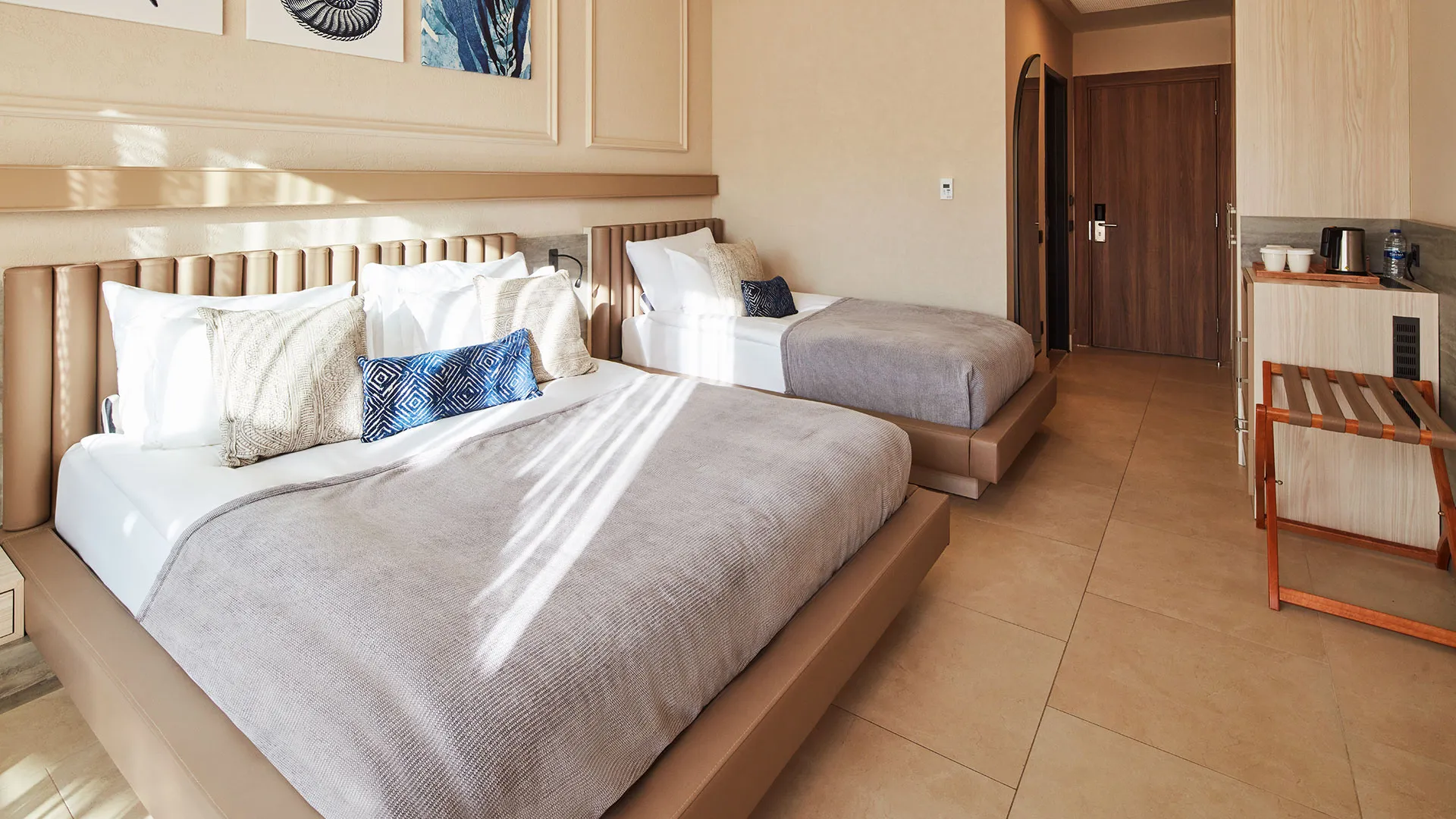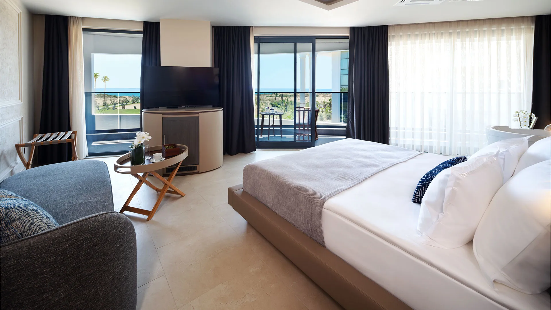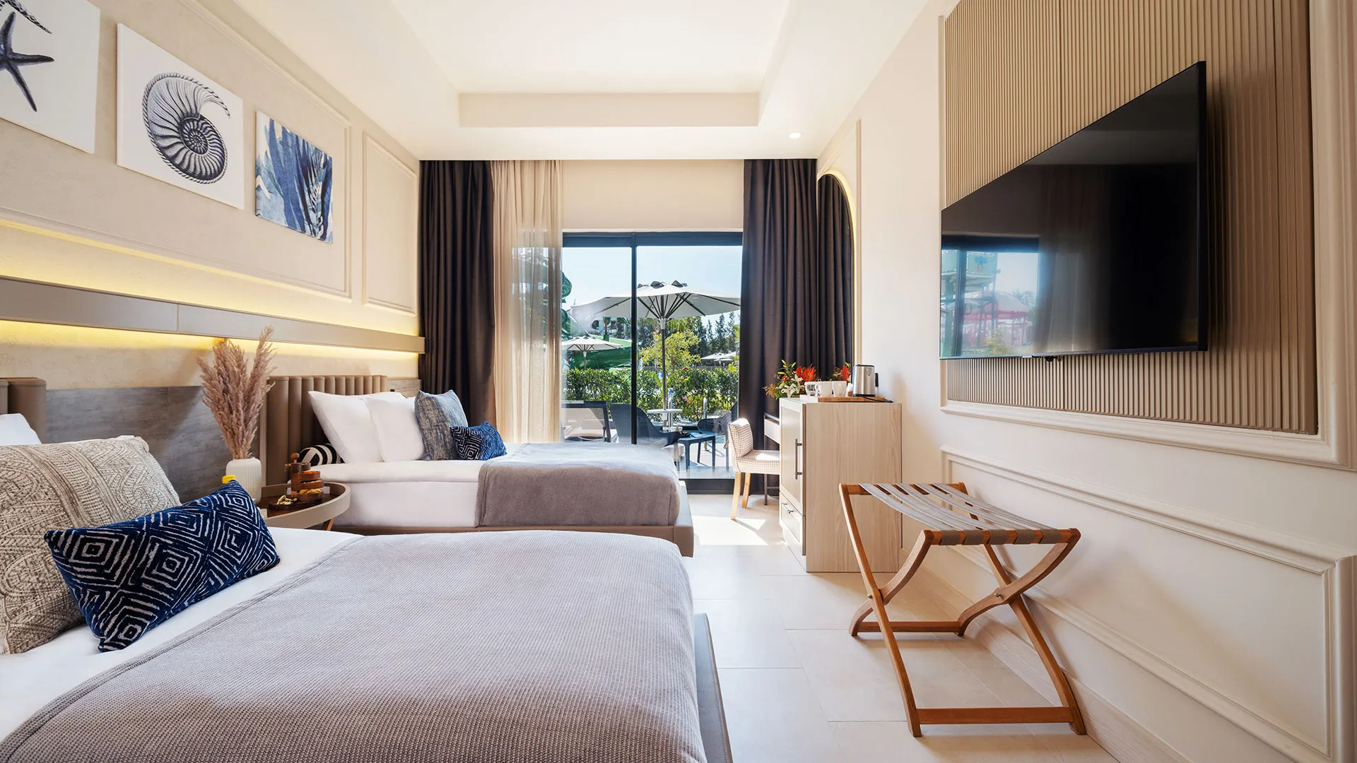 Стаите в Liu Resorts са обзаведени с внимание към детайла и разполагат с всички удобства за пълен комфорт. От балкона на всяка стая се разкрива впечатляващ изглед към морето или към градините на комплекса.