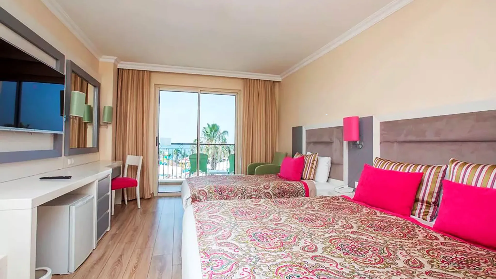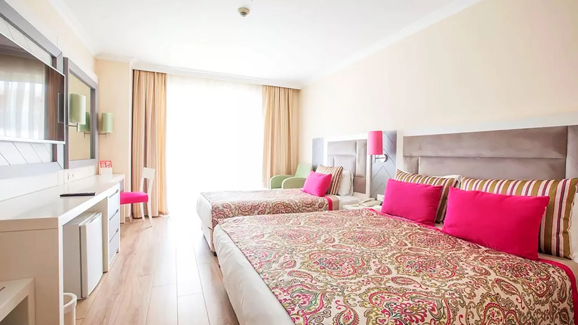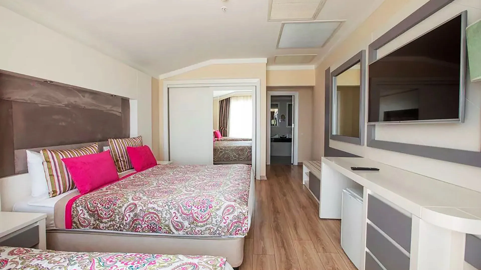 Настаняването в Orange County Belek включва разнообразие от елегантно обзаведени стаи и апартаменти, създадени с мисъл за максимален комфорт и удобство. Всички помещения разполагат с климатик, телевизор с плосък екран, минибар, сейф и безплатен Wi-Fi. Балконите предлагат спиращи дъха гледки към морето, басейните или красиво поддържаните градини на хотела, осигурявайки на гостите възможност да се насладят на спокойствие и релакс.