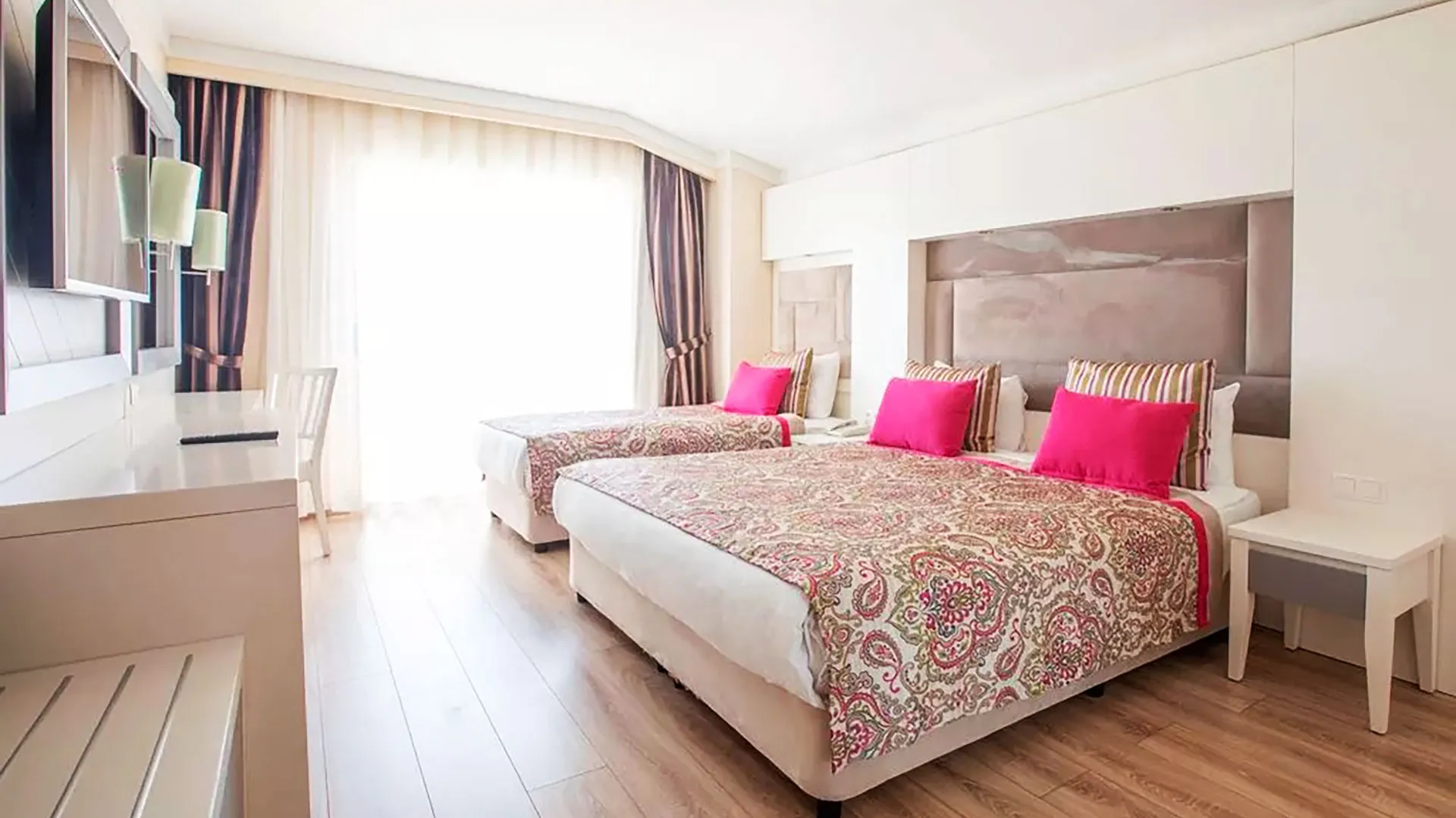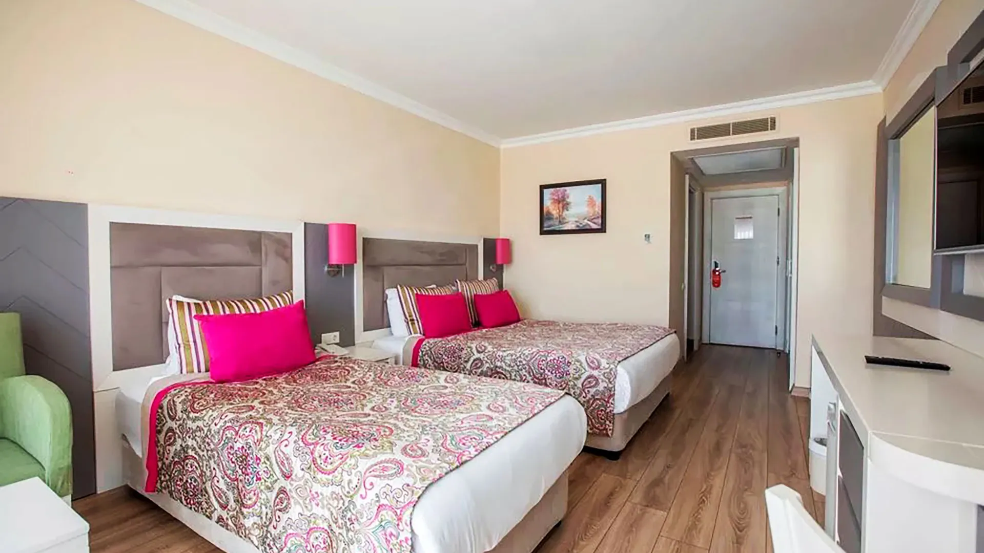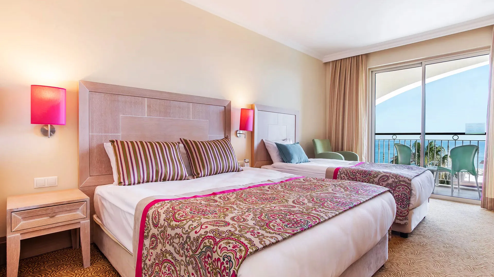 Настаняването в Orange County Belek включва разнообразие от елегантно обзаведени стаи и апартаменти, създадени с мисъл за максимален комфорт и удобство. Всички помещения разполагат с климатик, телевизор с плосък екран, минибар, сейф и безплатен Wi-Fi. Балконите предлагат спиращи дъха гледки към морето, басейните или красиво поддържаните градини на хотела, осигурявайки на гостите възможност да се насладят на спокойствие и релакс.