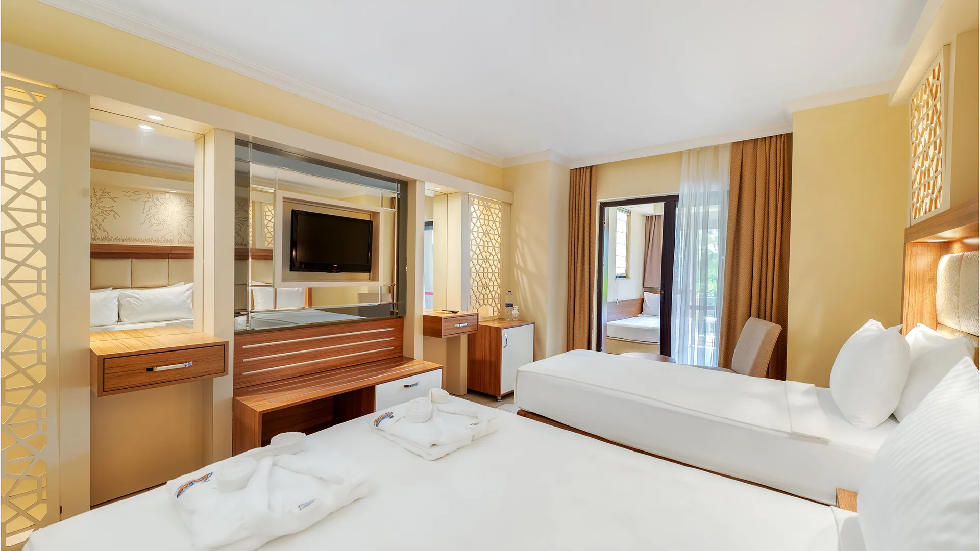 Настанете се в стаи, обзаведени с изискан стил и обилство от удобства, включително климатик, плосък телевизор със сателитни канали, минибар, електрическа кана и модерен душ. Всички гости могат да се насладят на безплатни тоалетни принадлежности и гардероб, а при нужда, персоналът ни е на разположение за смяна на спалното бельо и хавлиите.
