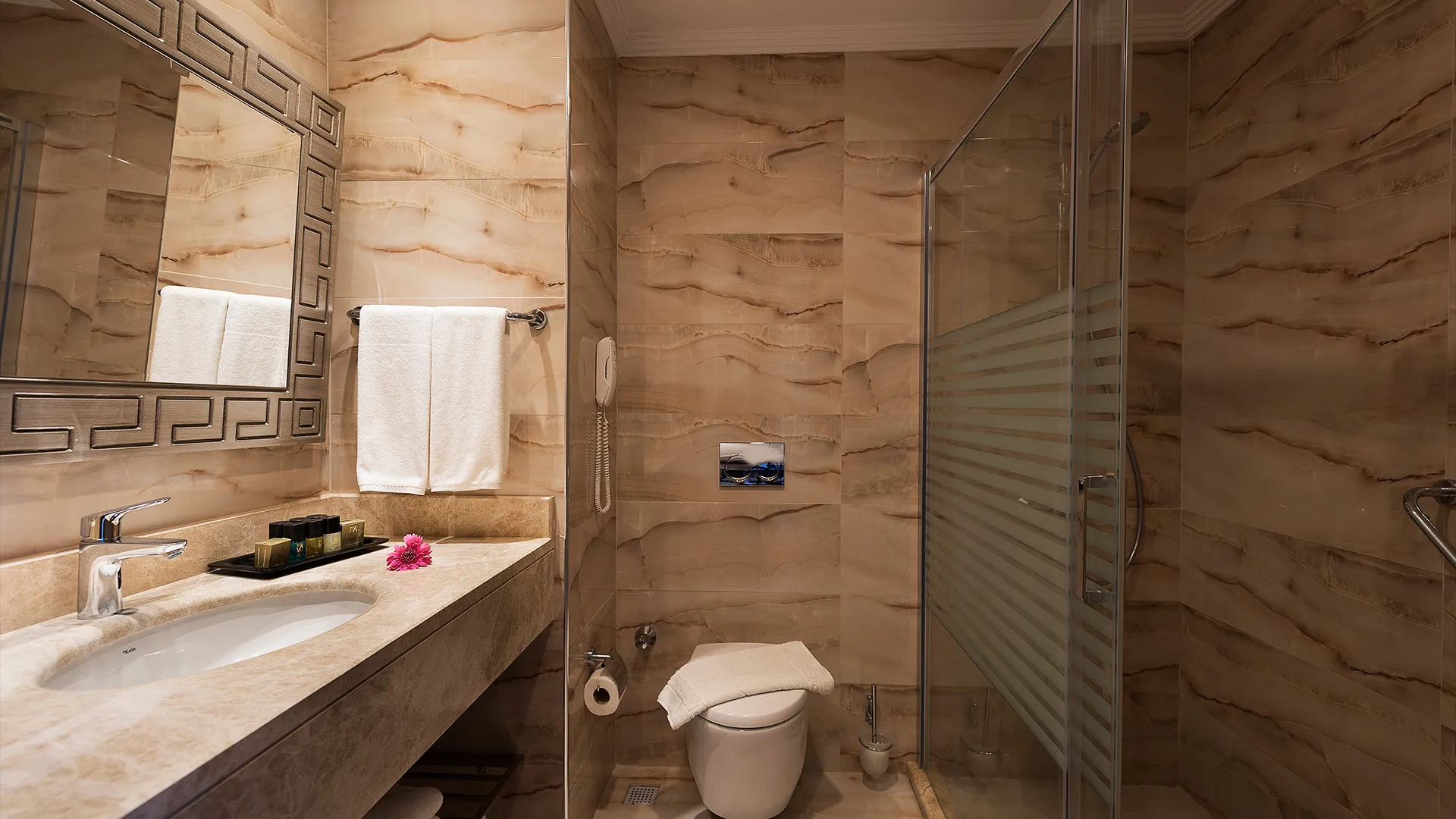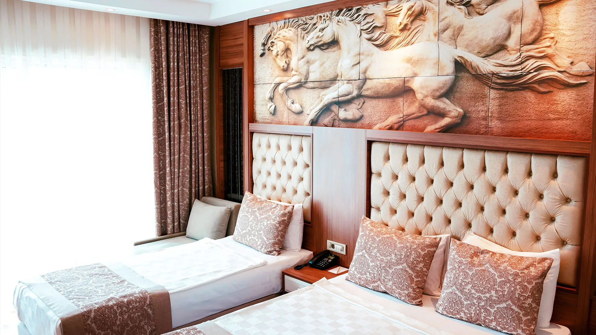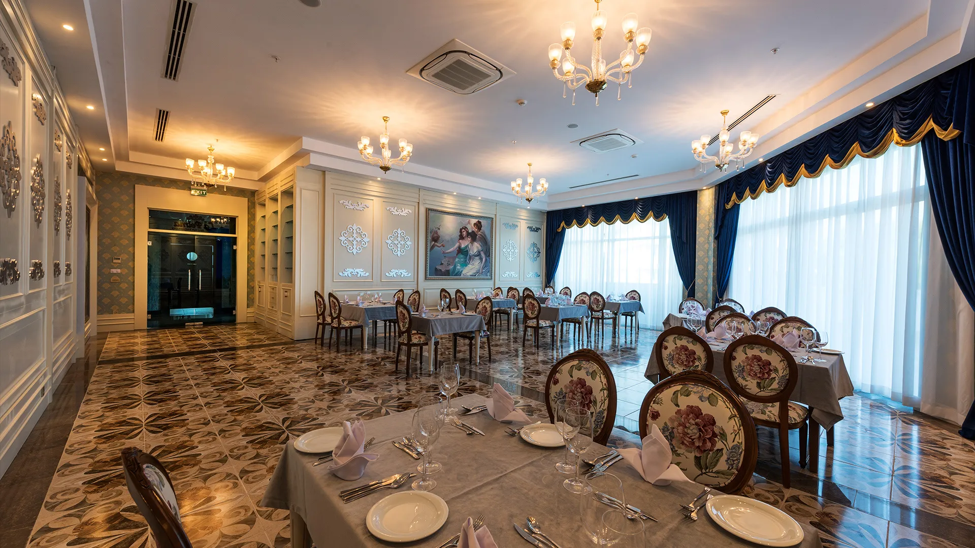 Всяка стая в този изискан 5-звезден хотел е проектирана с усещане за простор и комфорт и предлага възможност за наслаждаване на уникален изглед към града. За да гарантираме вашето удовлетворение, хотелът разполага с изключителни удобства като уютна сауна и турска баня, както и с примамлив открит плувен басейн, съвременен фитнес център и занимателни зони като караоке и детски клуб.